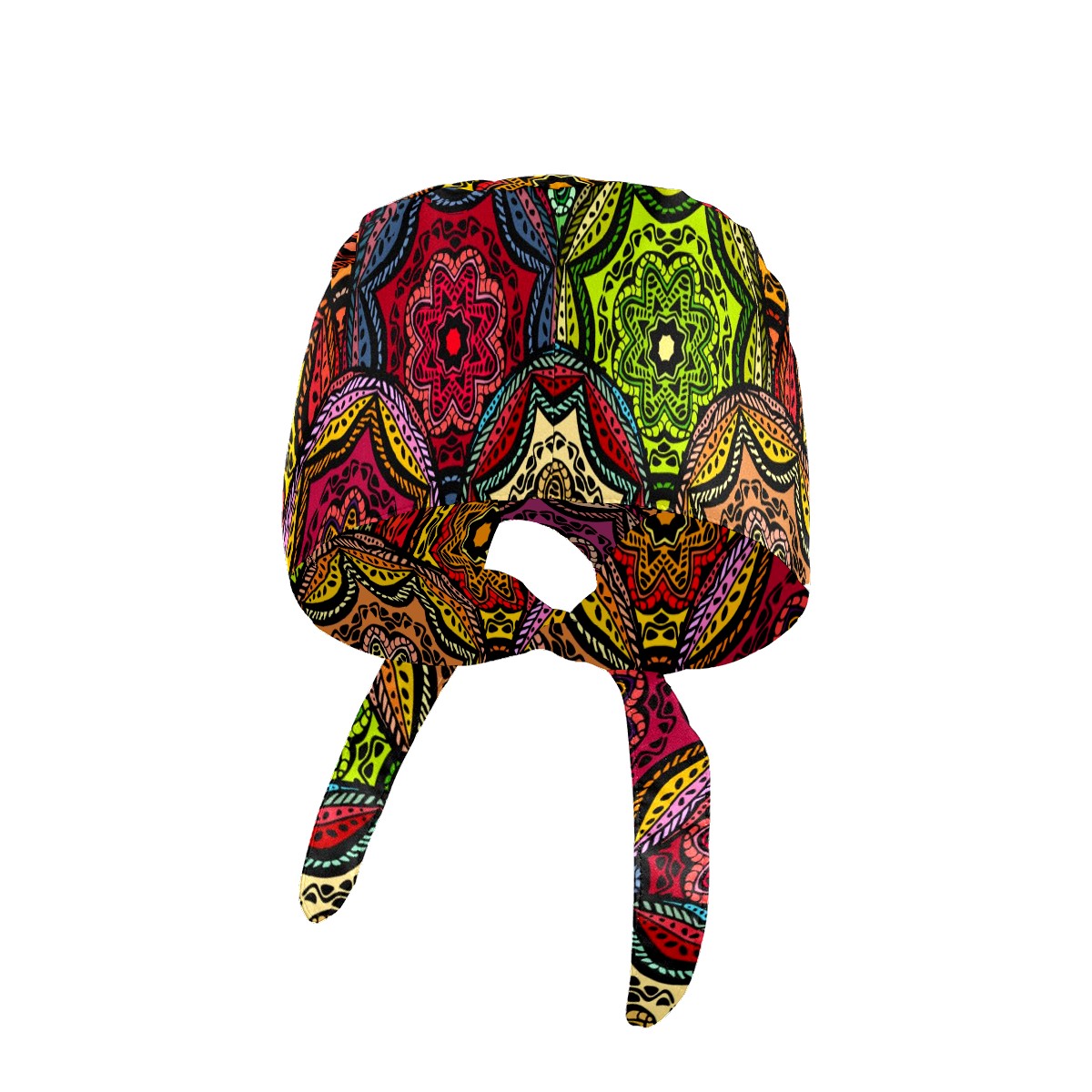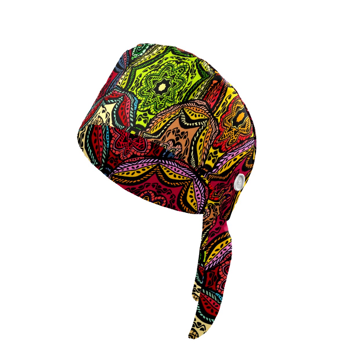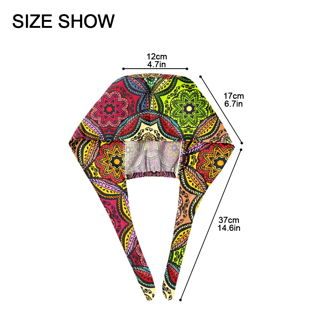 Working Caps with Button & Sweatband Satin Lined Cotton Adjustable Nurse Hats Elastic Band Scrub Cap Surgeon Hat Colorful Mandala Flowers