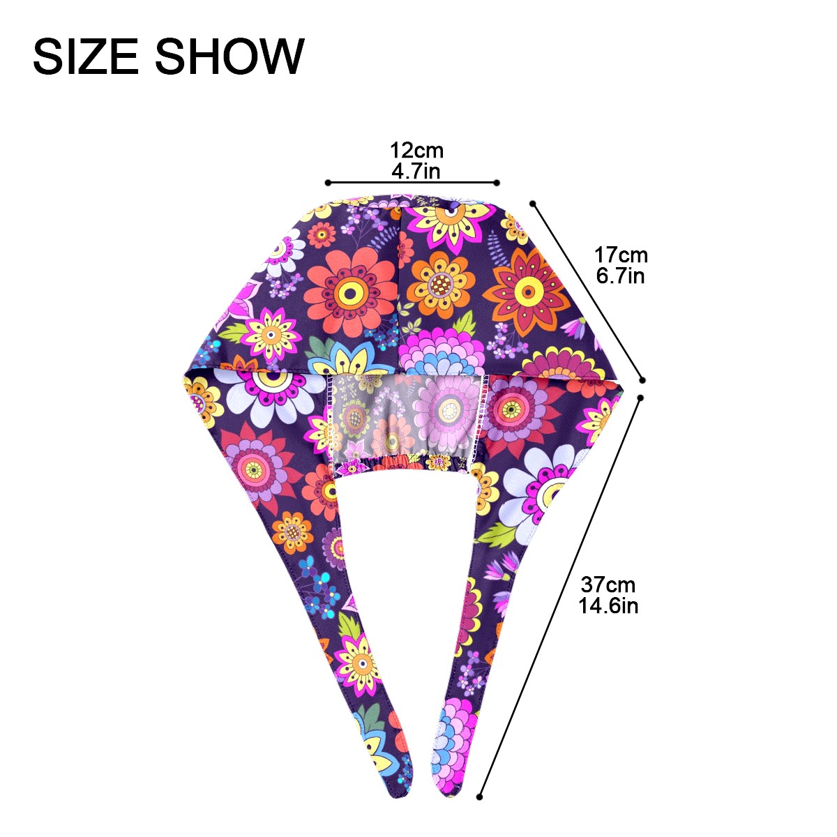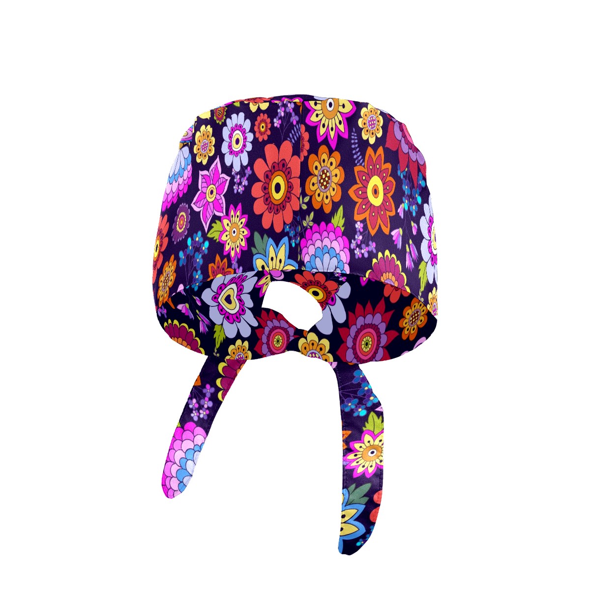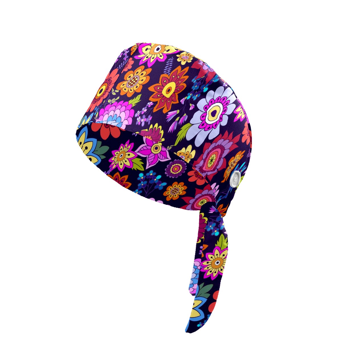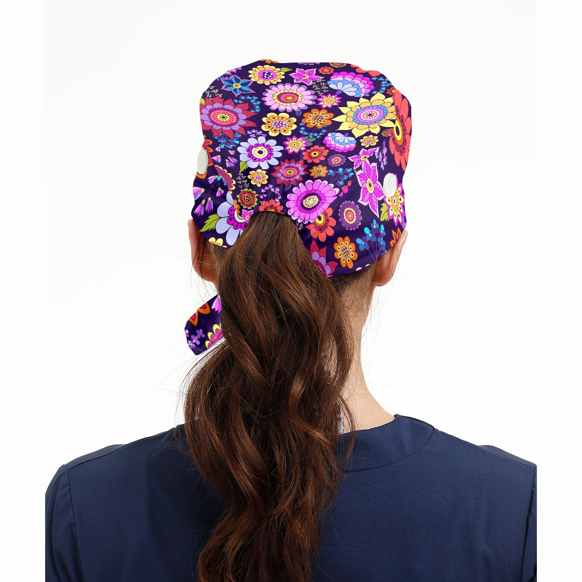 Working Caps with Button & Sweatband Satin Lined Cotton Adjustable Nurse Hats Elastic Band Scrub Cap Surgeon Hat Colorful Mandala Flower Pattern