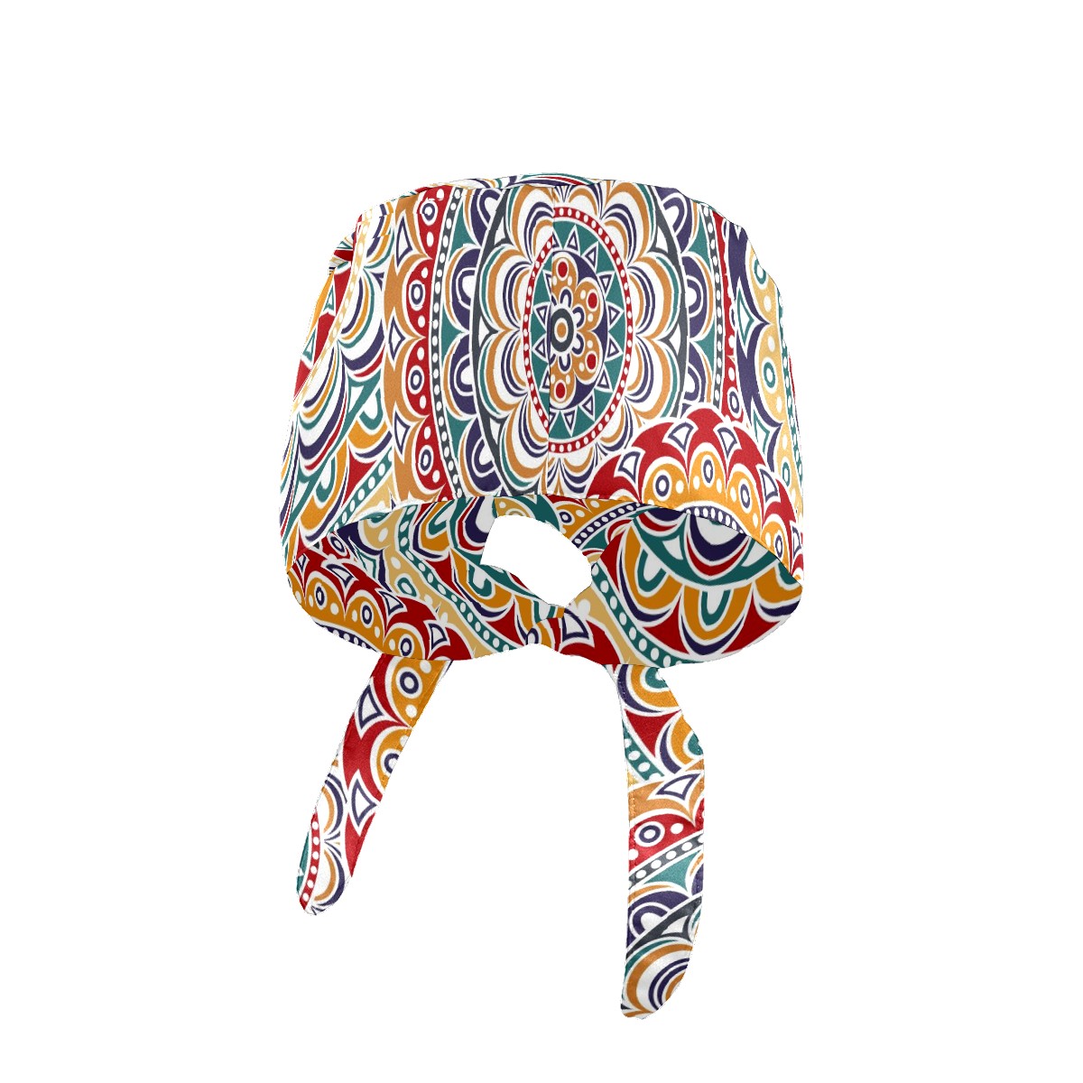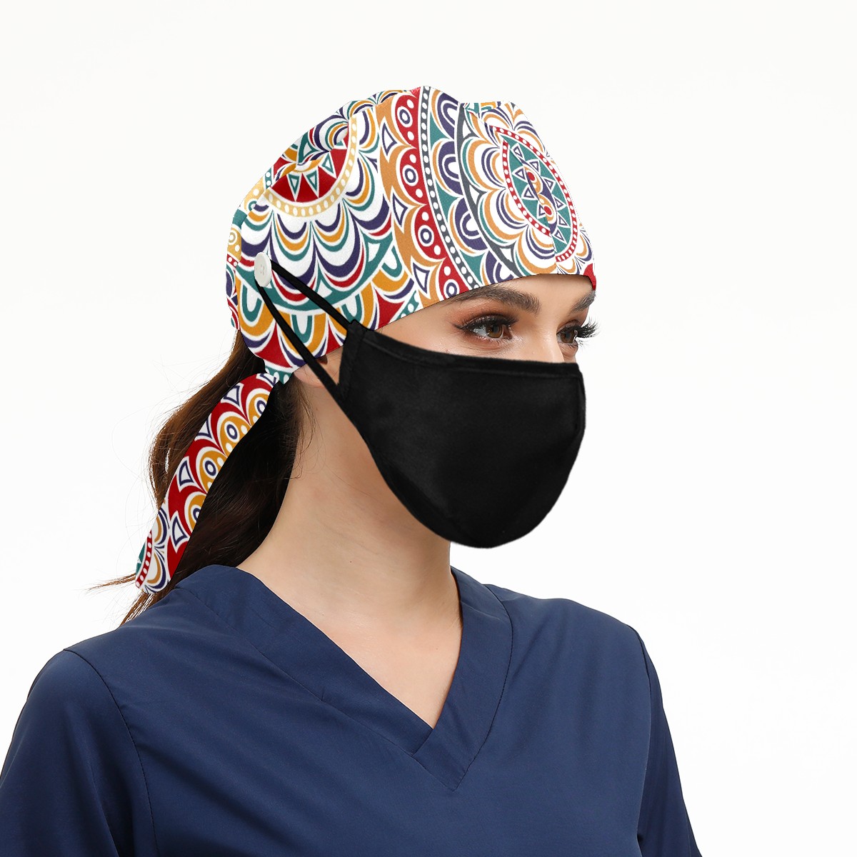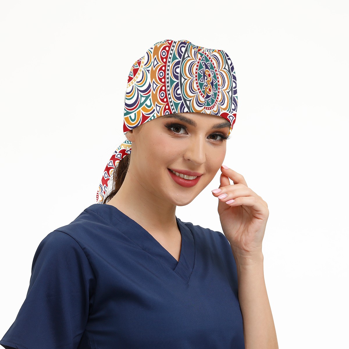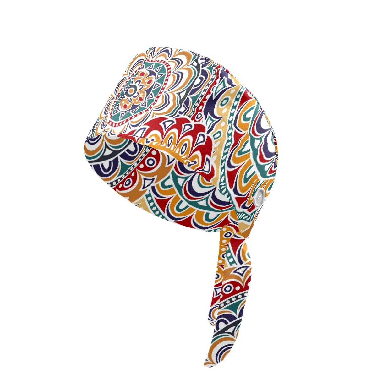 Working Caps with Button & Sweatband Satin Lined Cotton Adjustable Nurse Hats Elastic Band Scrub Cap Surgeon Hat Boho Ethnic Mandala Floral
