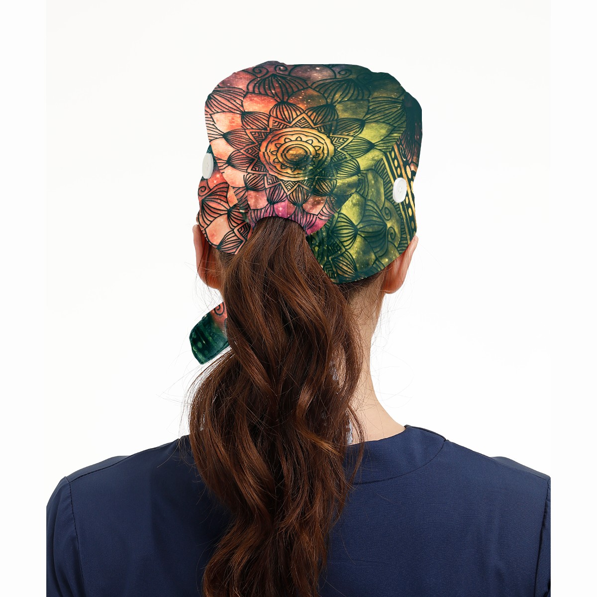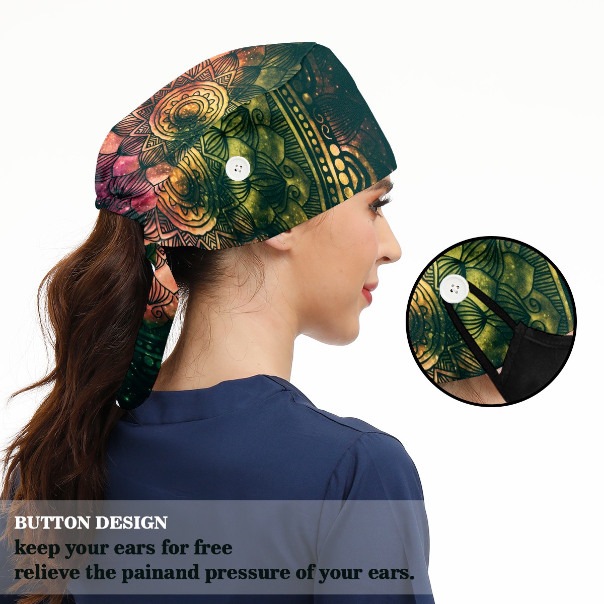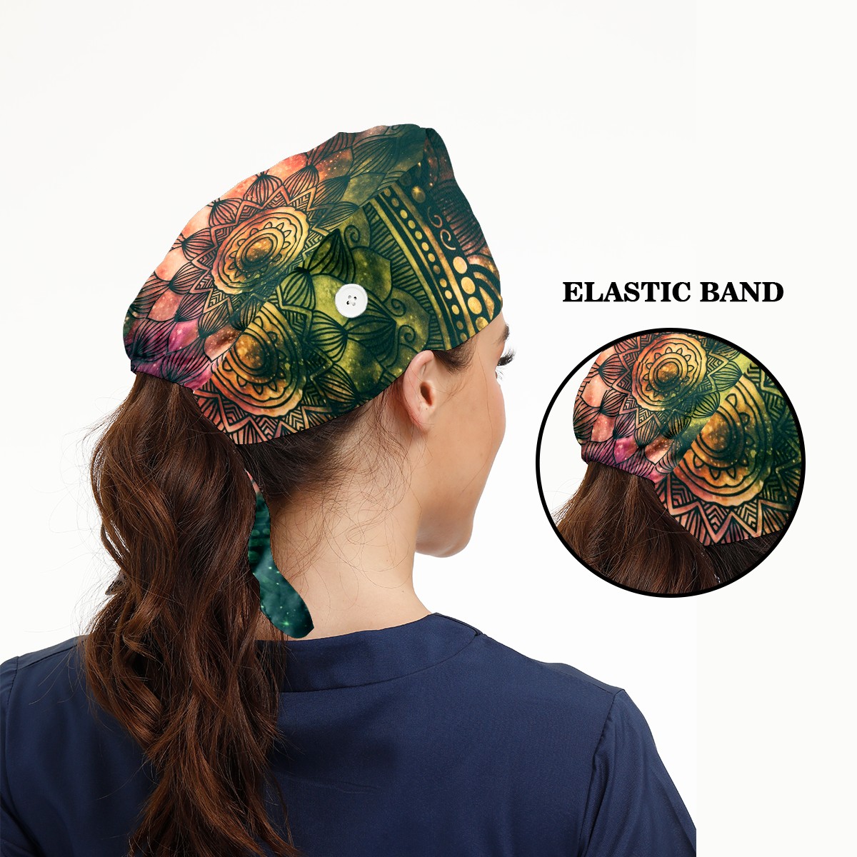 Working Caps with Button & Sweatband Satin Lined Cotton Adjustable Nurse Hats Elastic Band Scrub Cap Surgeon Hat Bohemian Mandala Galaxy