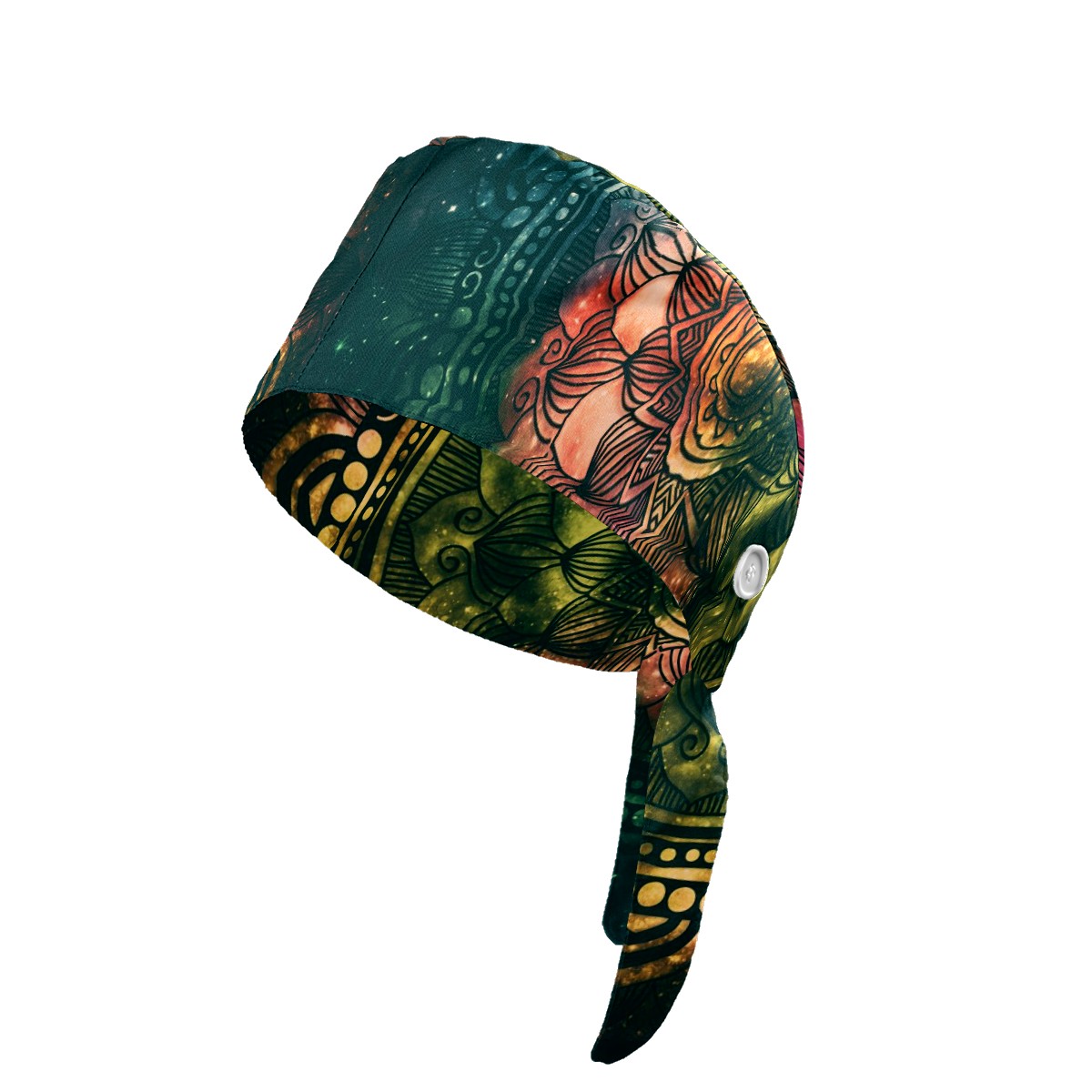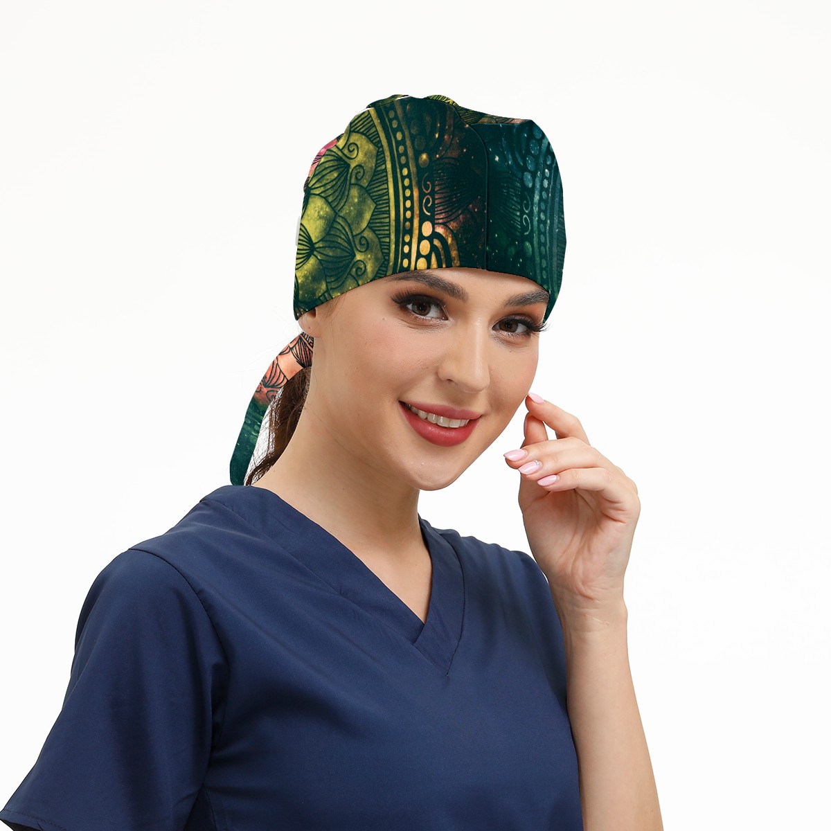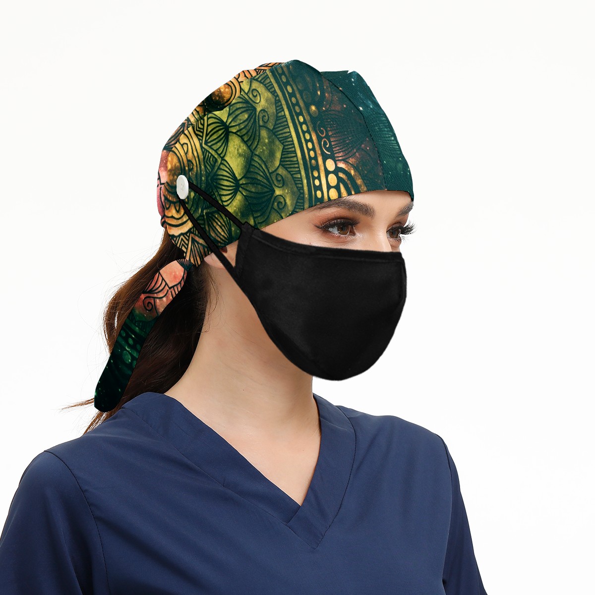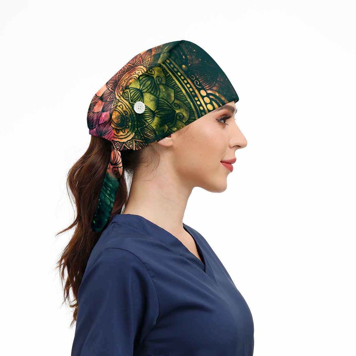 Working Caps with Button & Sweatband Satin Lined Cotton Adjustable Nurse Hats Elastic Band Scrub Cap Surgeon Hat Bohemian Mandala Galaxy