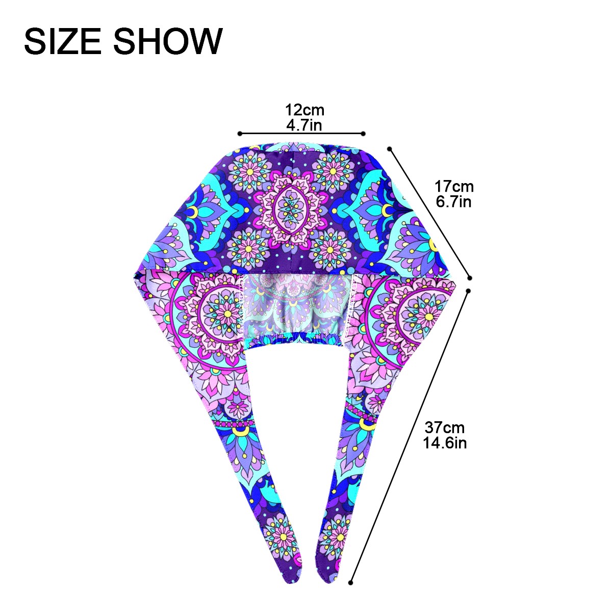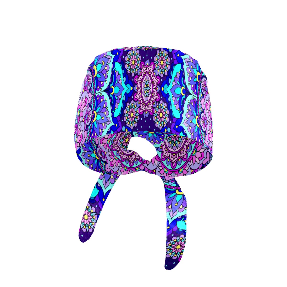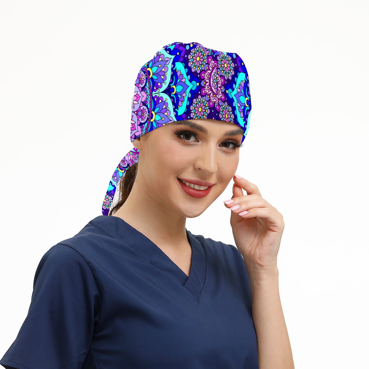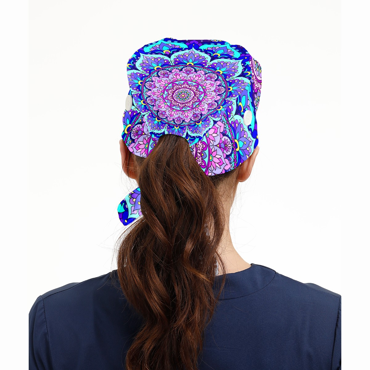 Working Caps with Button & Sweatband Satin Lined Cotton Adjustable Nurse Hats Elastic Band Scrub Cap Surgeon Hat Blue Purple Mandala