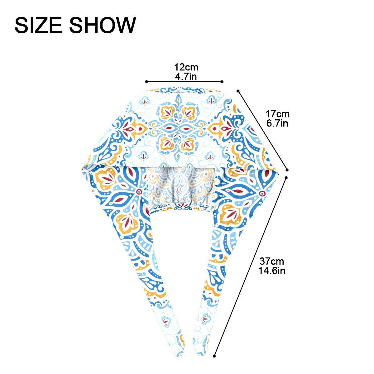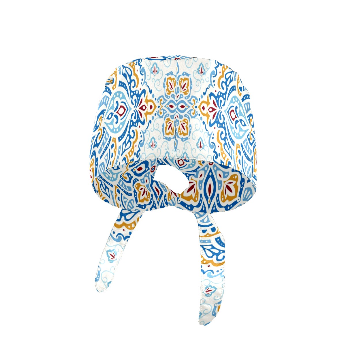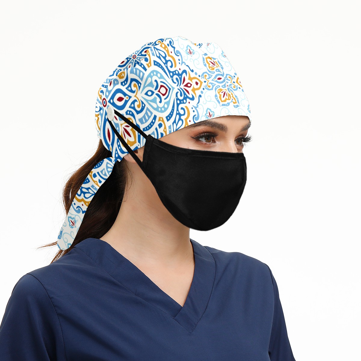 Working Caps with Button & Sweatband Satin Lined Cotton Adjustable Nurse Hats Elastic Band Scrub Cap Surgeon Hat Blue Ethnic Boho Mandala Flower