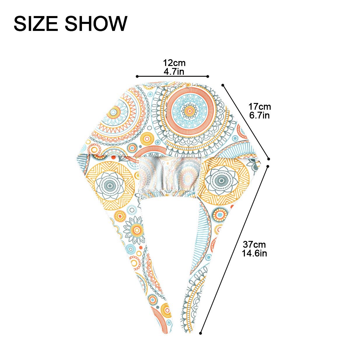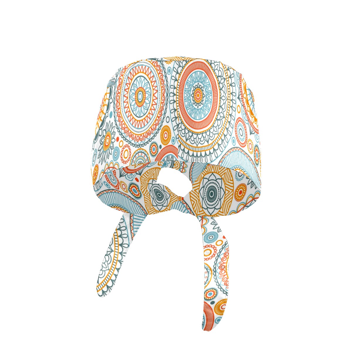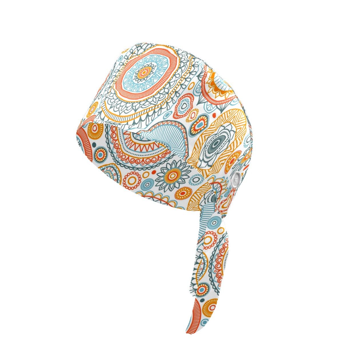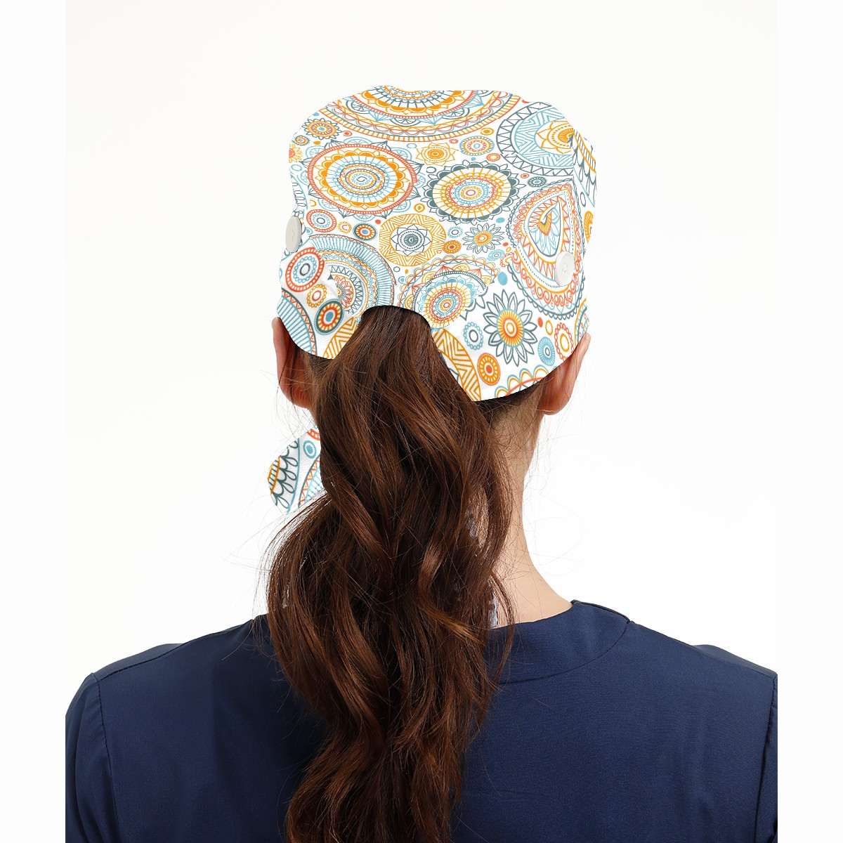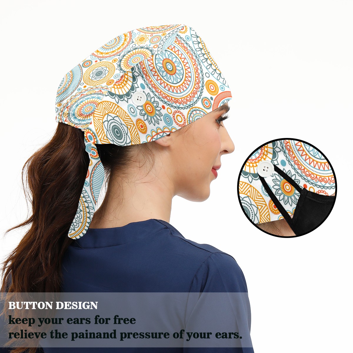 Working Caps with Button & Sweatband Satin Lined Cotton Adjustable Nurse Hats Elastic Band Scrub Cap Surgeon Hat Blue And Red Mandala Flower