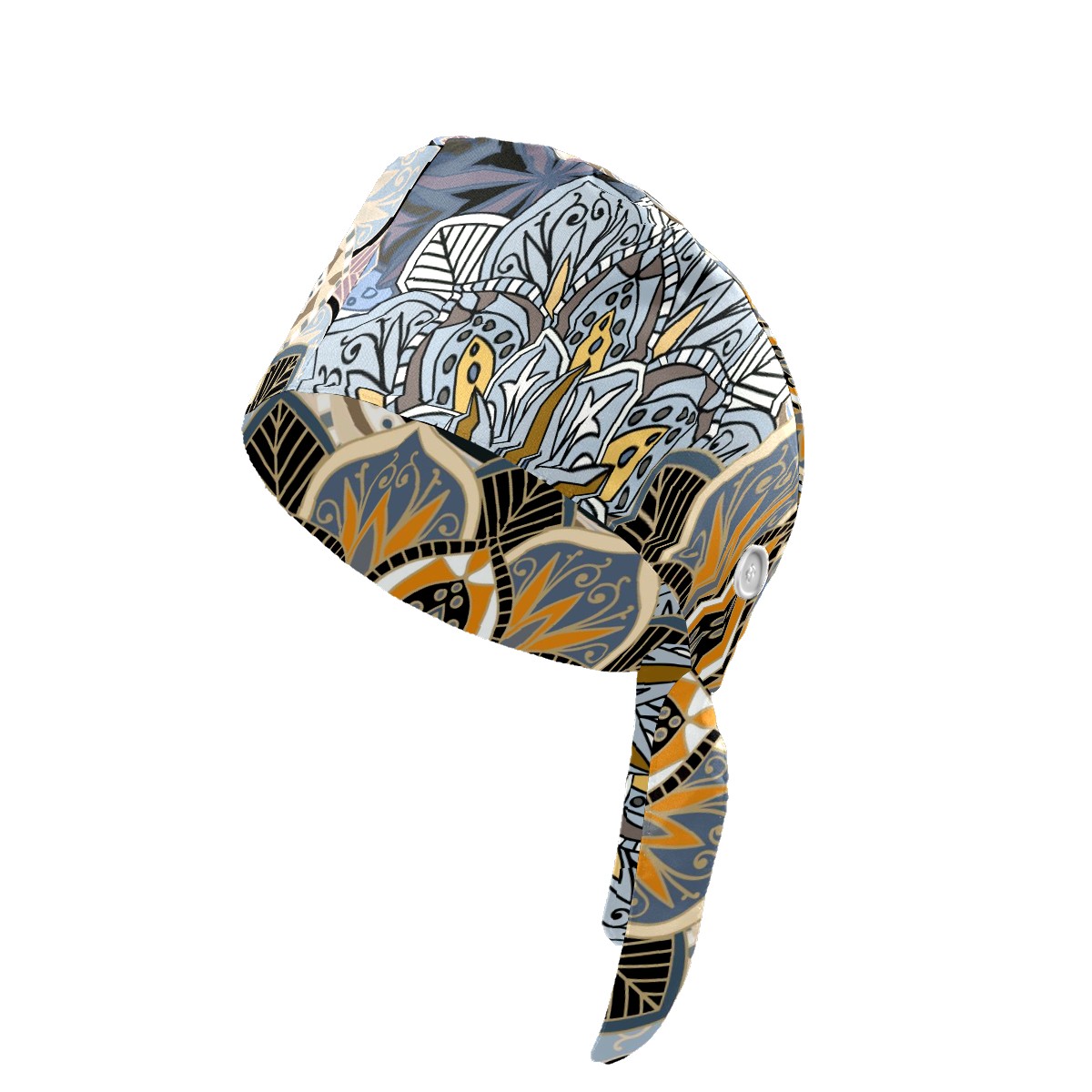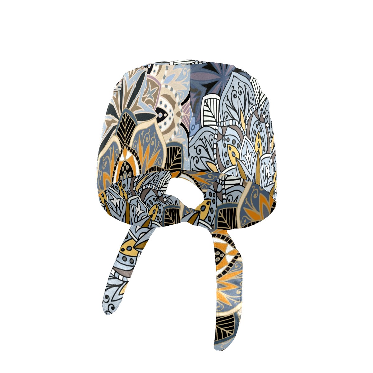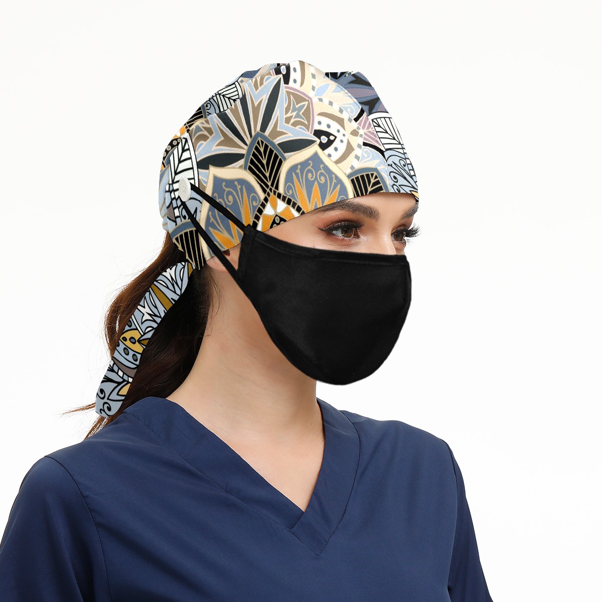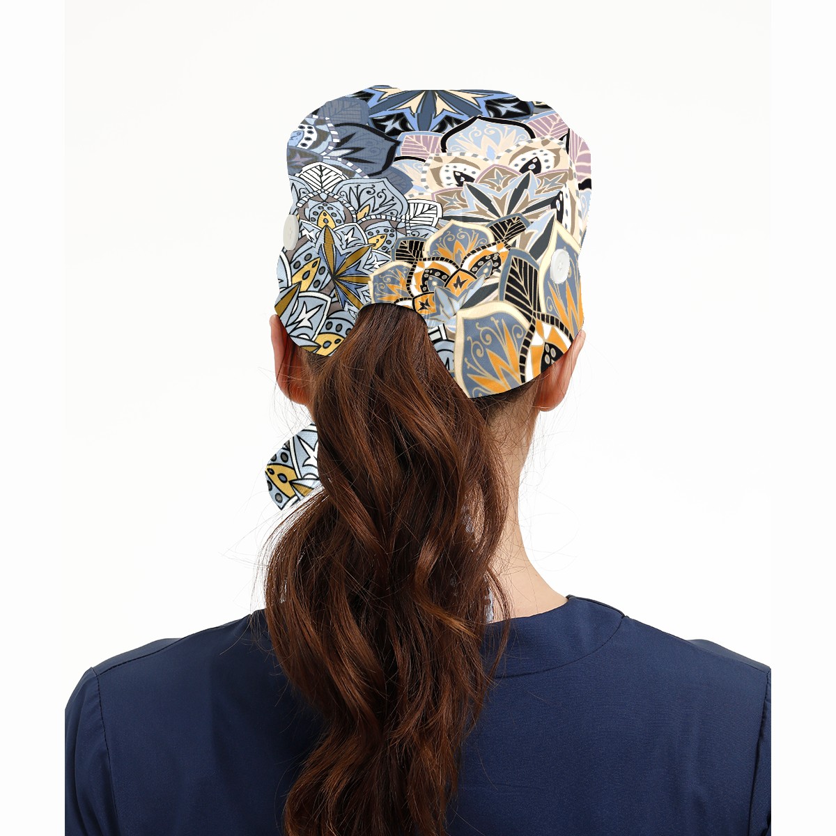 Working Caps with Button & Sweatband Satin Lined Cotton Adjustable Nurse Hats Elastic Band Scrub Cap Surgeon Hat Abstract Mandala Flower