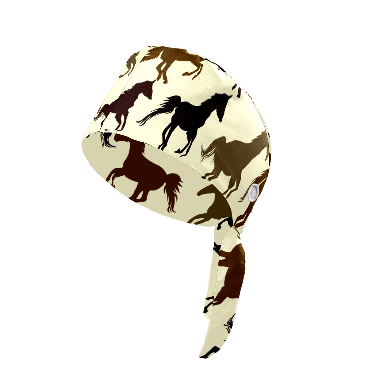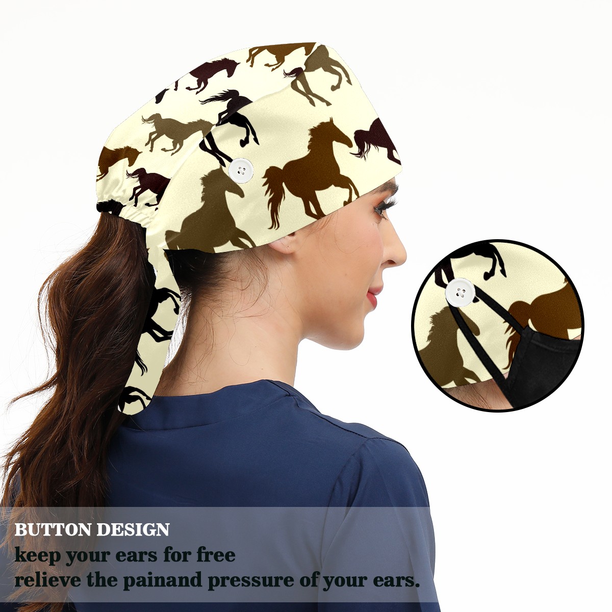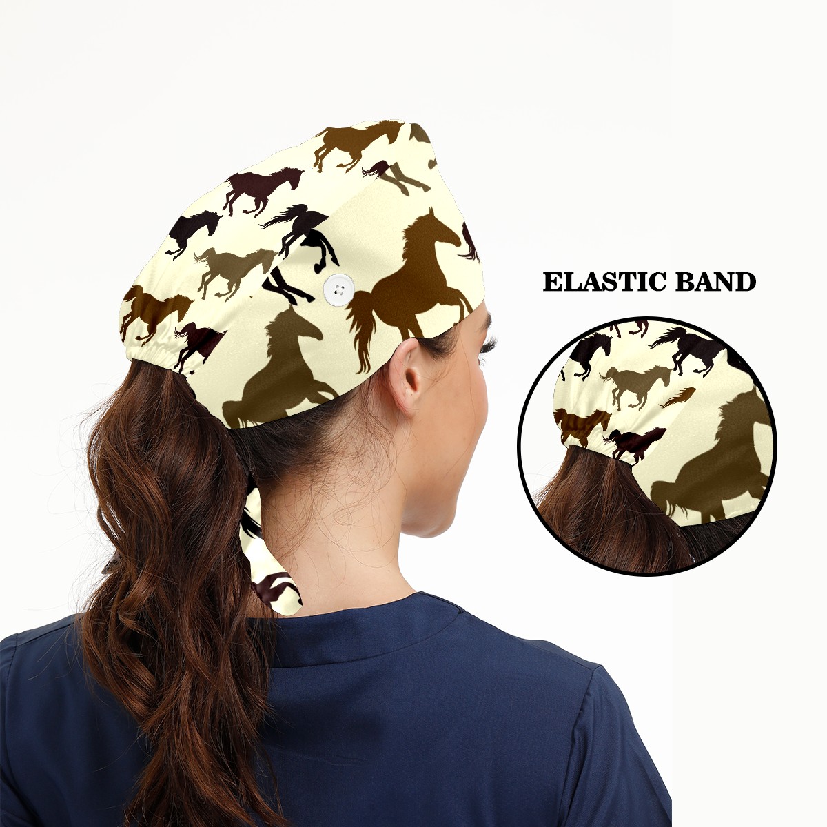Working Caps with Button & Sweatband Satin Lined Cotton Adjustable Nurse Hats Elastic Band Scrub Cap Surgeon Hat Horse On Yellow Background