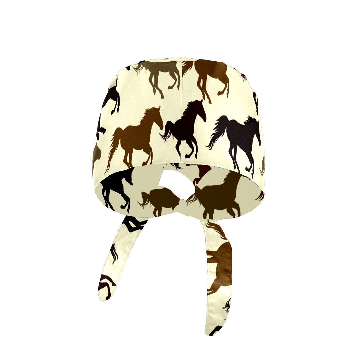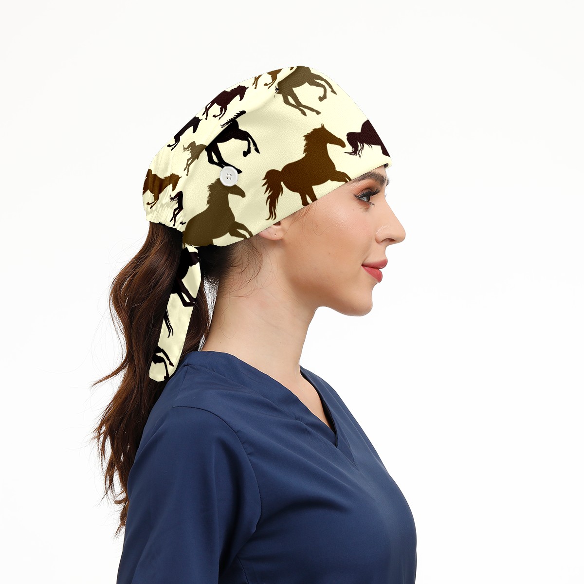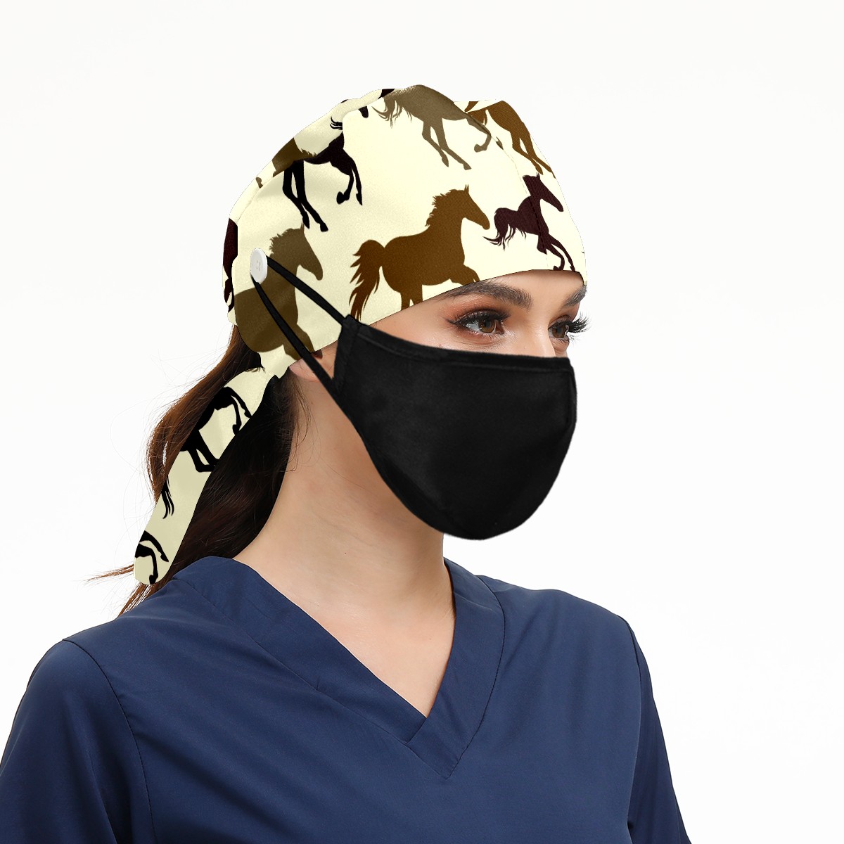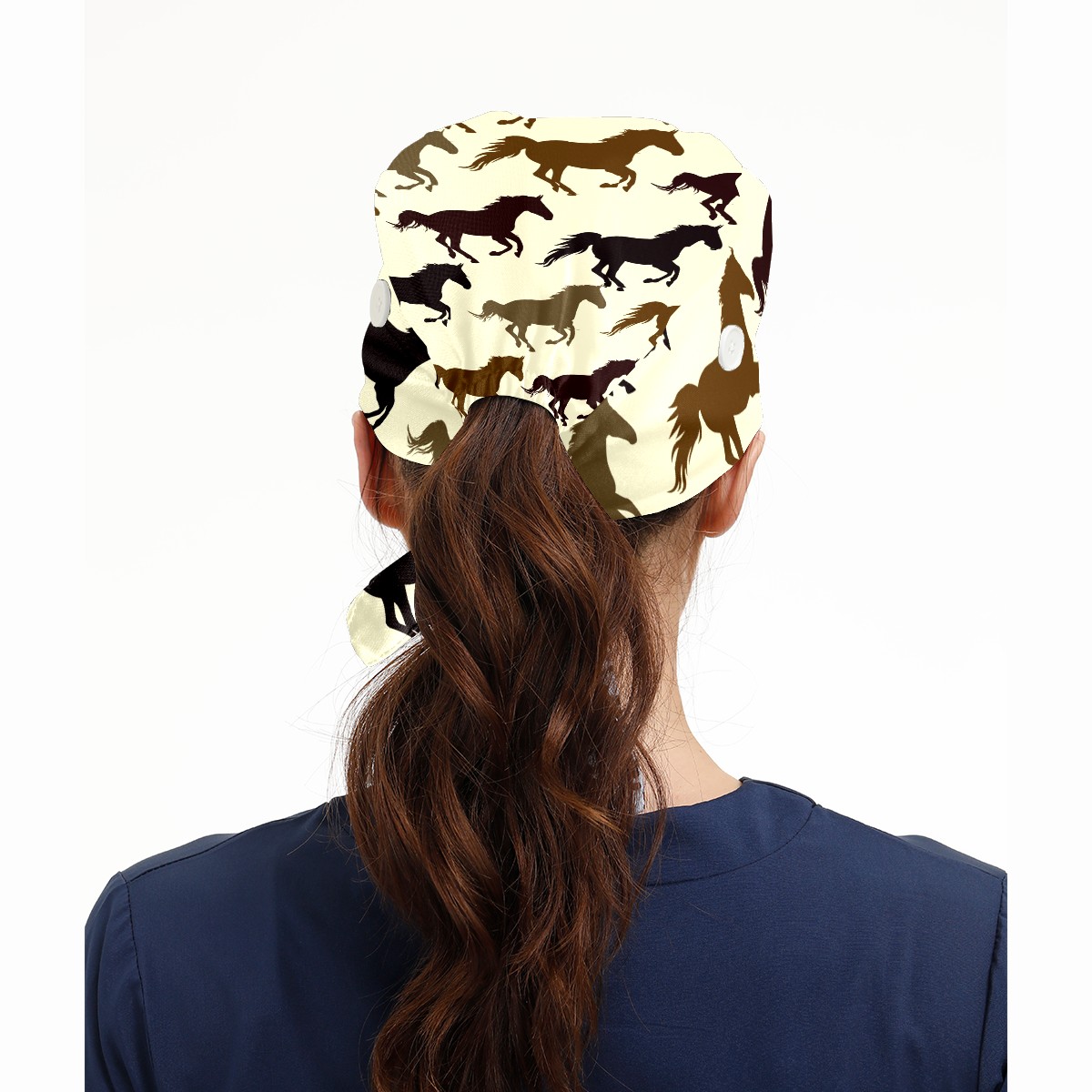 Working Caps with Button & Sweatband Satin Lined Cotton Adjustable Nurse Hats Elastic Band Scrub Cap Surgeon Hat Horse On Yellow Background