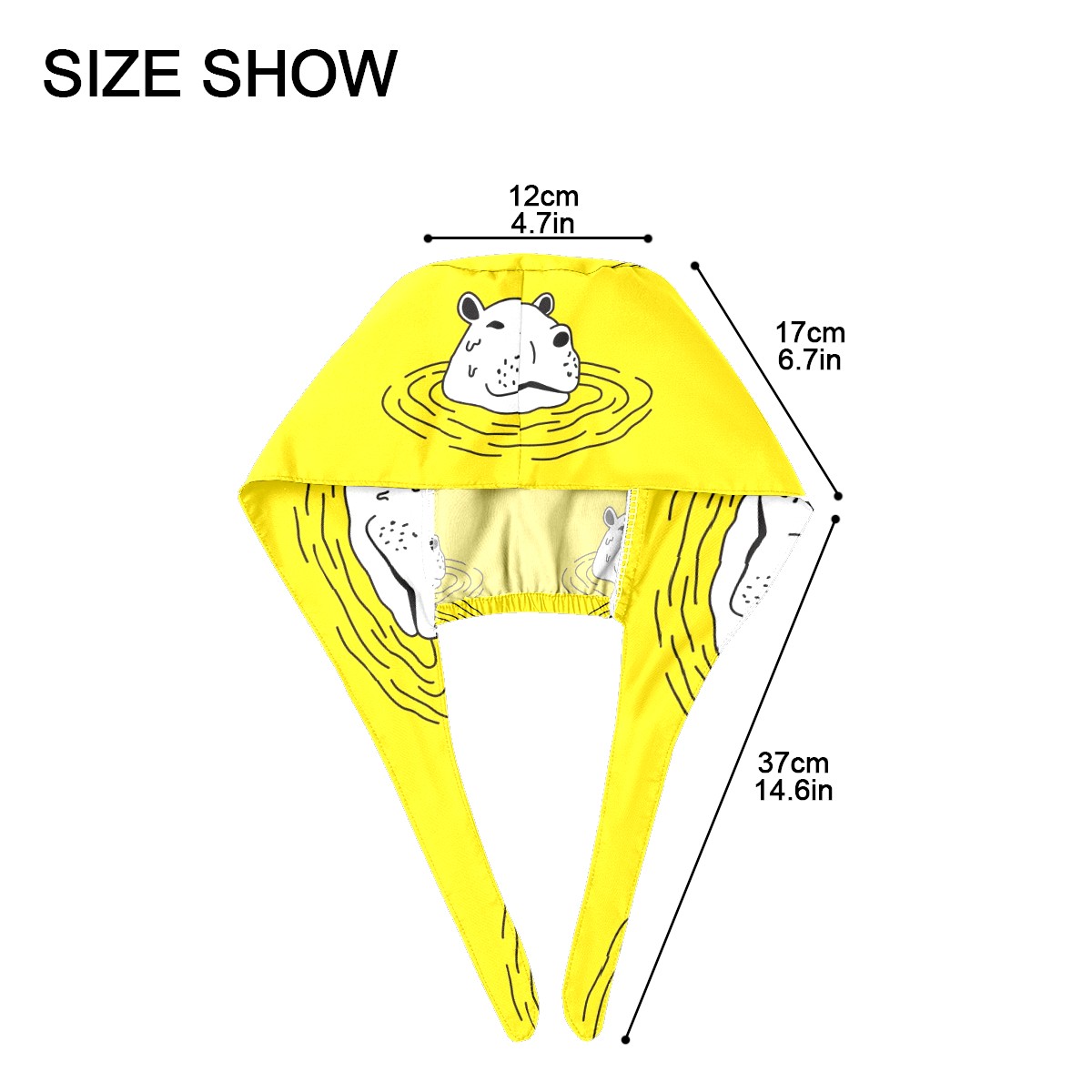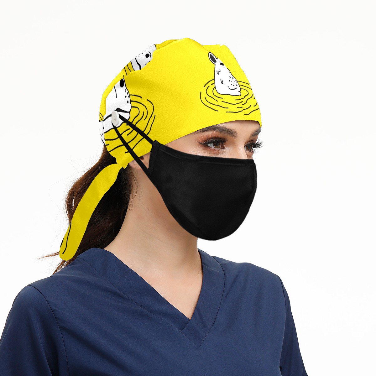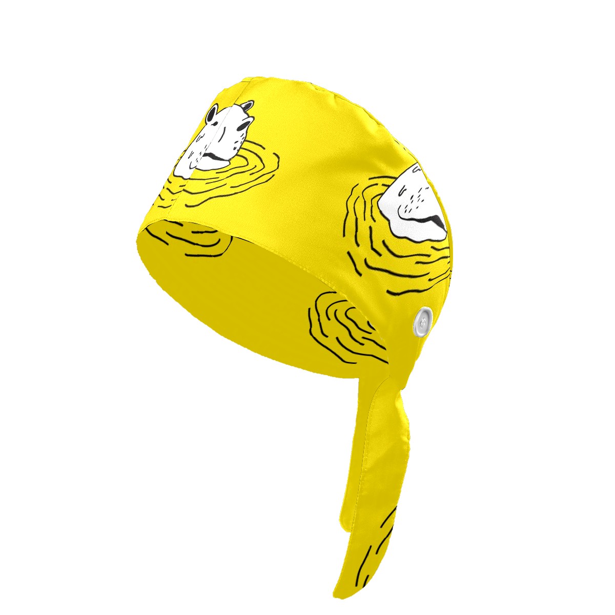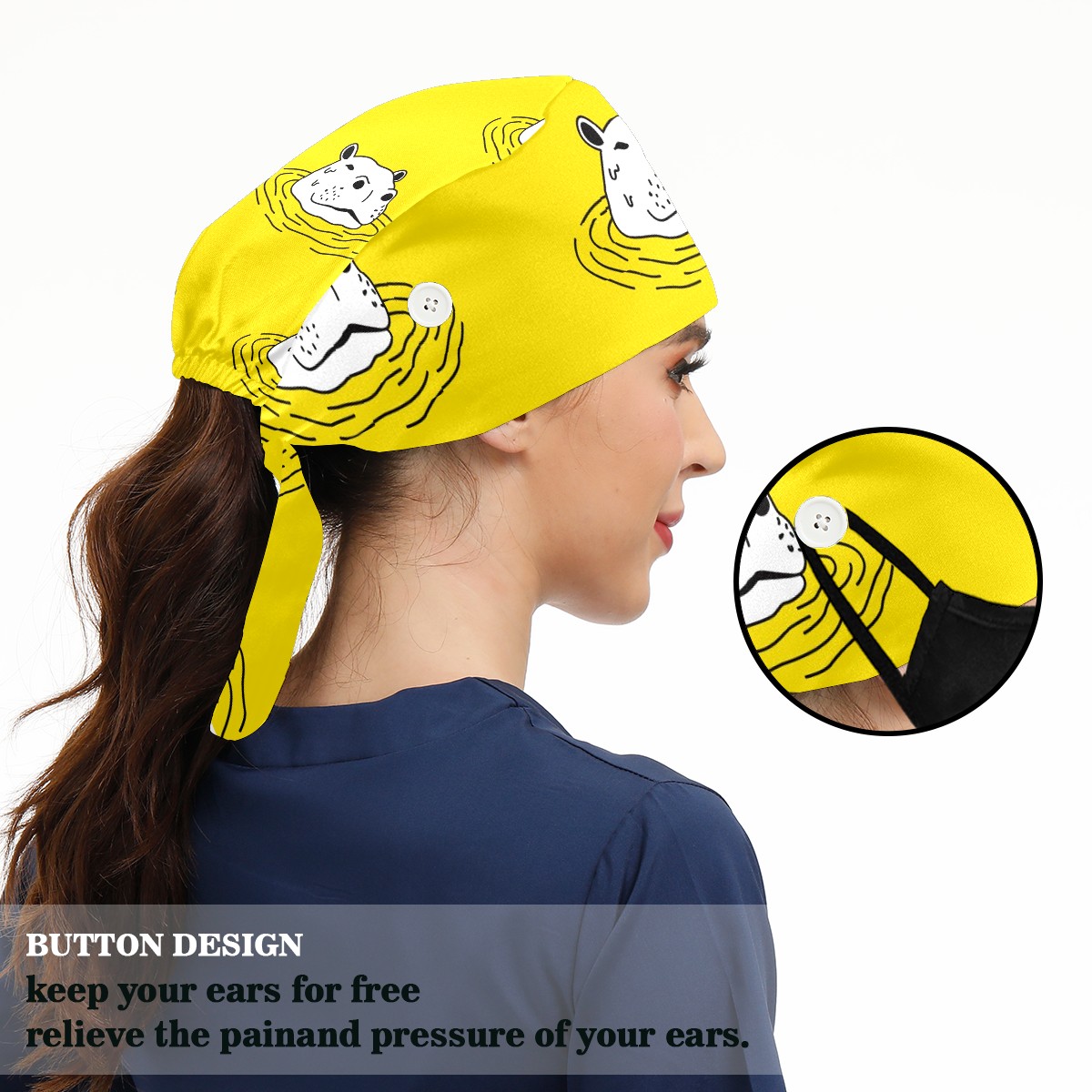 Working Caps with Button & Sweatband Satin Lined Cotton Adjustable Nurse Hats Elastic Band Scrub Cap Surgeon Hat Cute Hippo On Yellow Background