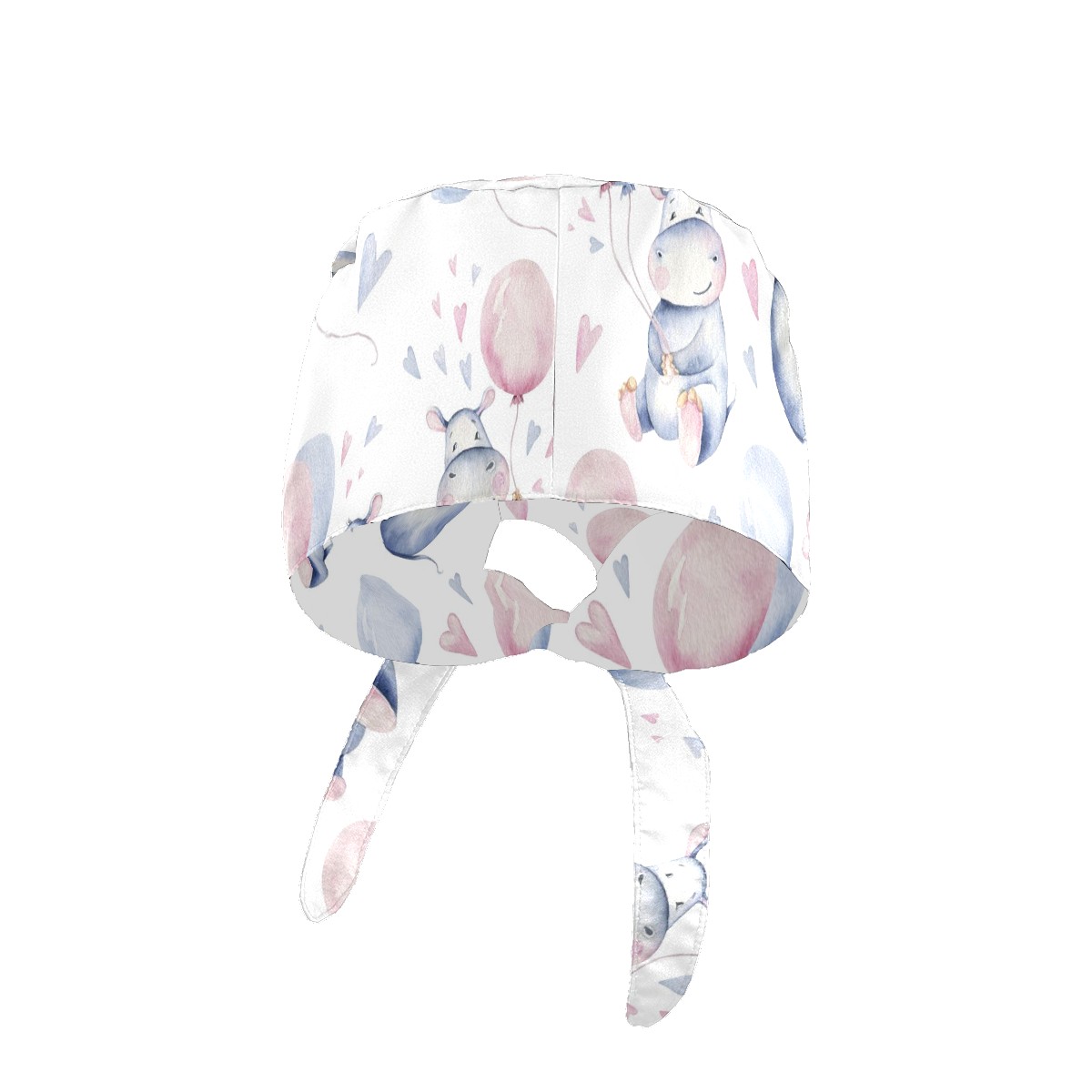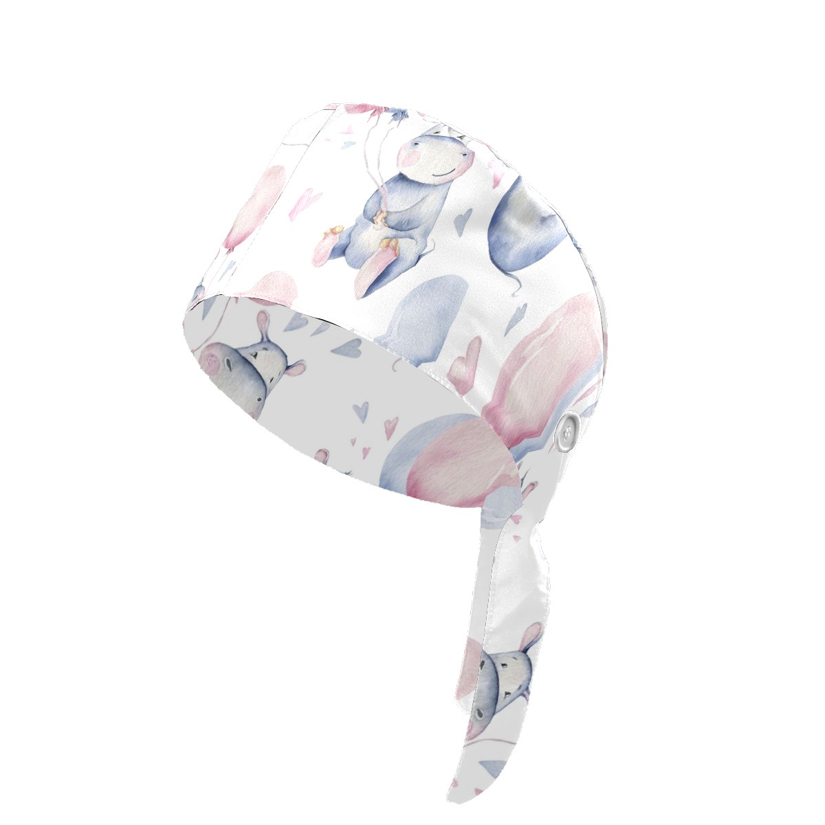 Working Caps with Button & Sweatband Satin Lined Cotton Adjustable Nurse Hats Elastic Band Scrub Cap Surgeon Hat Cute Hippo Balloons