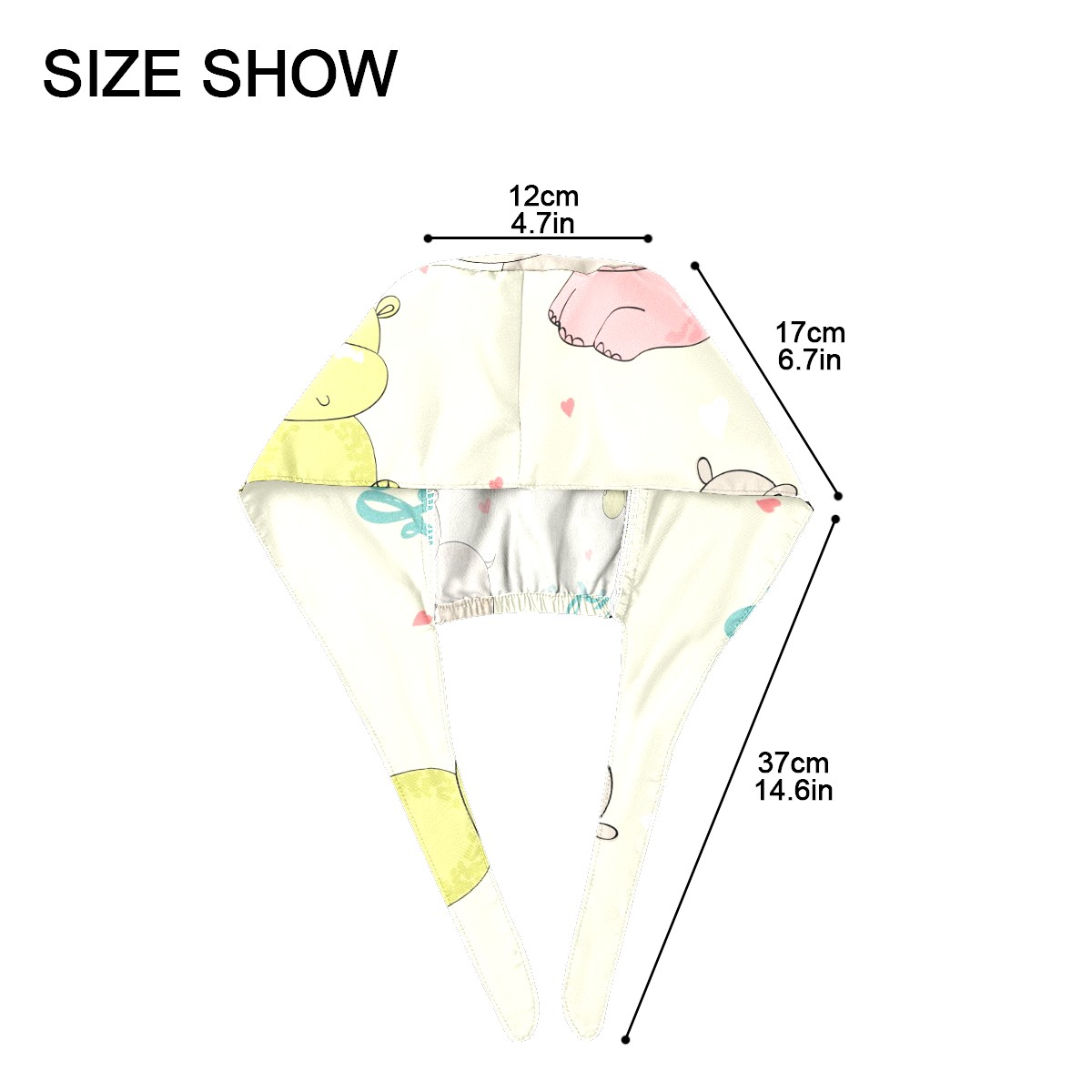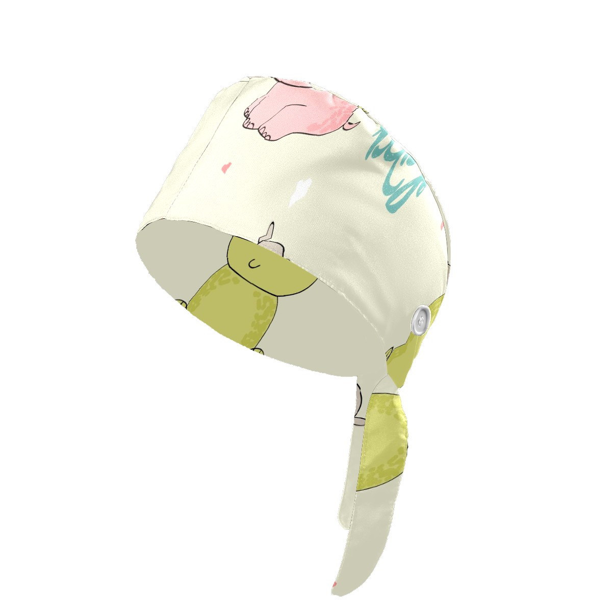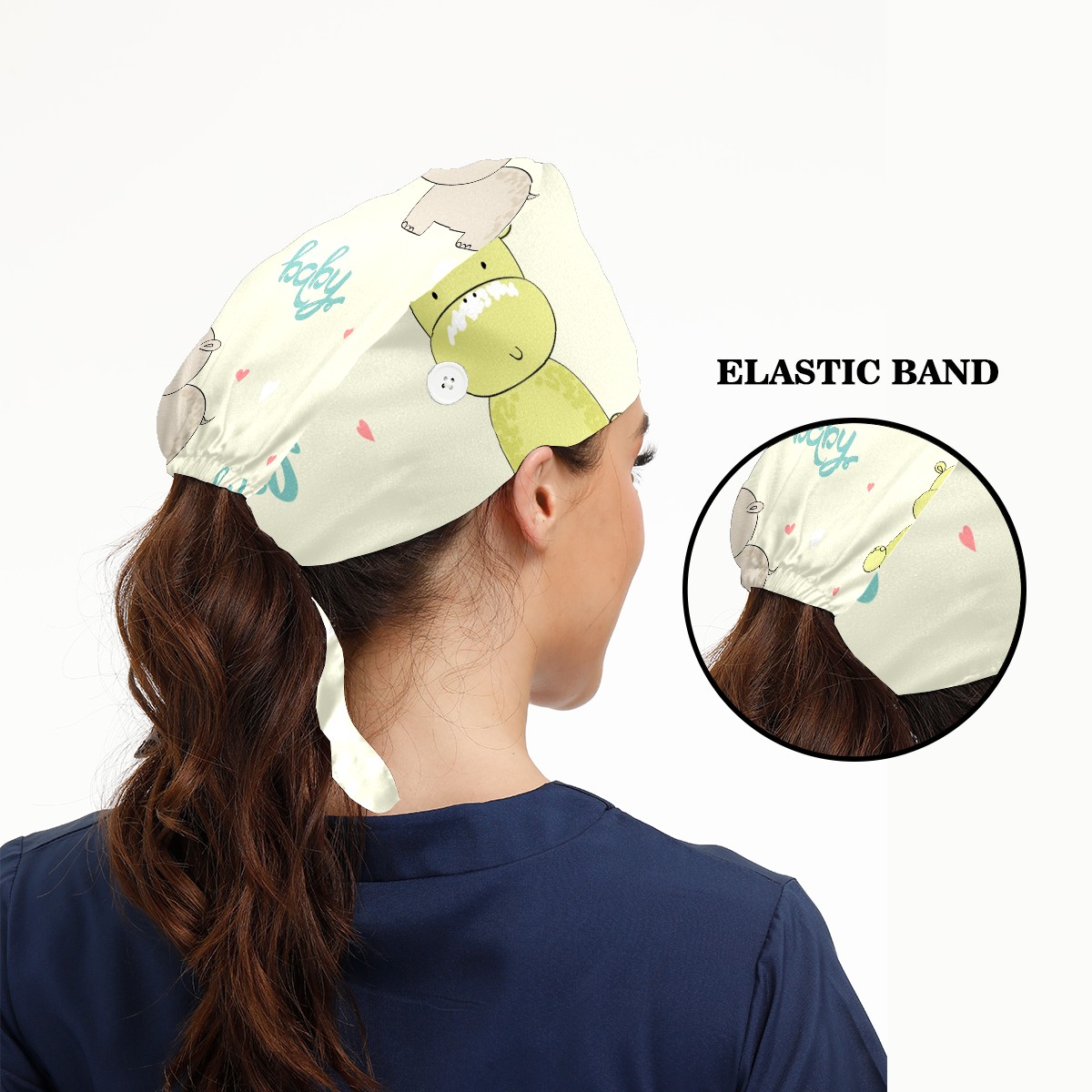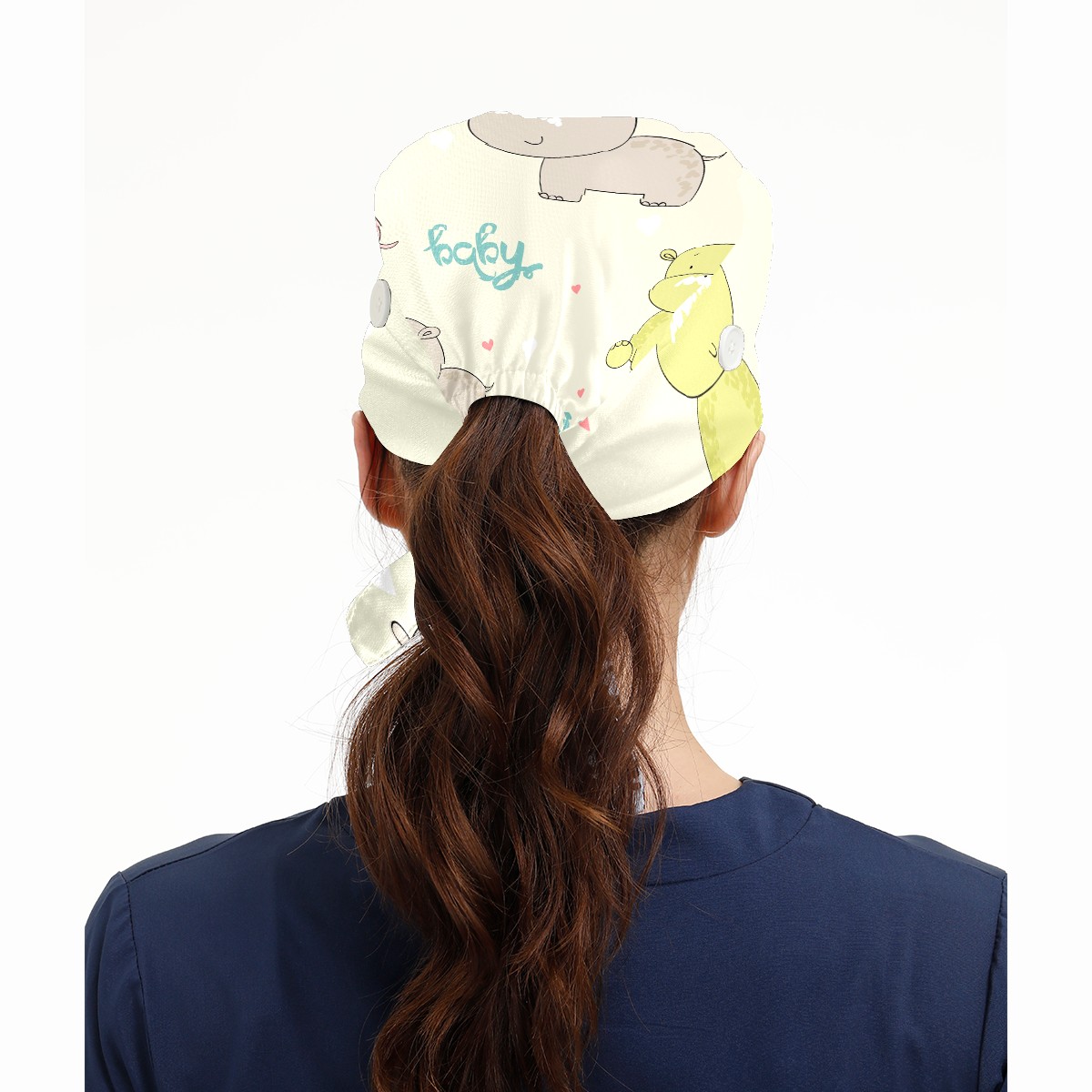 Working Caps with Button & Sweatband Satin Lined Cotton Adjustable Nurse Hats Elastic Band Scrub Cap Surgeon Hat Cute Colorful Hippo