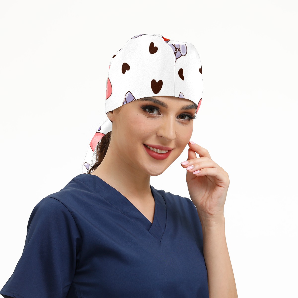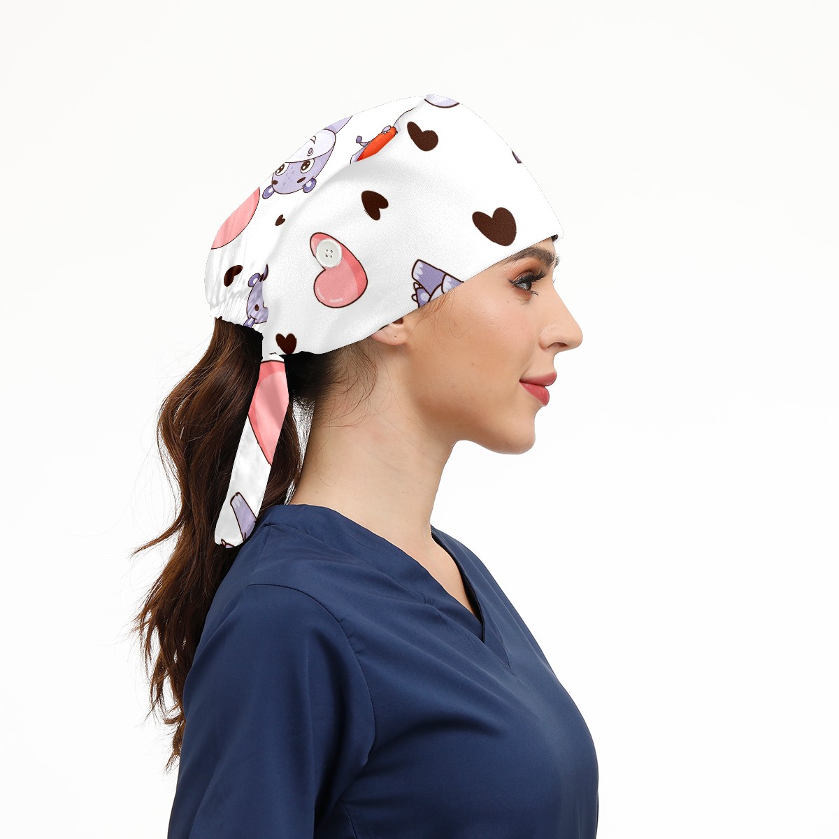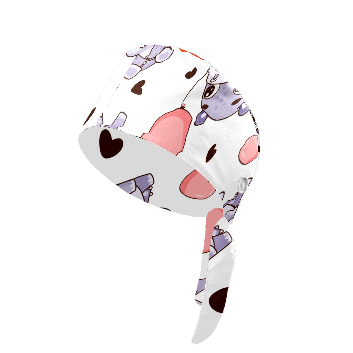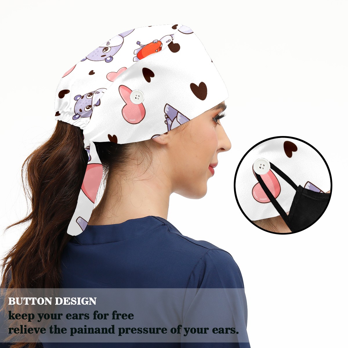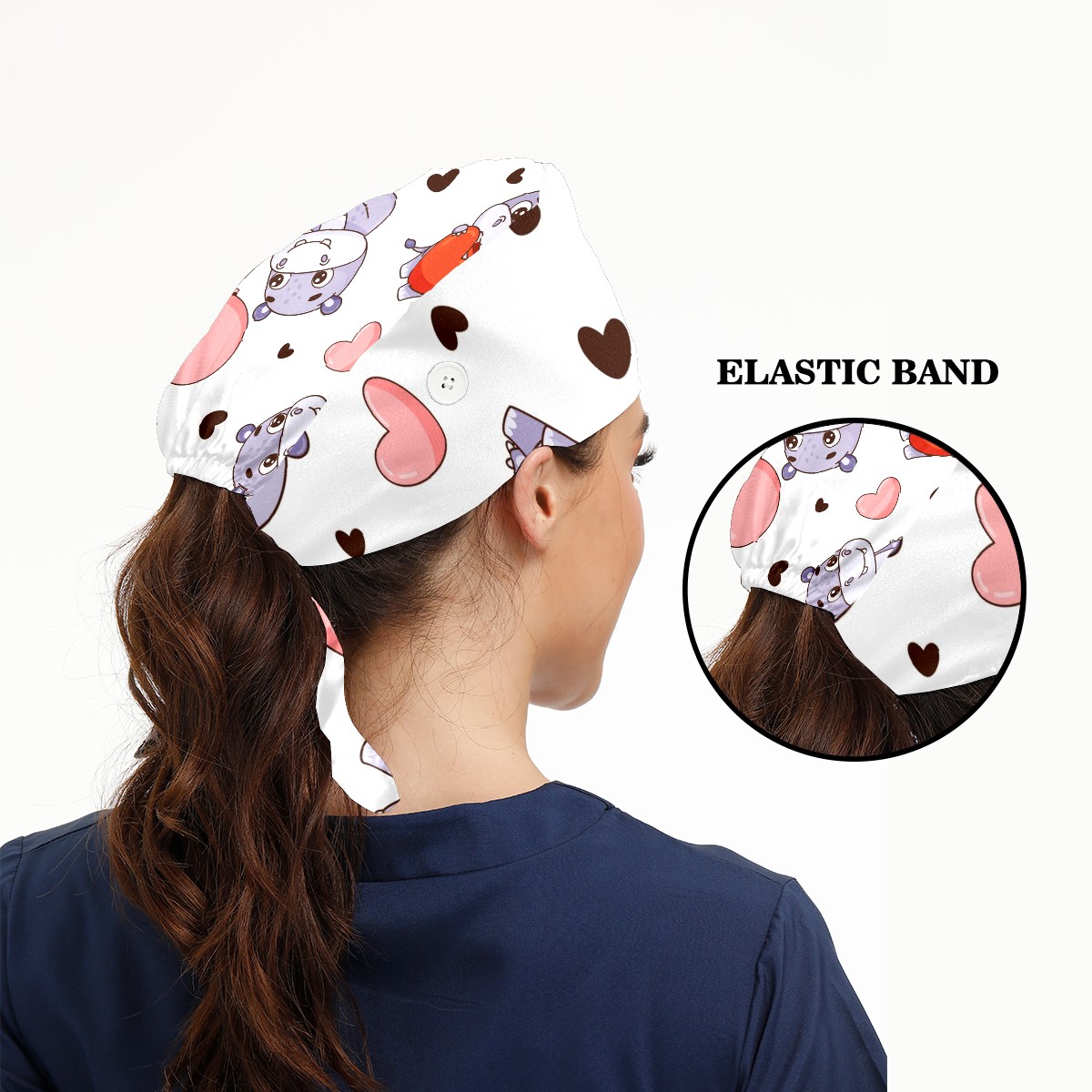 Working Caps with Button & Sweatband Satin Lined Cotton Adjustable Nurse Hats Elastic Band Scrub Cap Surgeon Hat Cute Hippo And Heart Balloons