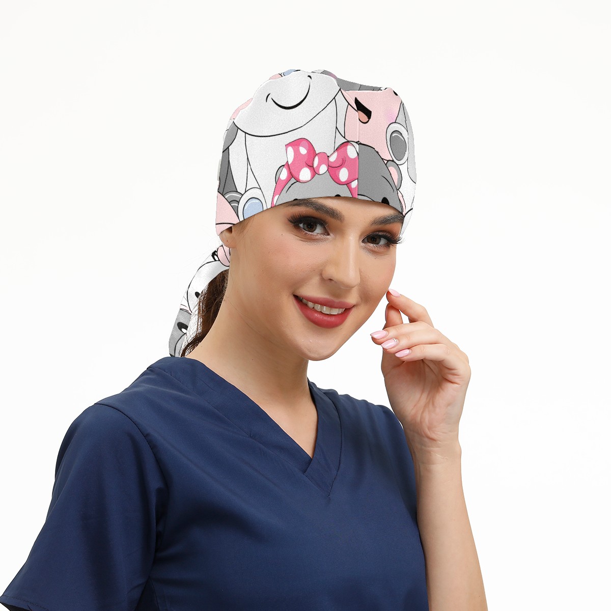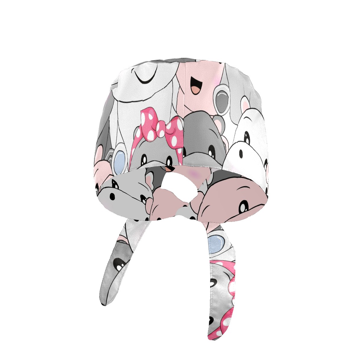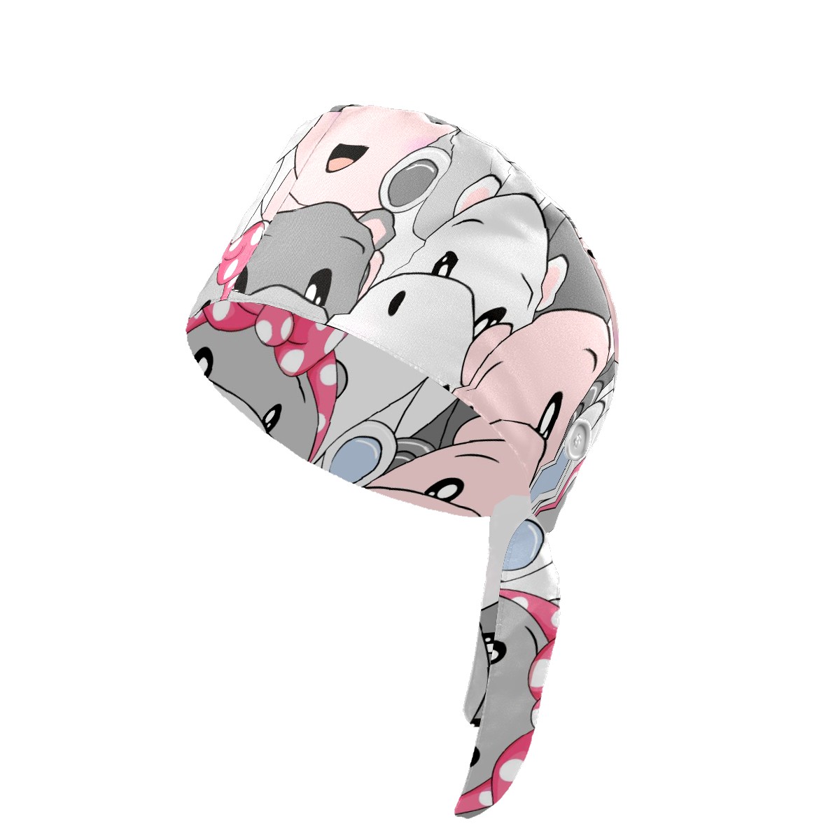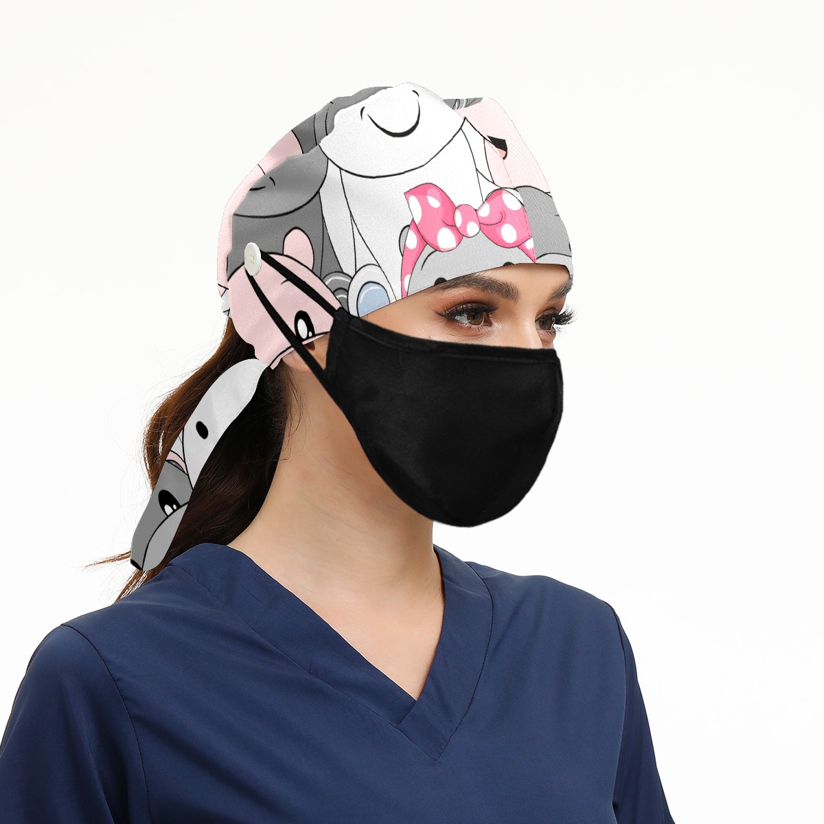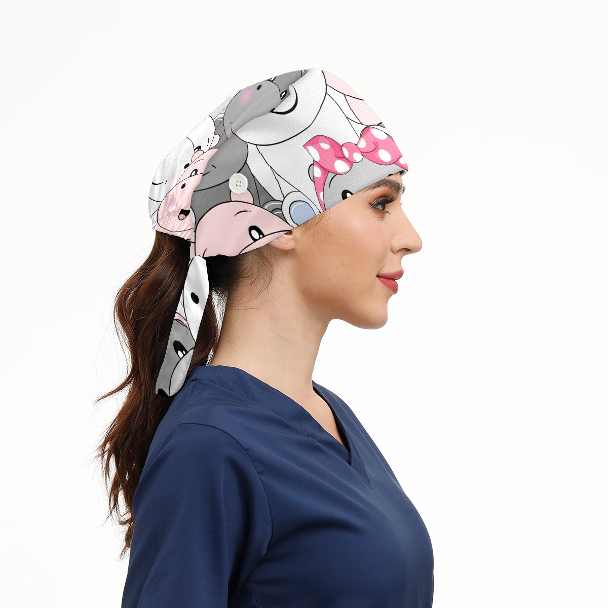 Working Caps with Button & Sweatband Satin Lined Cotton Adjustable Nurse Hats Elastic Band Scrub Cap Surgeon Hat Cute Baby Hippo