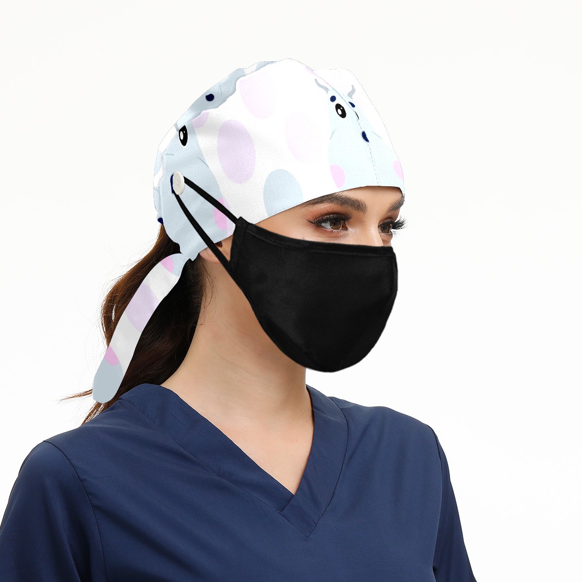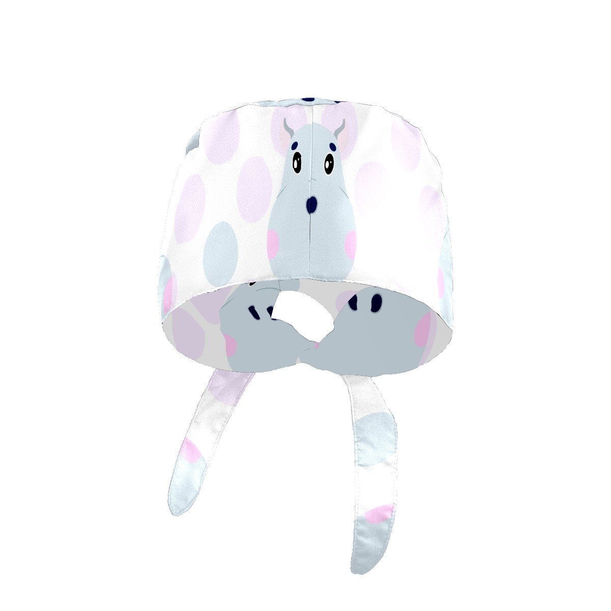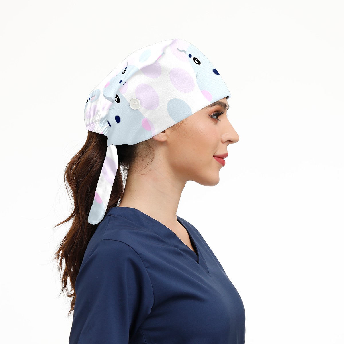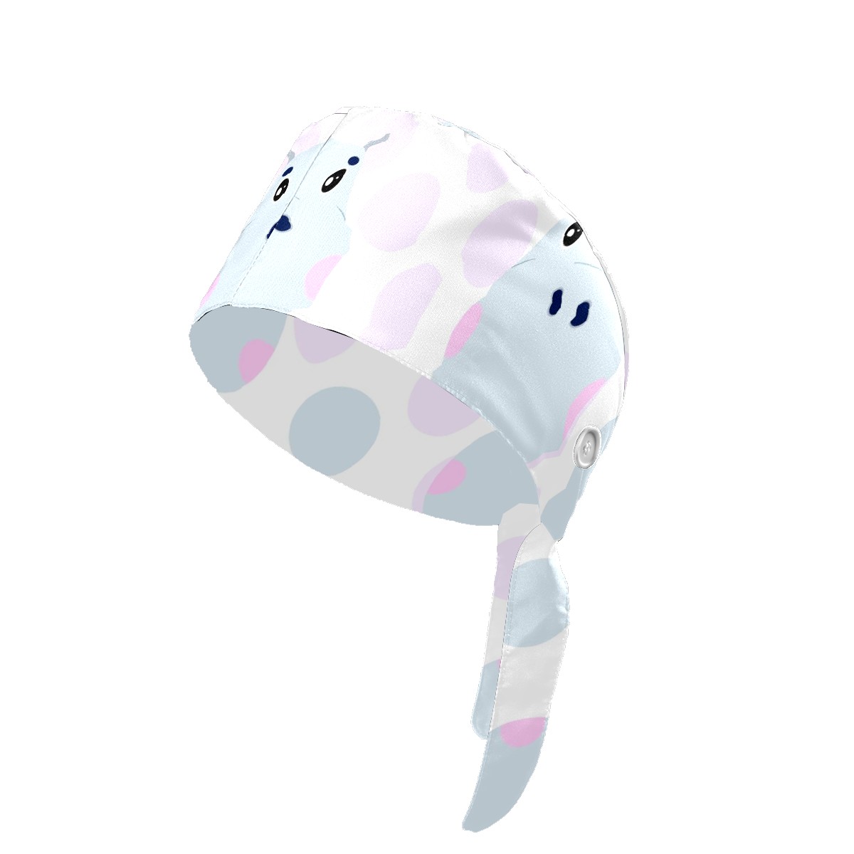Working Caps with Button & Sweatband Satin Lined Cotton Adjustable Nurse Hats Elastic Band Scrub Cap Surgeon Hat Animals Hippopotamus Face