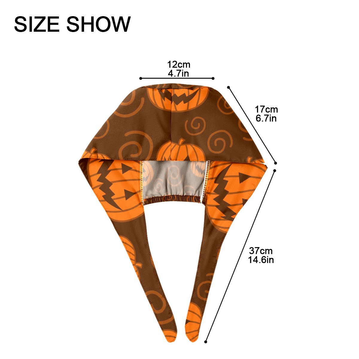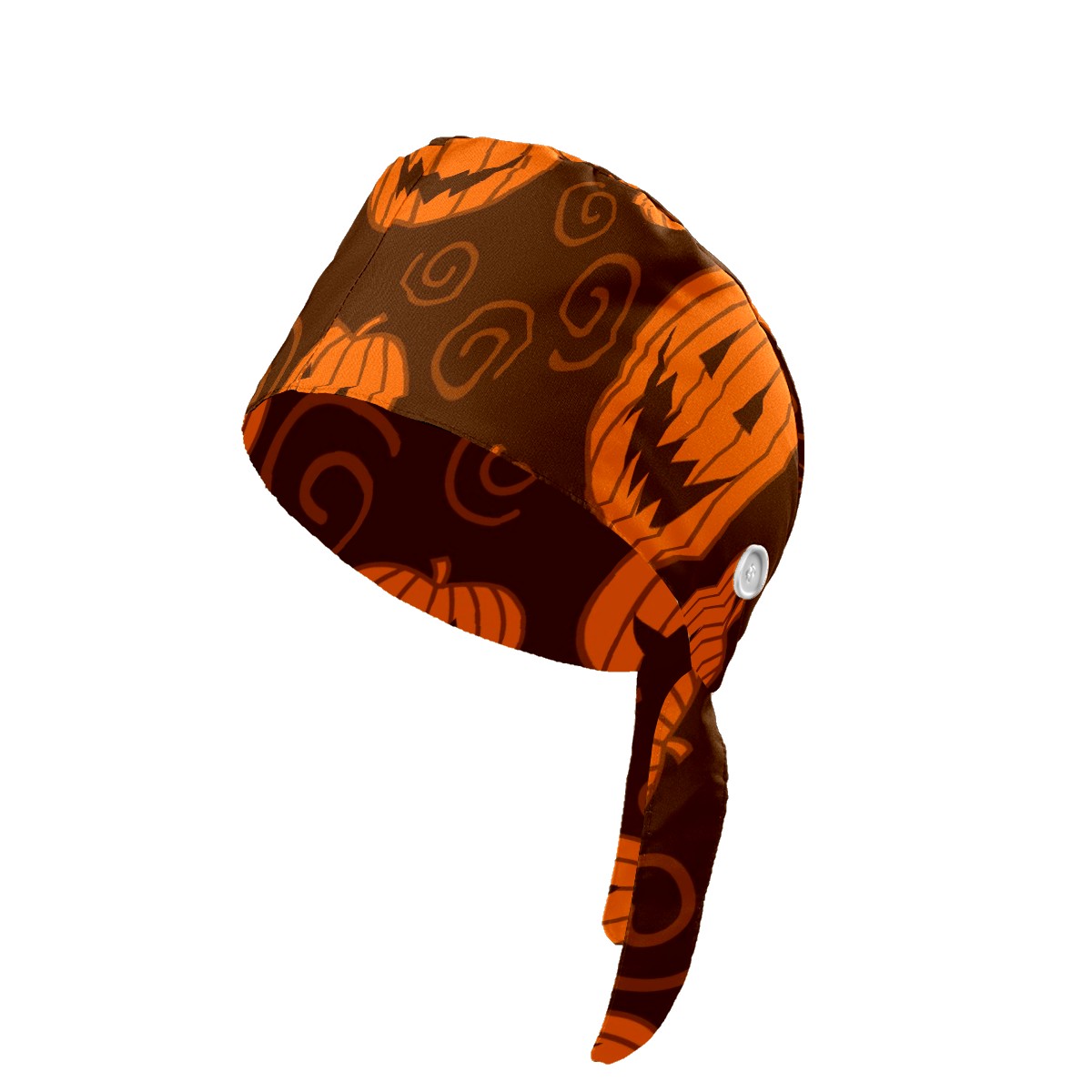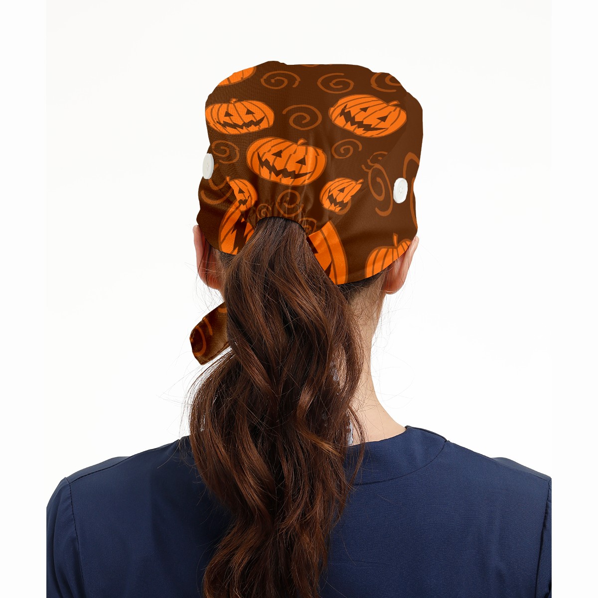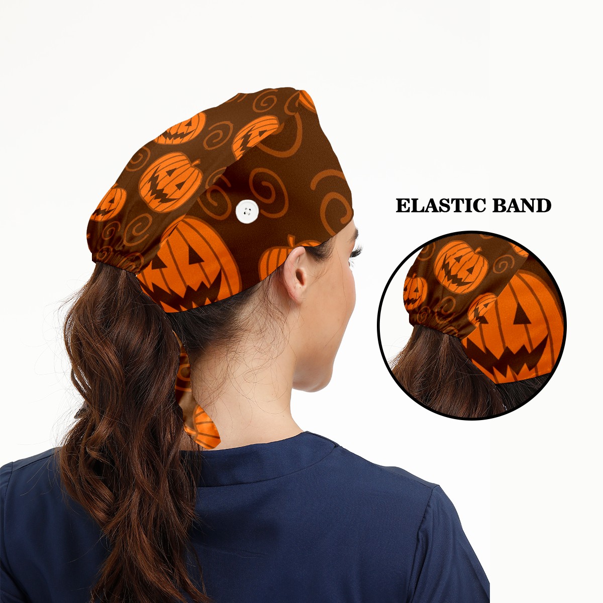 Working Caps with Button & Sweatband Satin Lined Cotton Adjustable Nurse Hats Elastic Band Scrub Cap Surgeon Hat Hallowen Orange Pumpkin