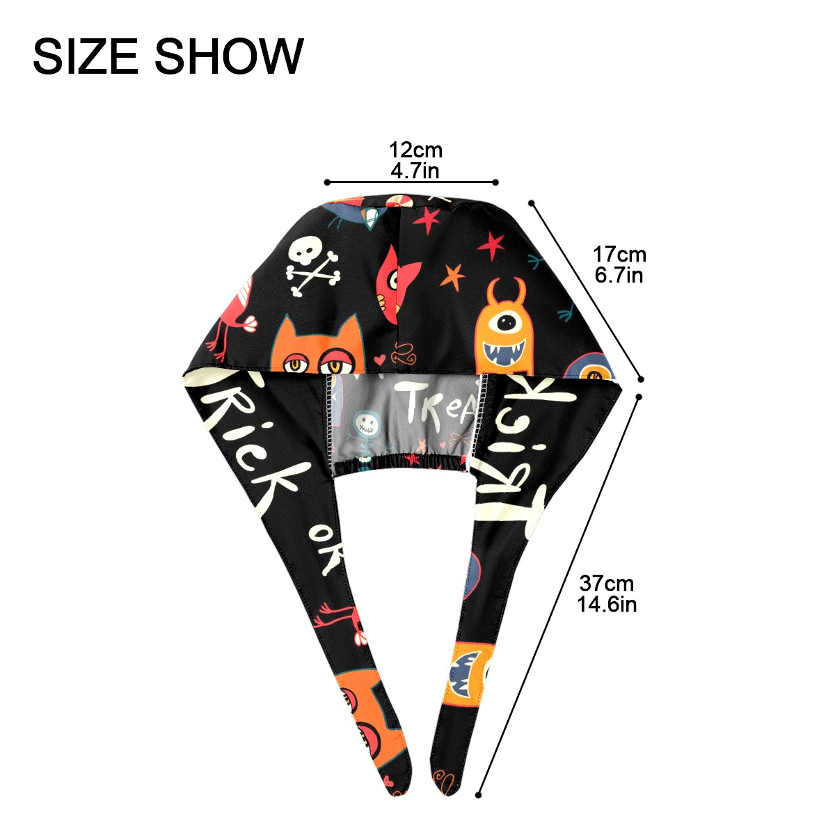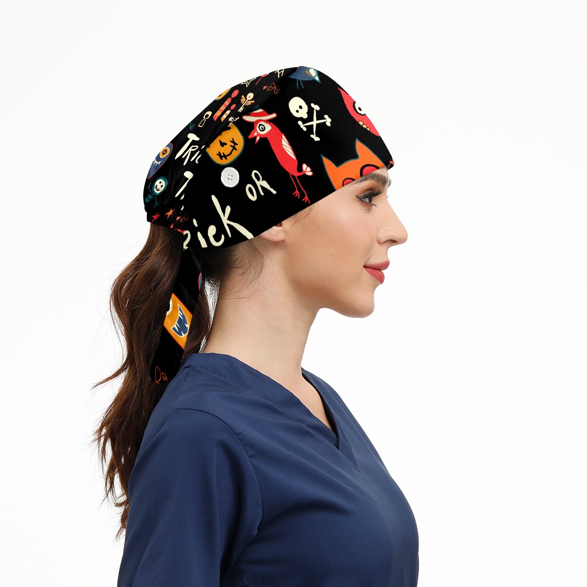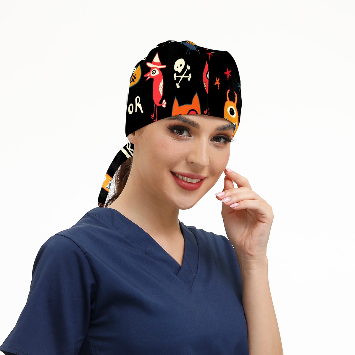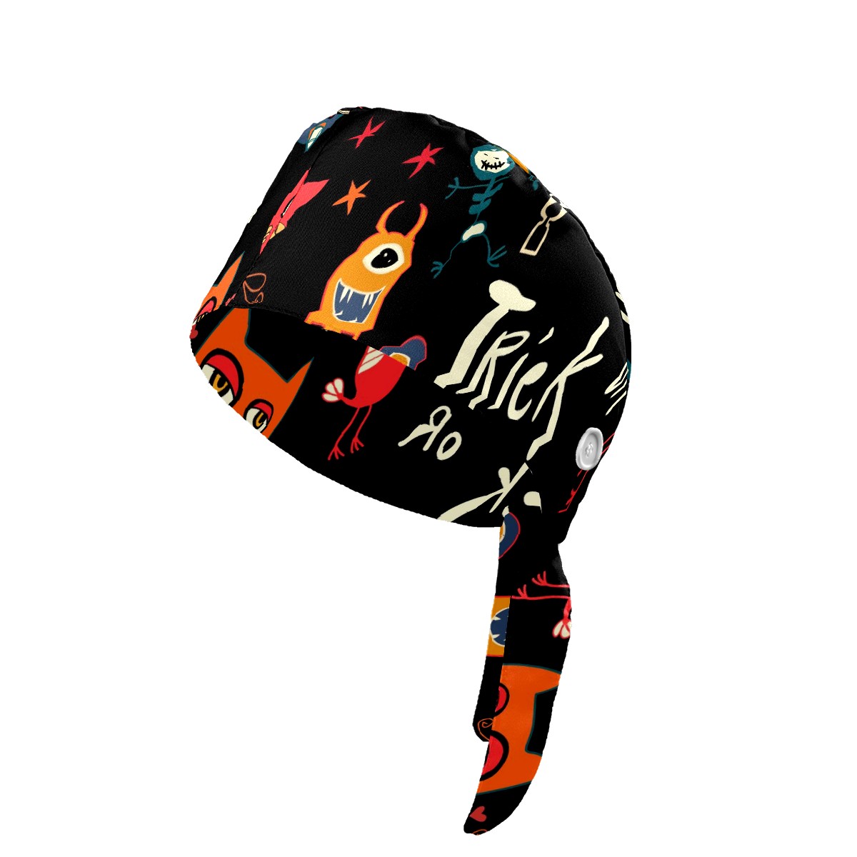 Working Caps with Button & Sweatband Satin Lined Cotton Adjustable Nurse Hats Elastic Band Scrub Cap Surgeon Hat Halloween Trick-or-Treat Pattern