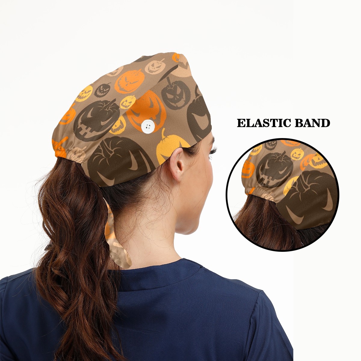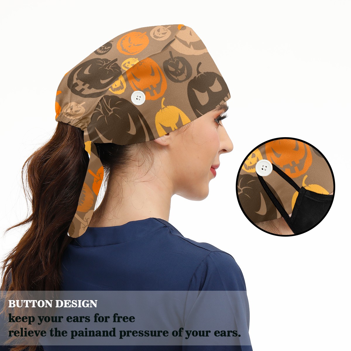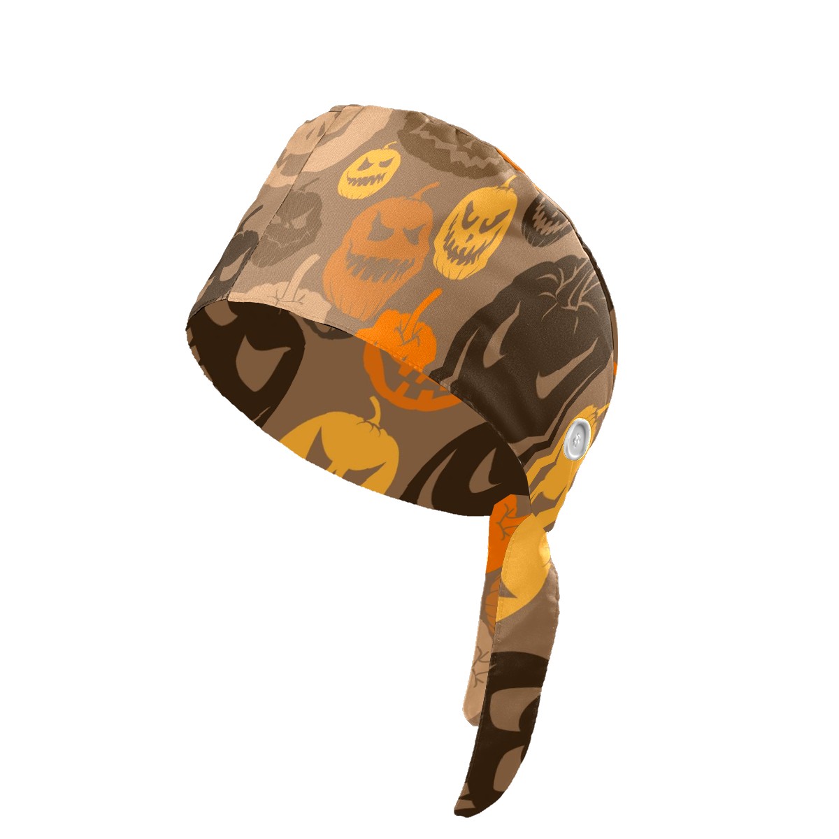 Working Caps with Button & Sweatband Satin Lined Cotton Adjustable Nurse Hats Elastic Band Scrub Cap Surgeon Hat Halloween Scary Pumpkins