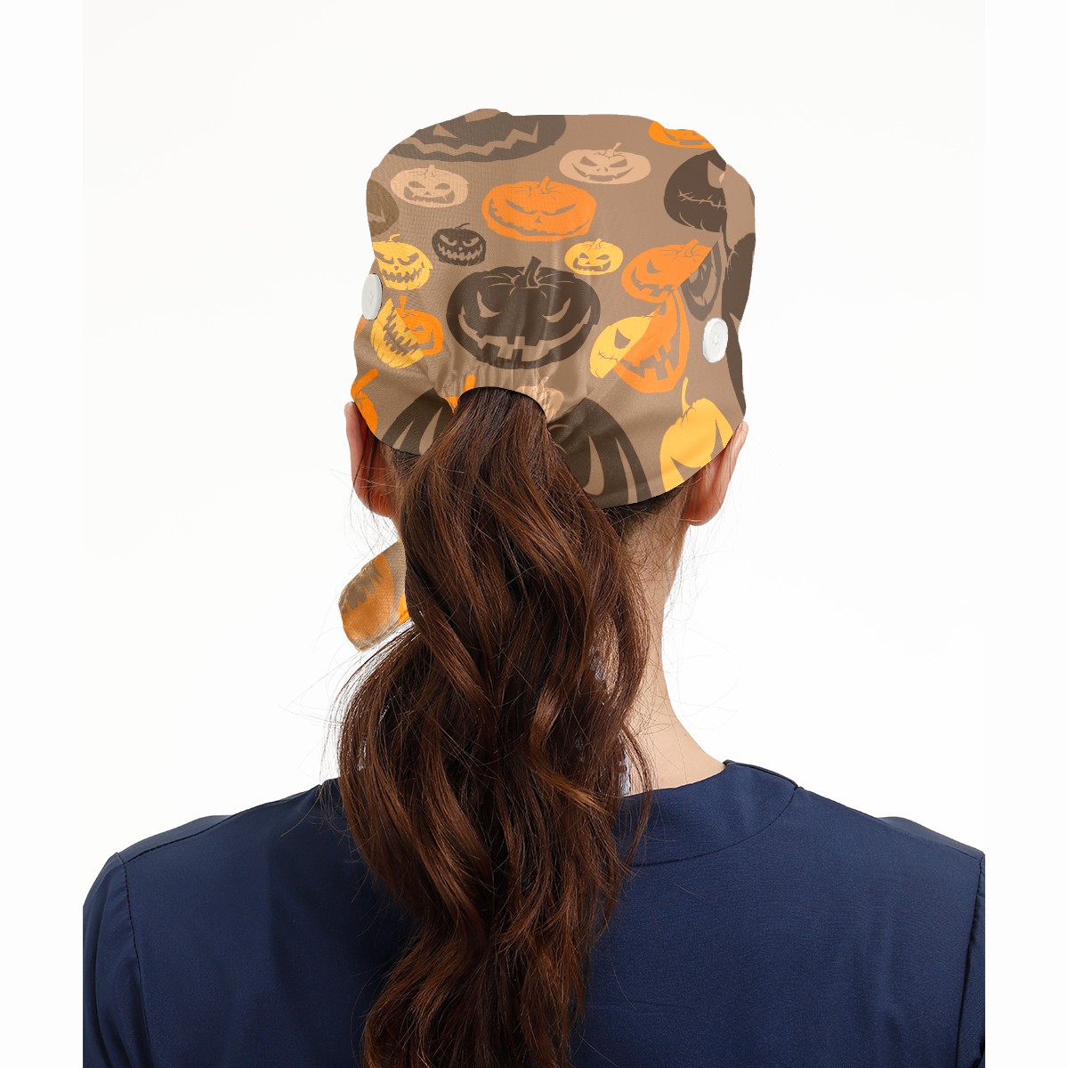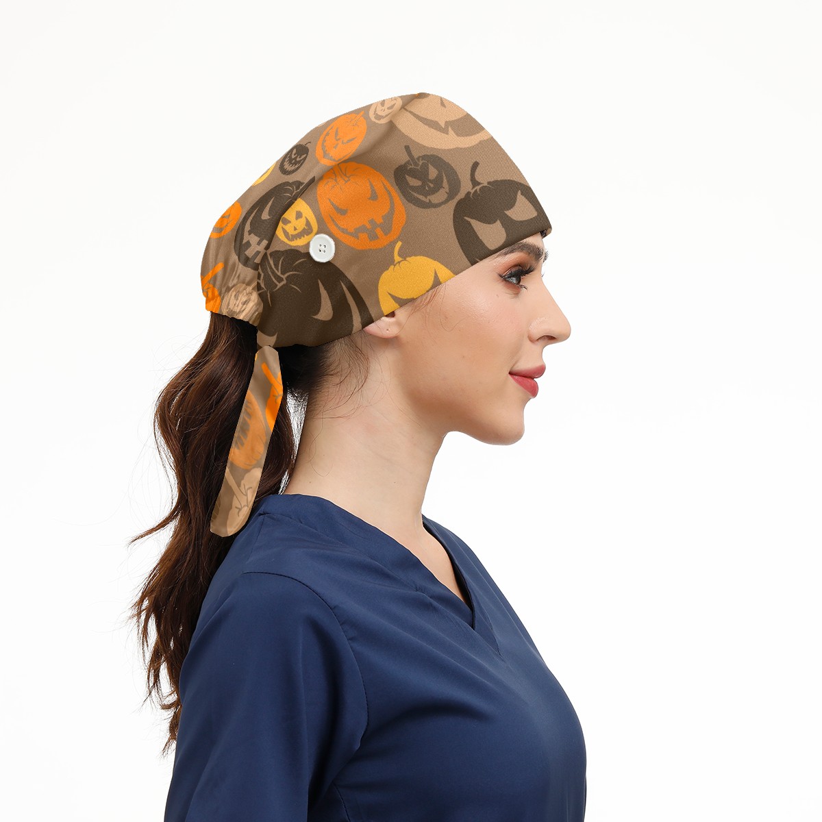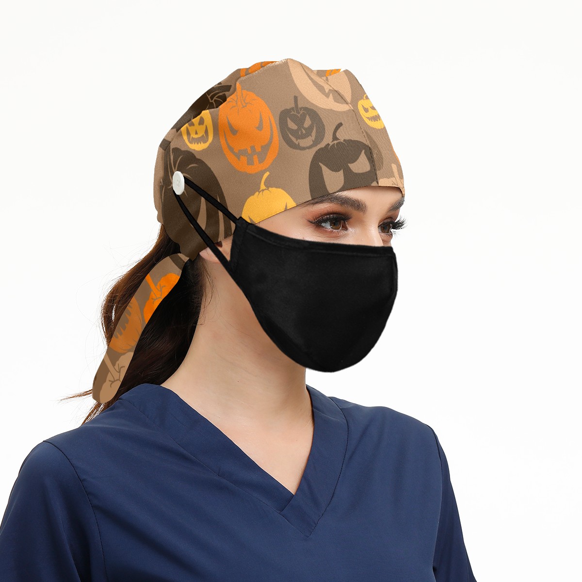 Working Caps with Button & Sweatband Satin Lined Cotton Adjustable Nurse Hats Elastic Band Scrub Cap Surgeon Hat Halloween Scary Pumpkins
