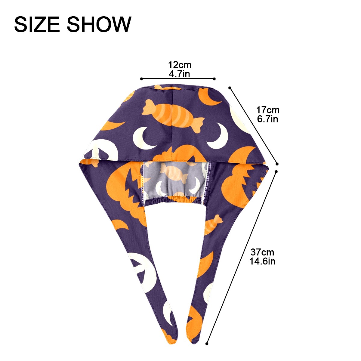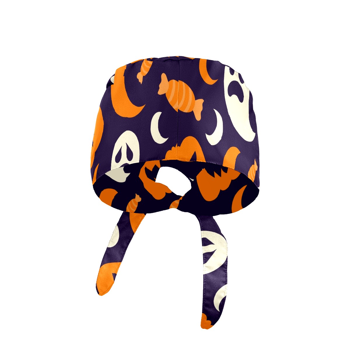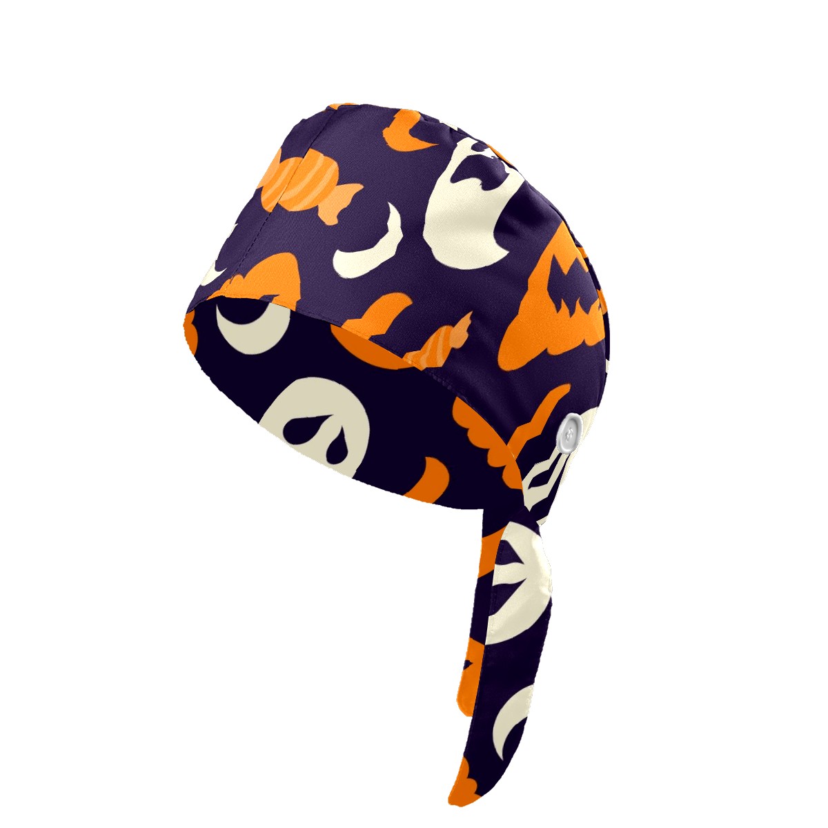 Working Caps with Button & Sweatband Satin Lined Cotton Adjustable Nurse Hats Elastic Band Scrub Cap Surgeon Hat Halloween Pumpkin Ghost Candy Moon