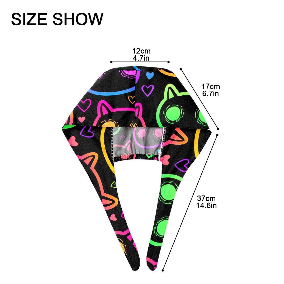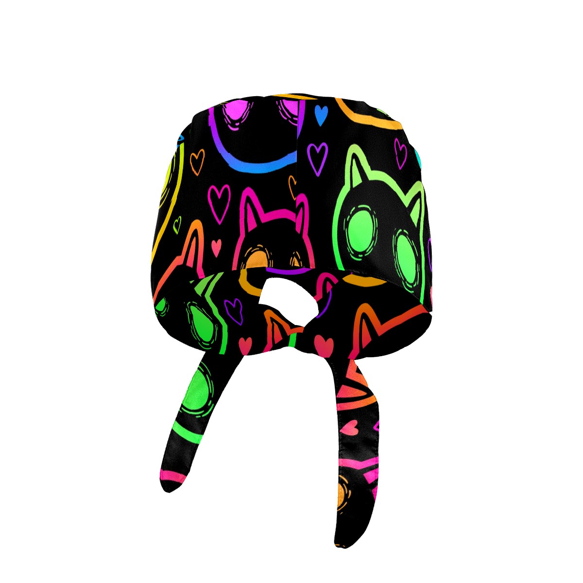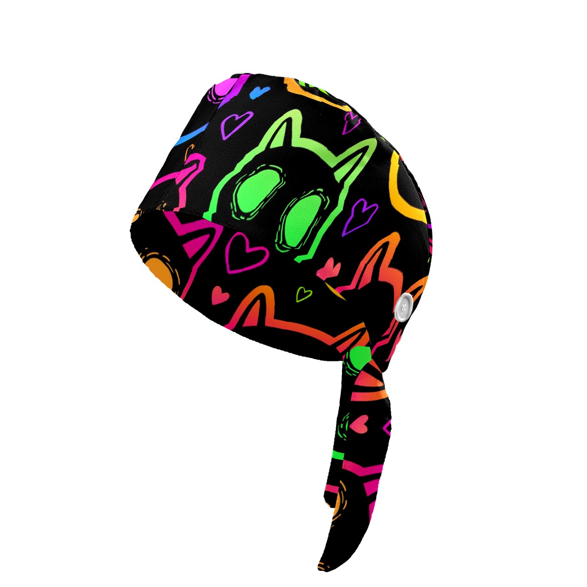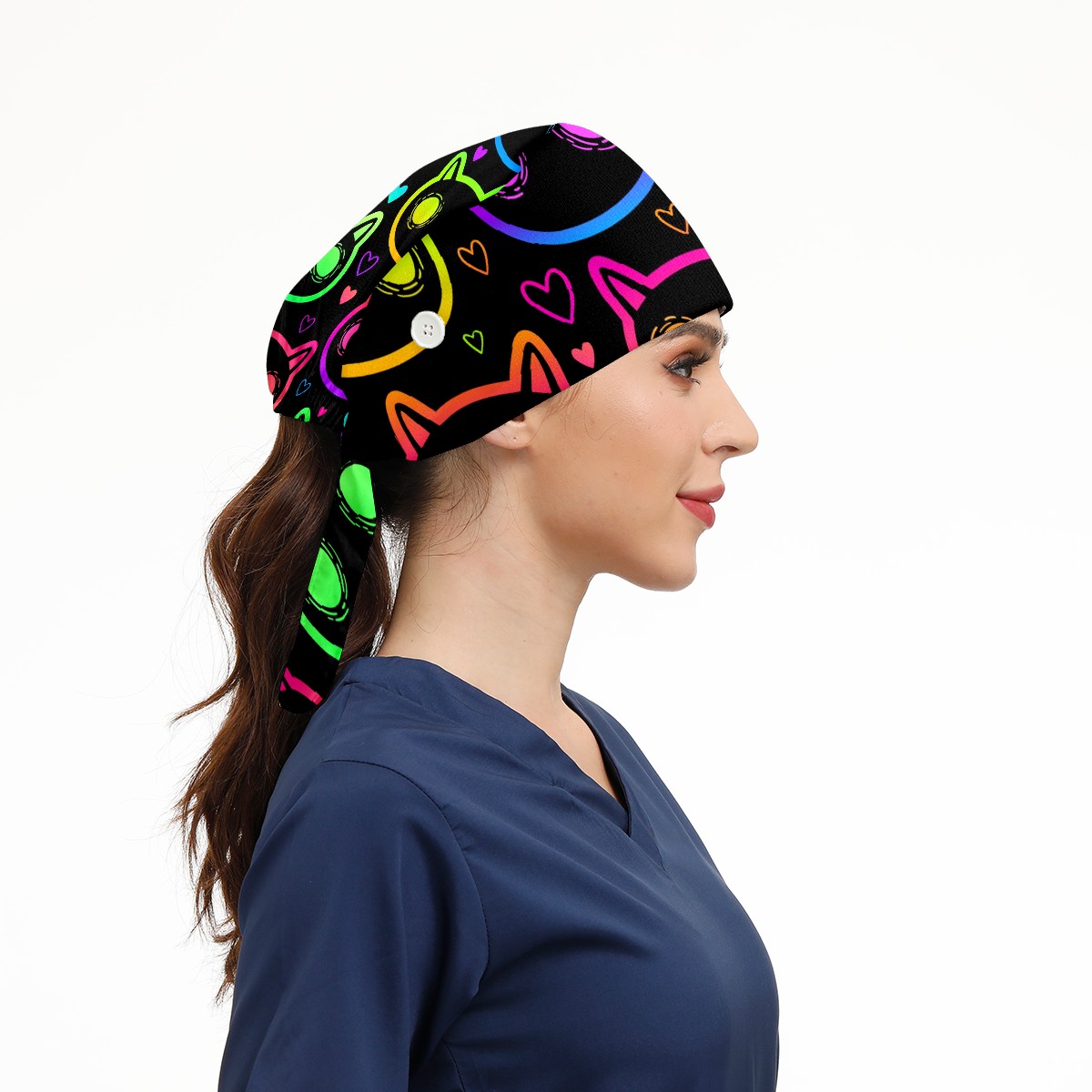 Working Caps with Button & Sweatband Satin Lined Cotton Adjustable Nurse Hats Elastic Band Scrub Cap Surgeon Hat Halloween Cute Witchcraft Cat