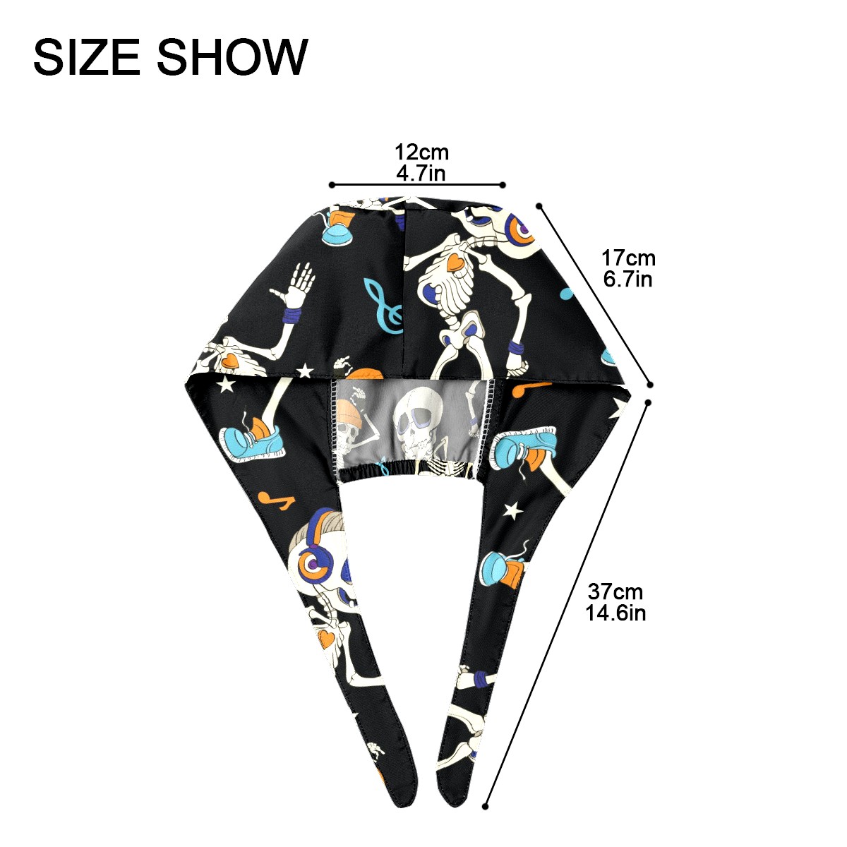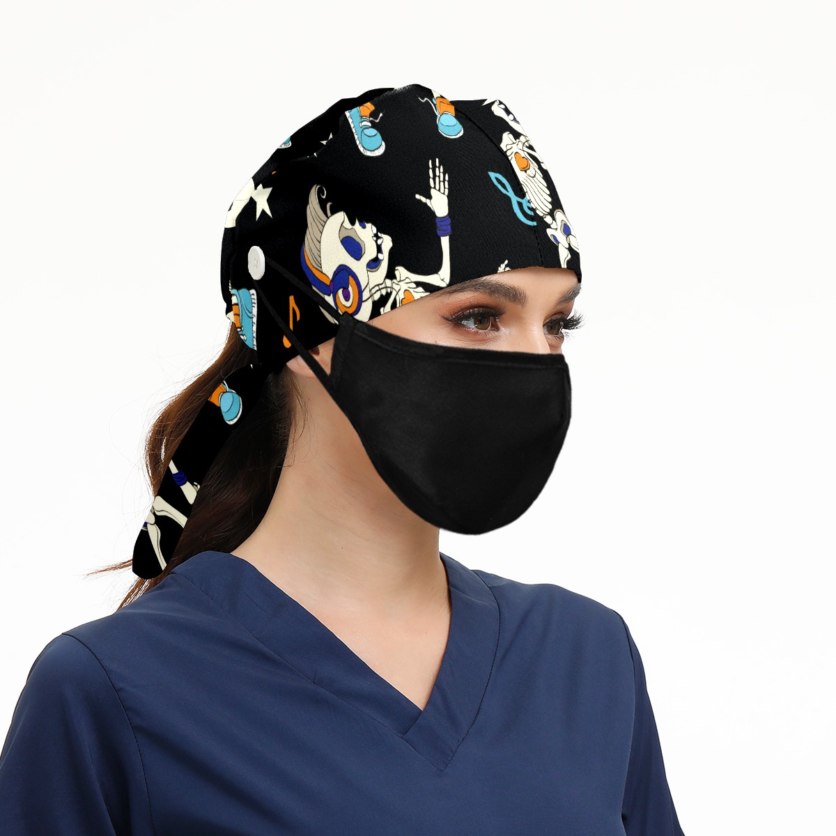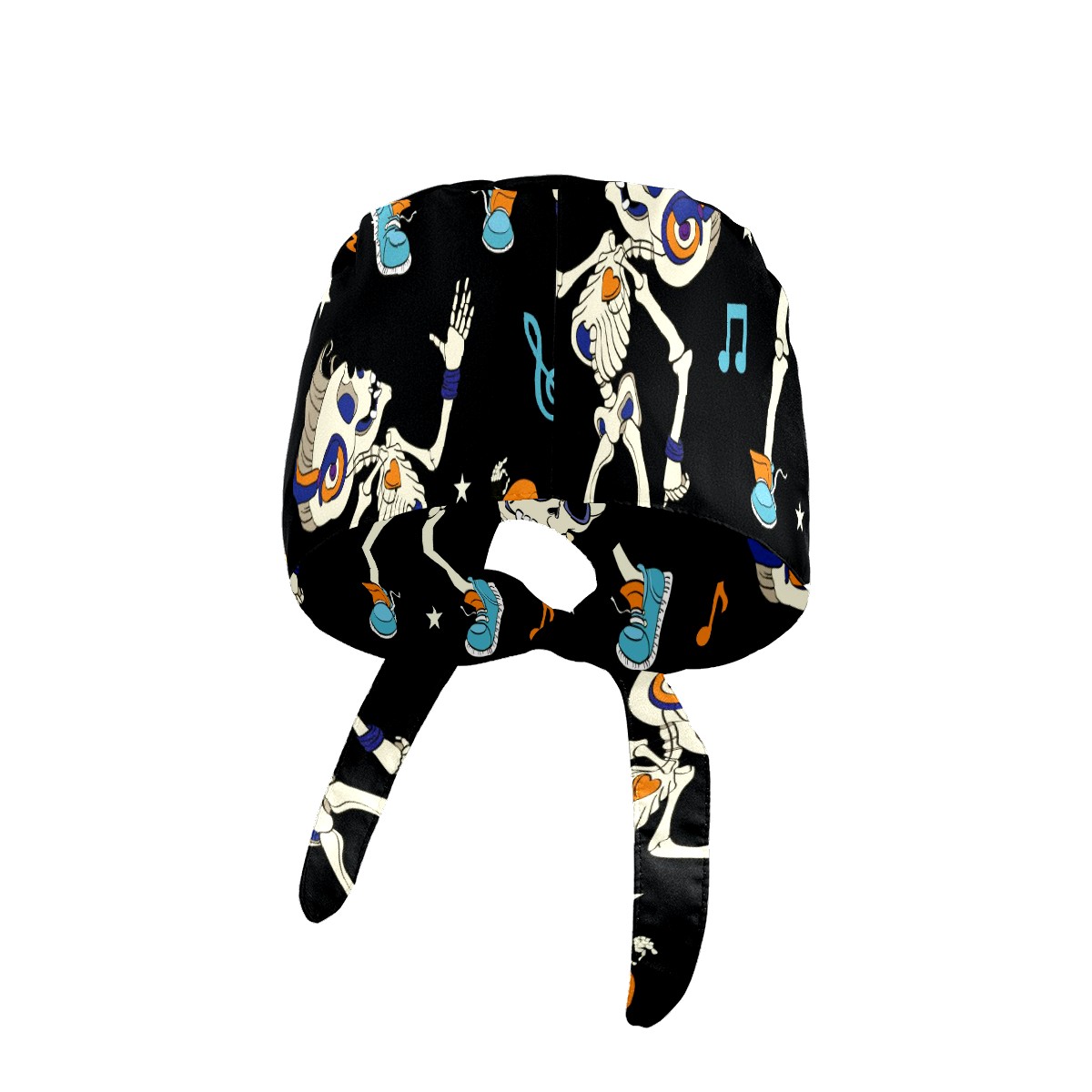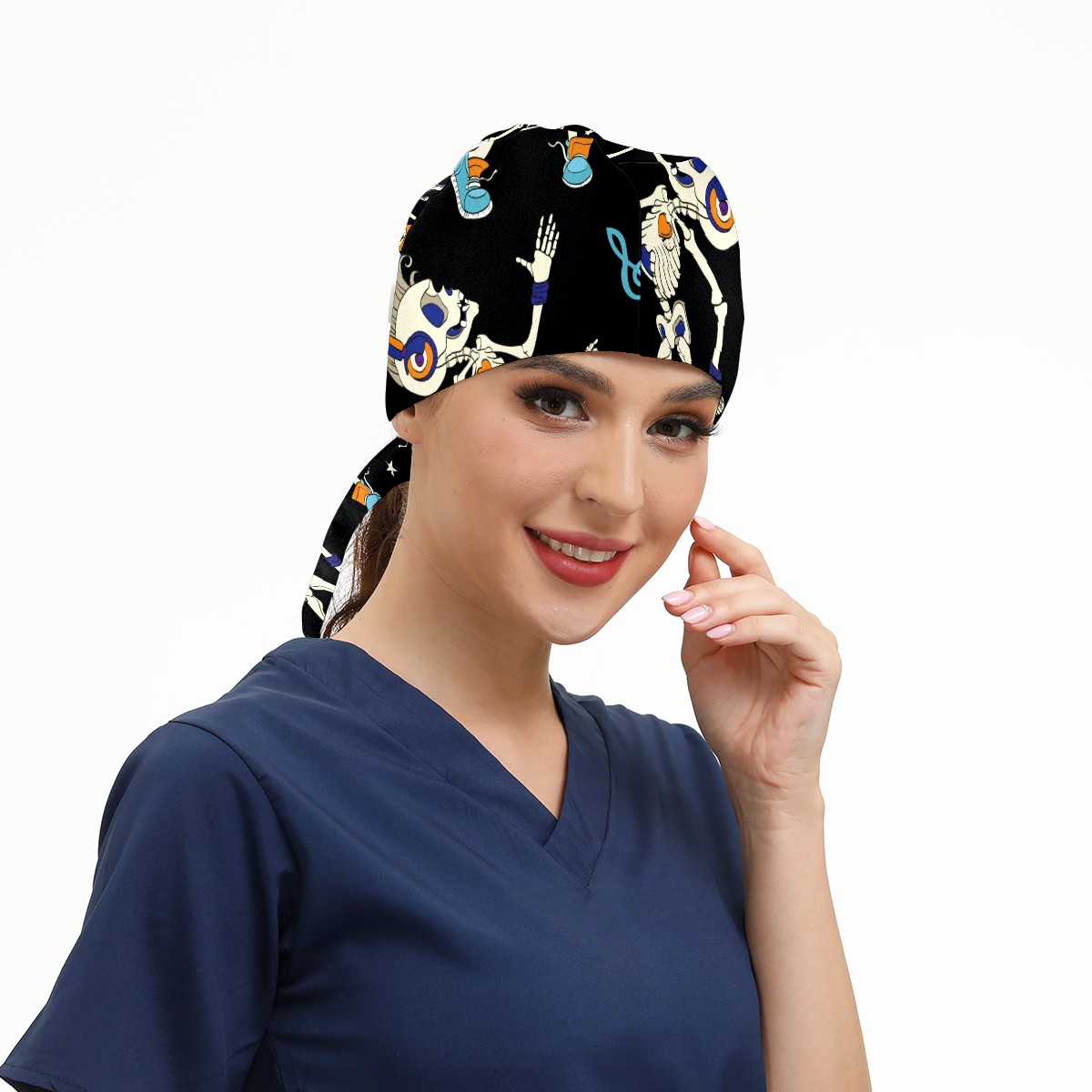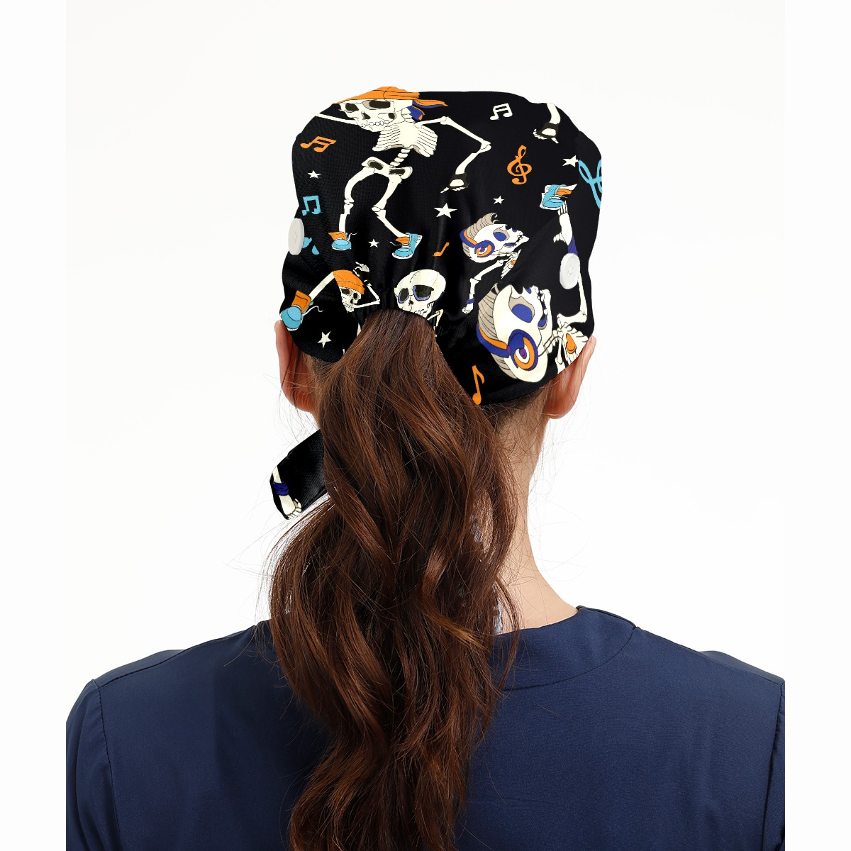 Working Caps with Button & Sweatband Satin Lined Cotton Adjustable Nurse Hats Elastic Band Scrub Cap Surgeon Hat Dancing Skeleton Halloween