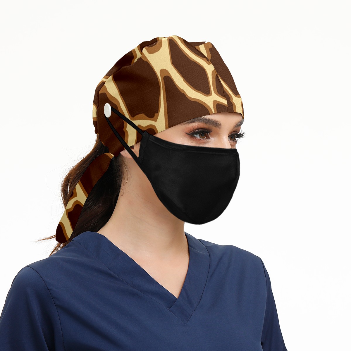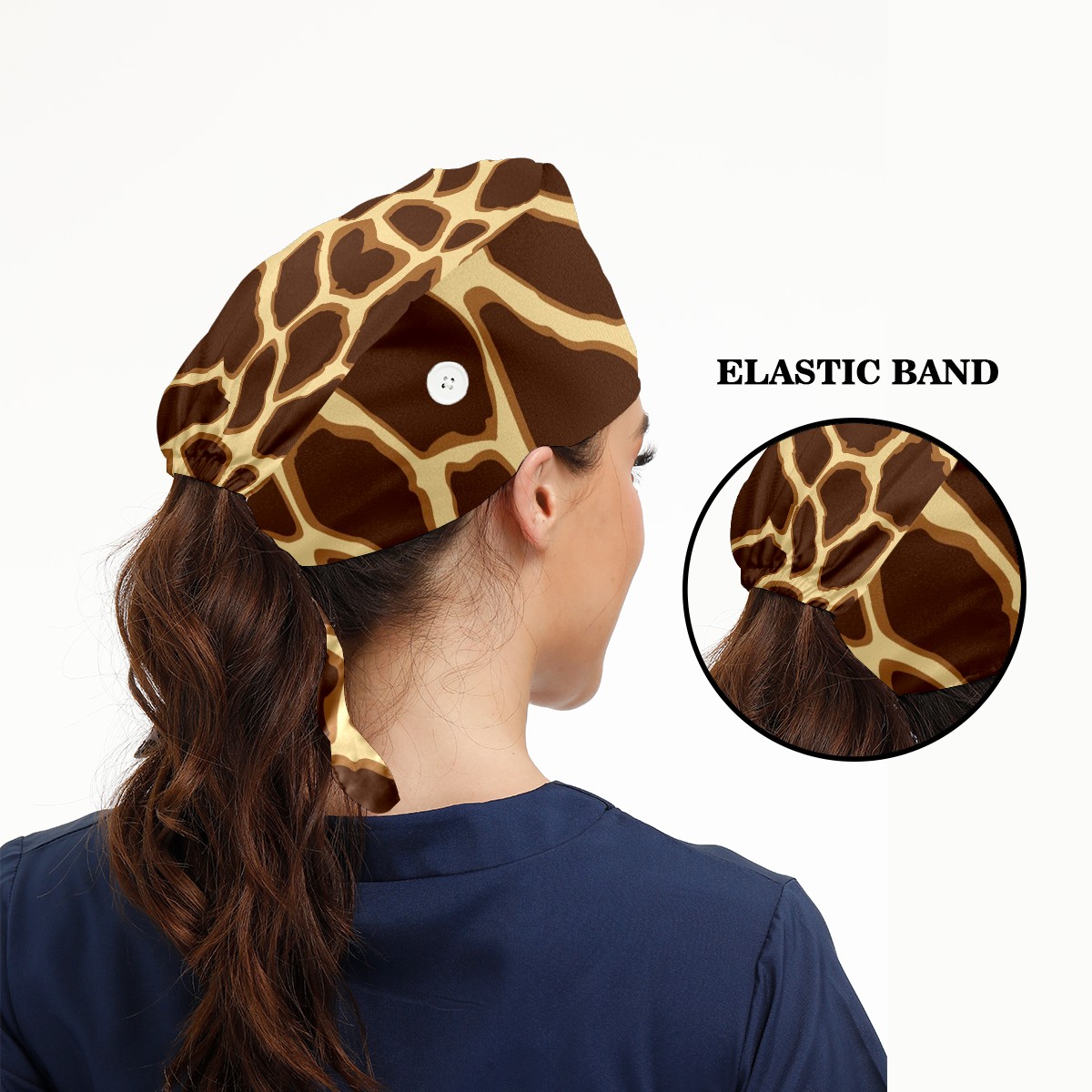 Working Caps with Button & Sweatband Satin Lined Cotton Adjustable Nurse Hats Elastic Band Scrub Cap Surgeon Hat Giraffe Skin Print