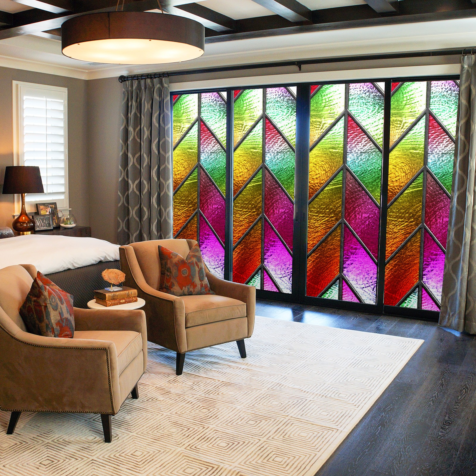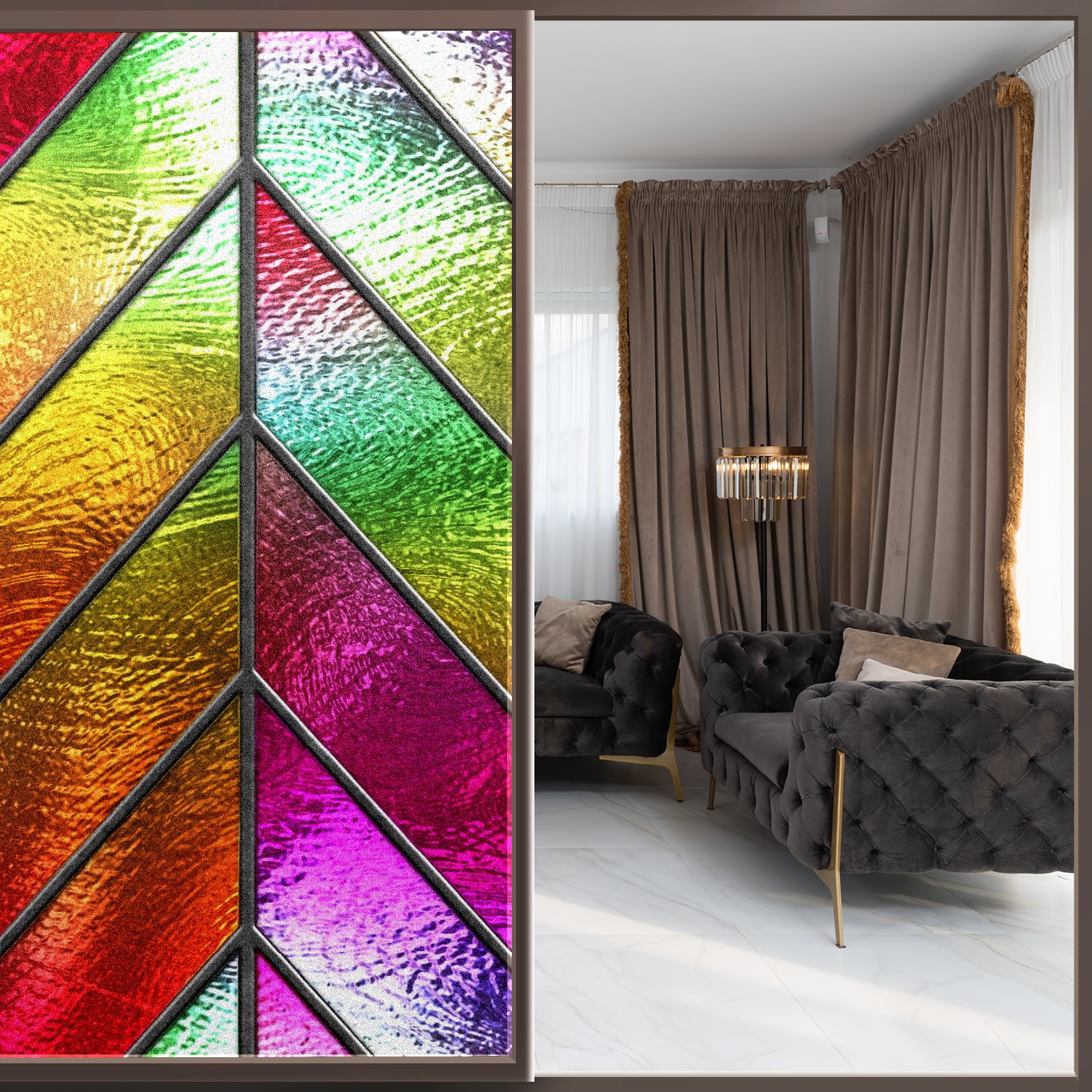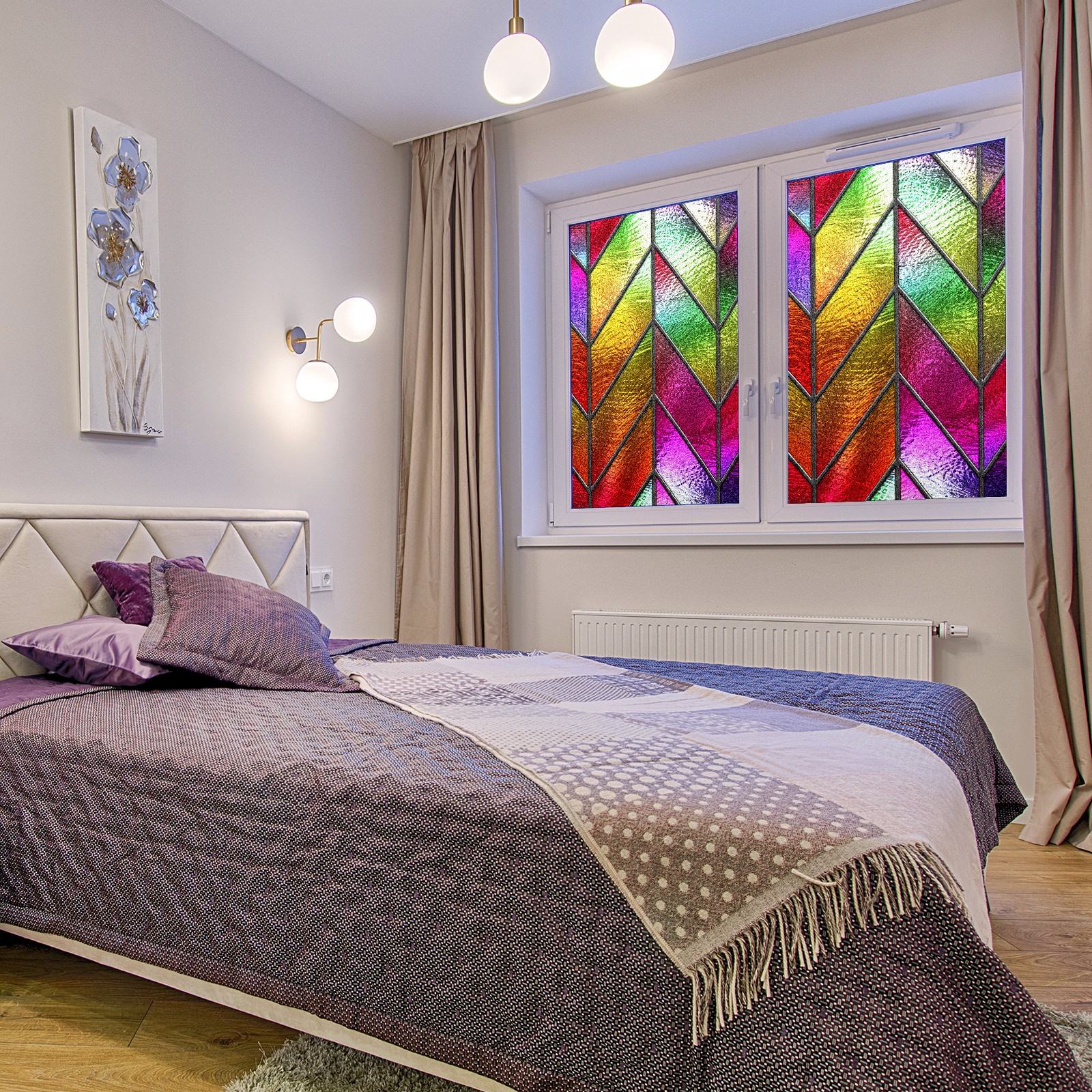 Our privacy window film offers customers a wide range of styles and sizes, with product applications ranging from classic frosted window film to colourful stained glass sticker designs to bring a certain sense of security to your home. This product is suitable for bedroom full blackout window film, living room elegant colourful decorative window film, bathroom functional frosted window film. Simple and convenient installation, non-adhesive type can be removed and cleaned.