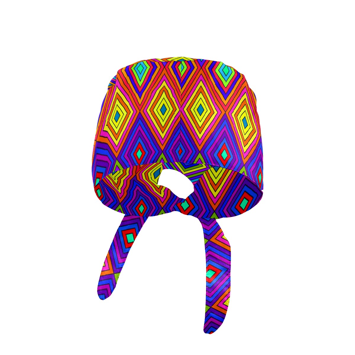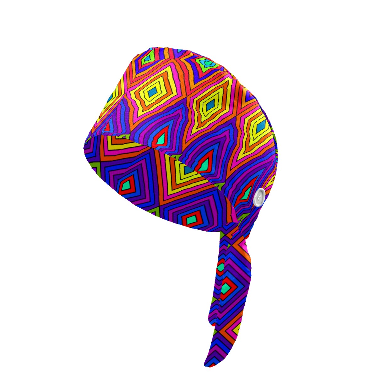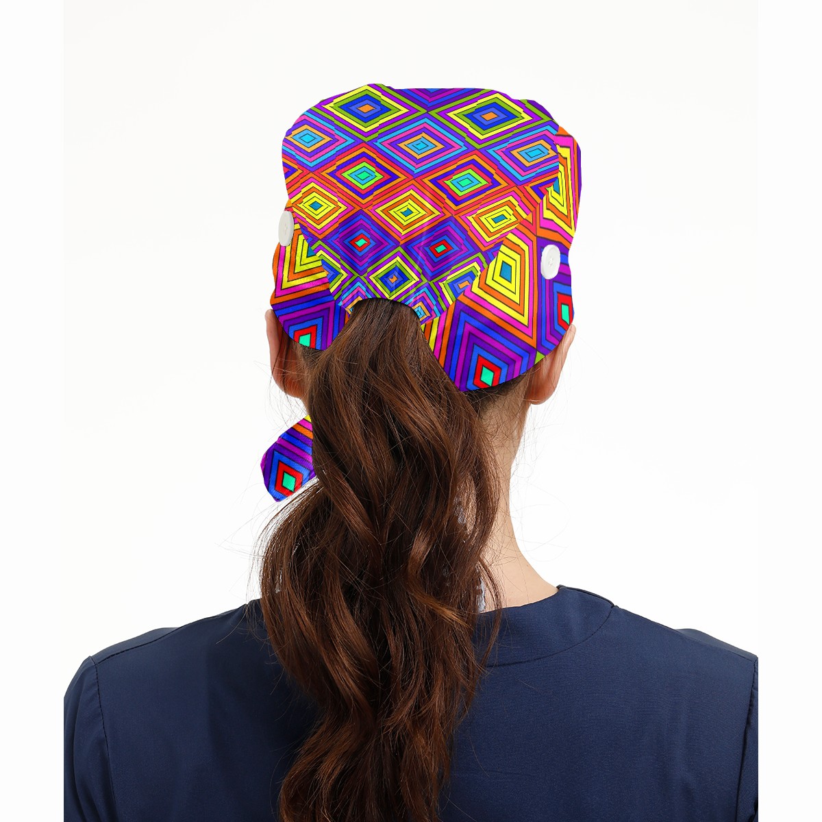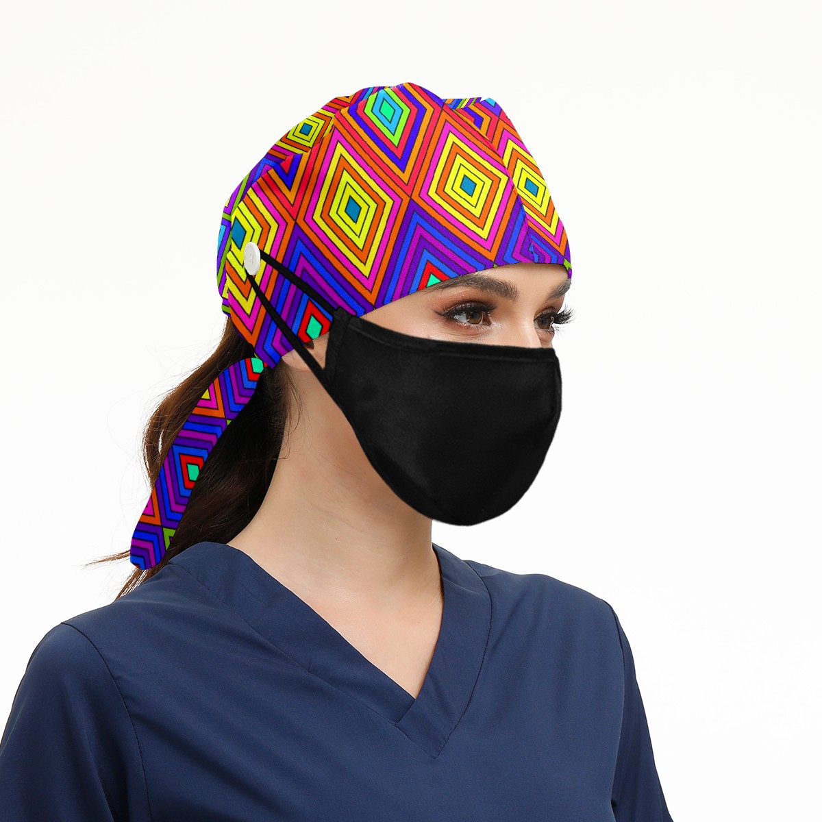 Working Caps with Button & Sweatband Satin Lined Cotton Adjustable Nurse Hats Elastic Band Scrub Cap Surgeon Hat Colorful Psychedelic Squares Pattern