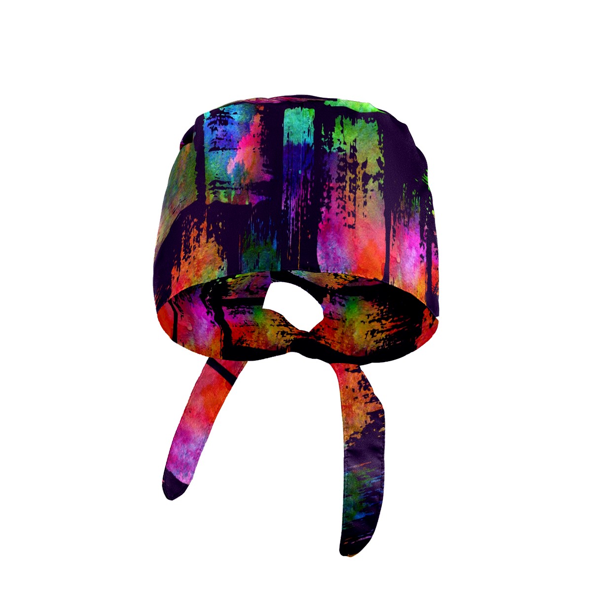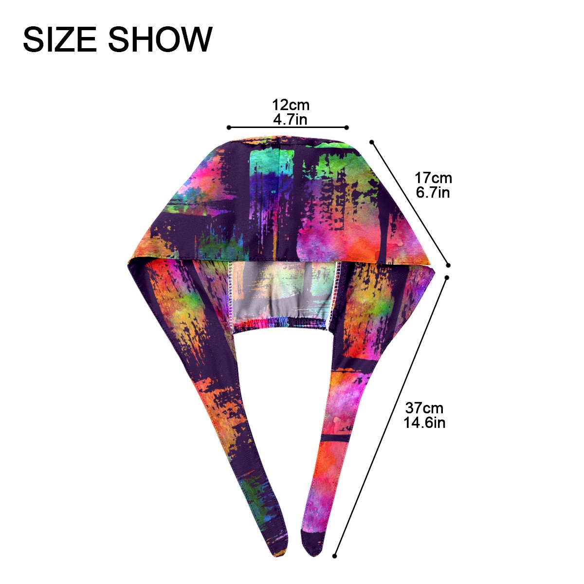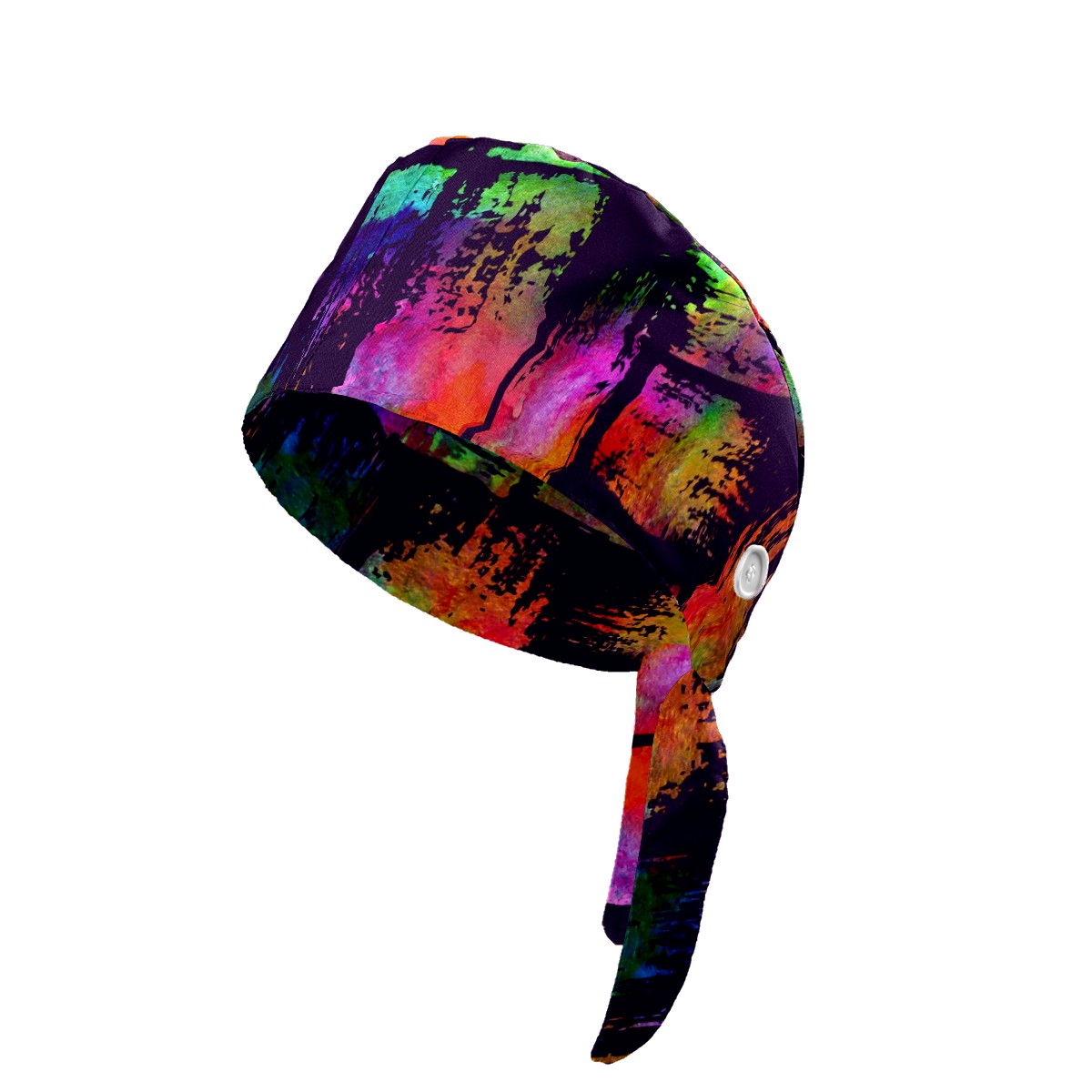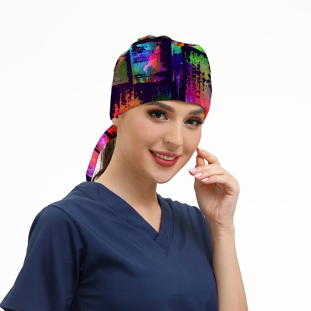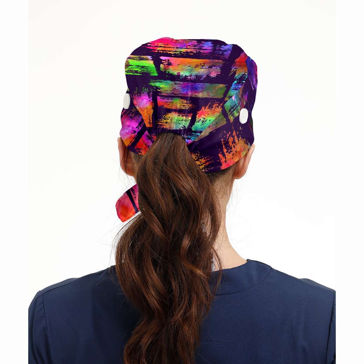 Working Caps with Button & Sweatband Satin Lined Cotton Adjustable Nurse Hats Elastic Band Scrub Cap Surgeon Hat Rainbow Watercolor Color On Violet Background