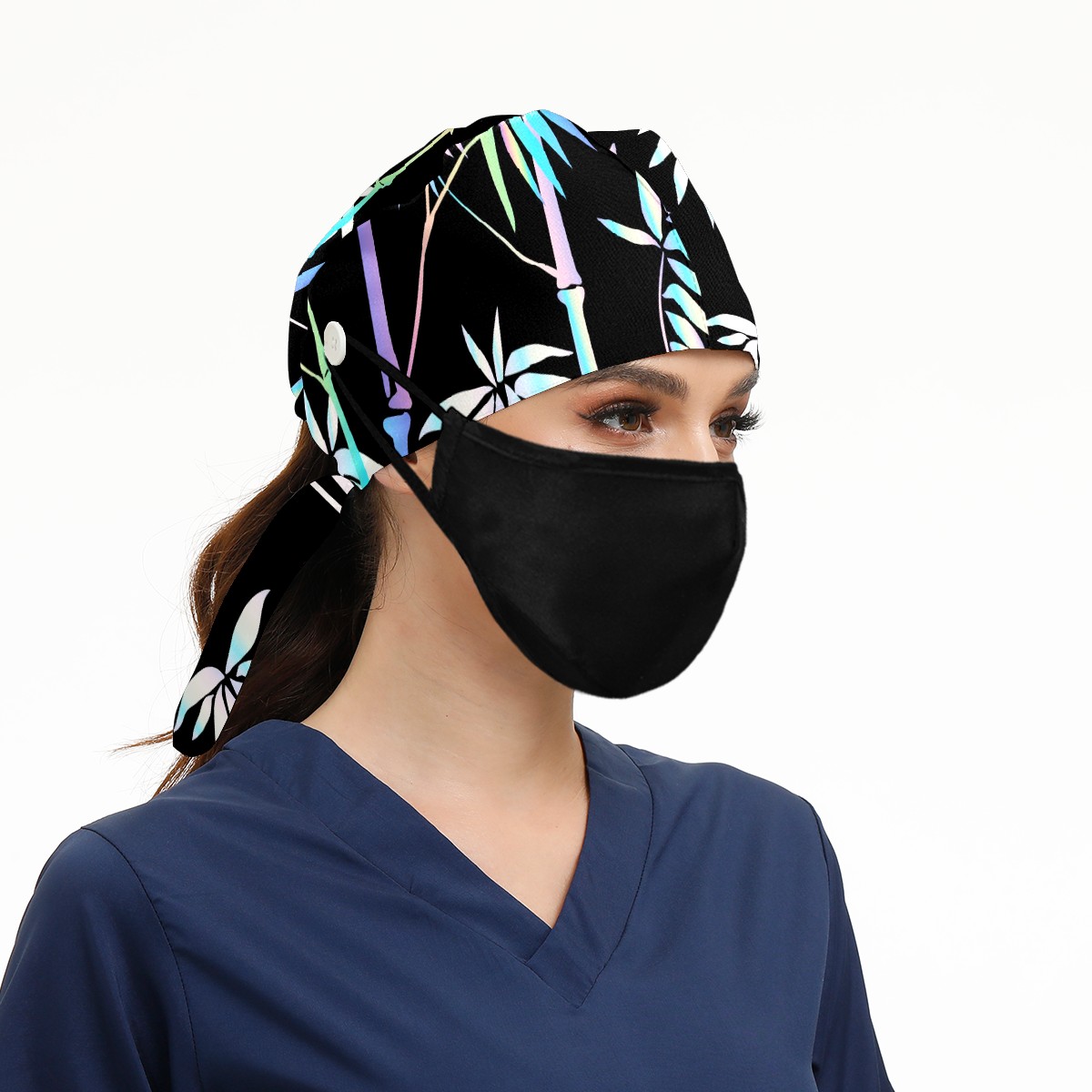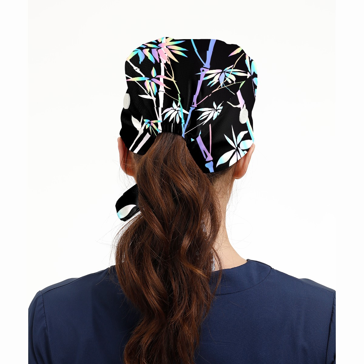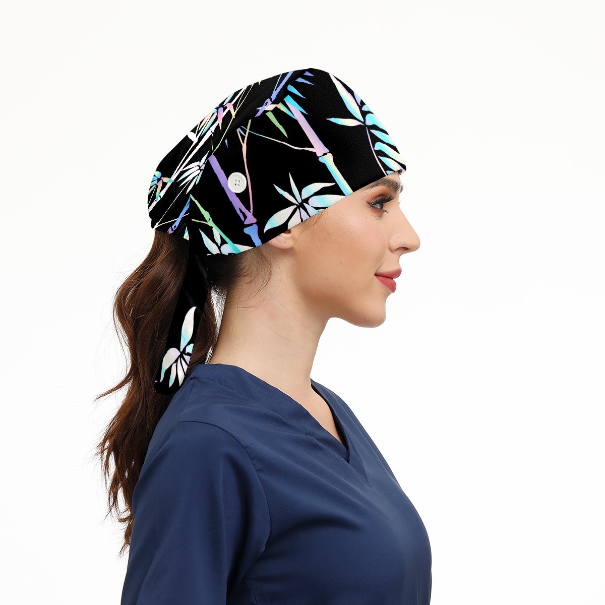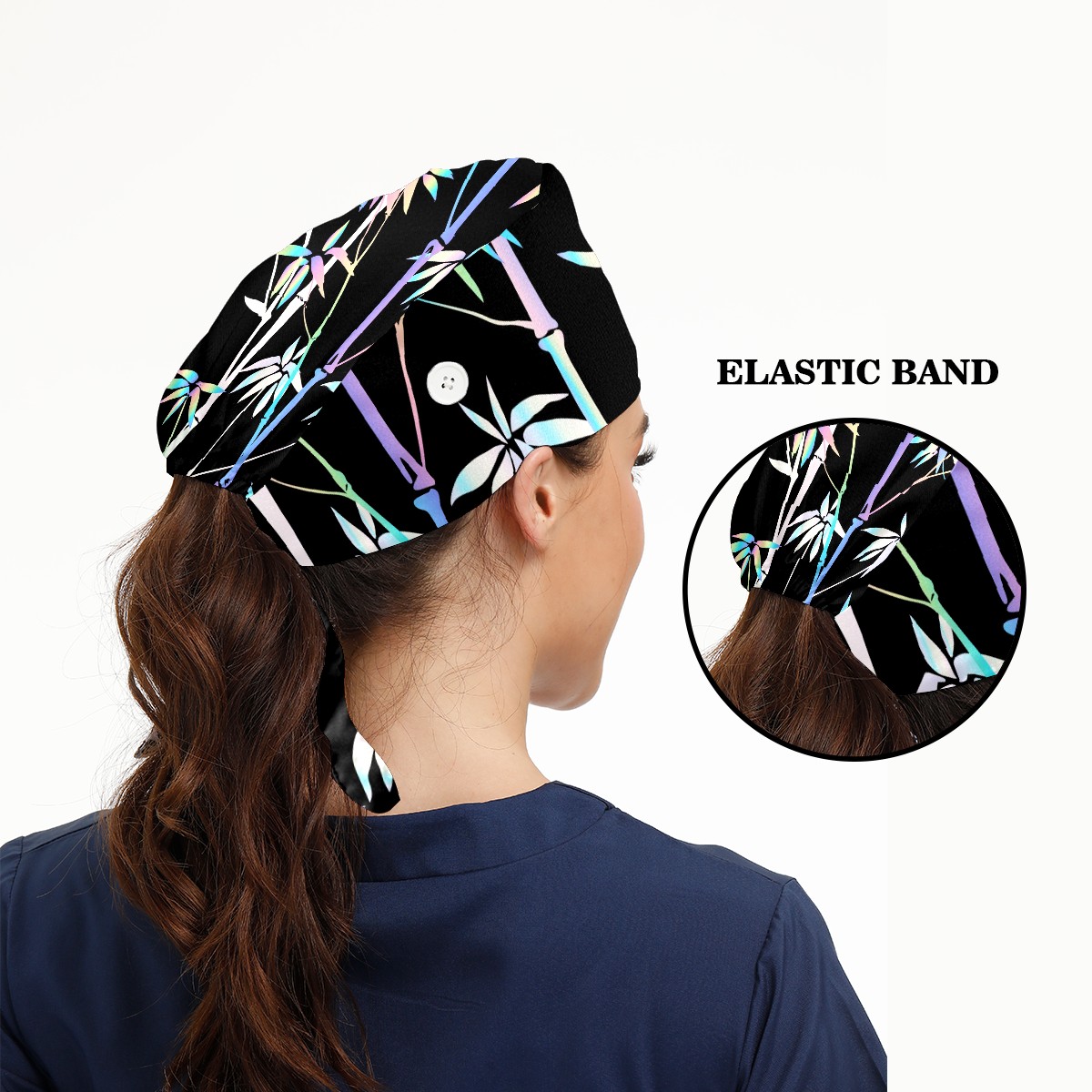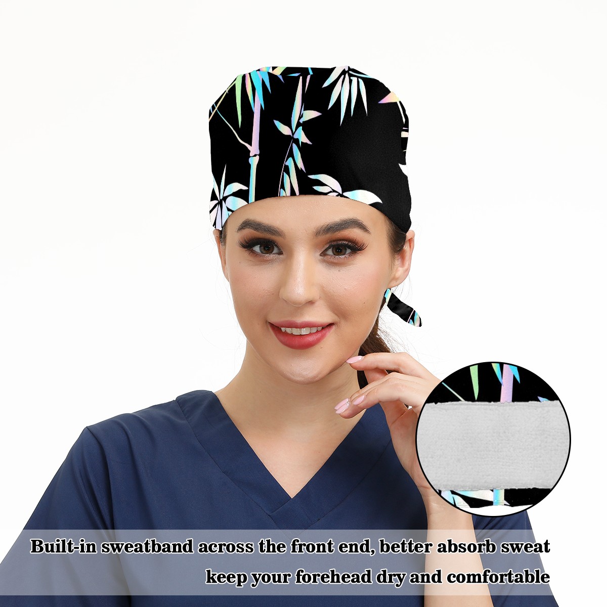 Working Caps with Button & Sweatband Satin Lined Cotton Adjustable Nurse Hats Elastic Band Scrub Cap Surgeon Hat Tropical Neon Bamboo