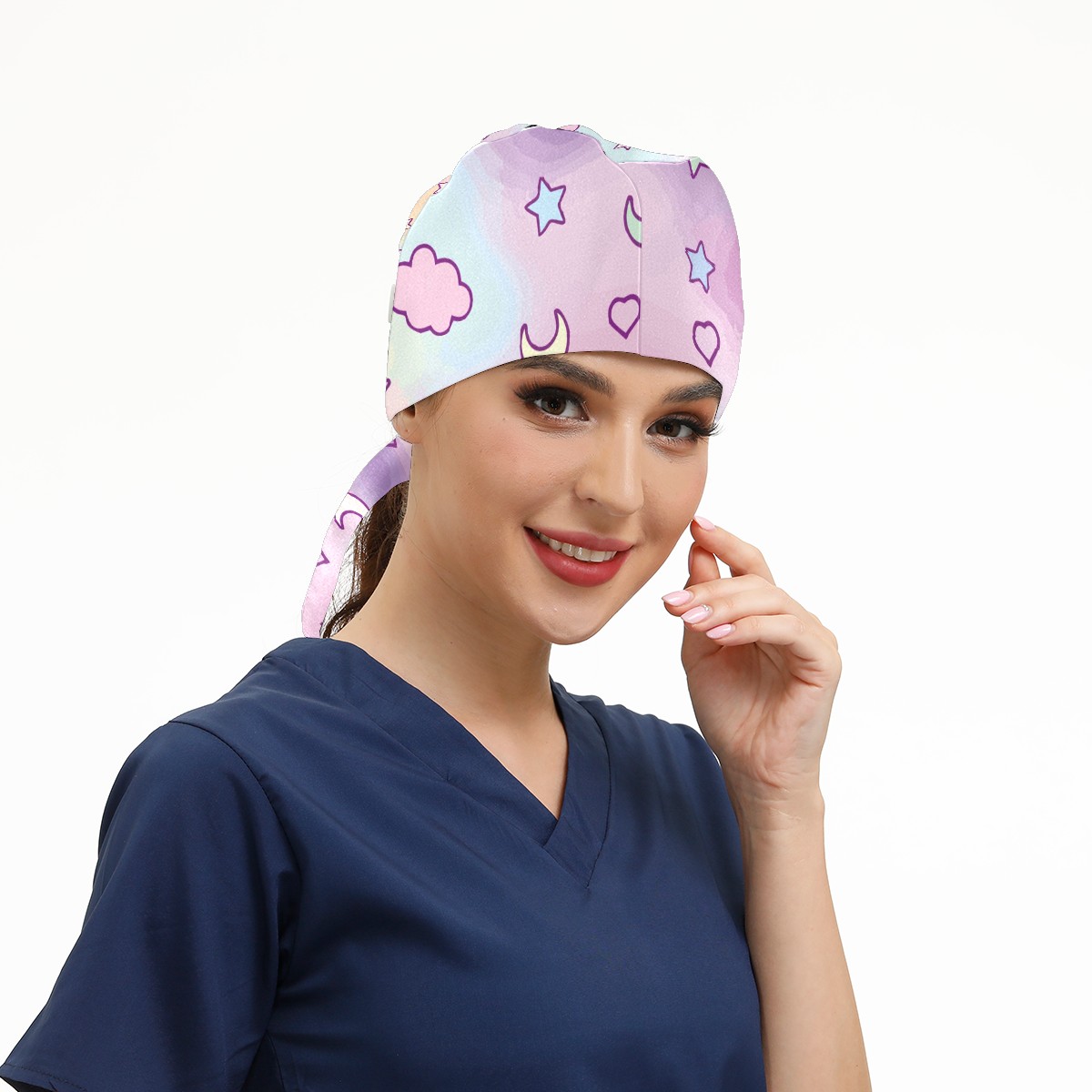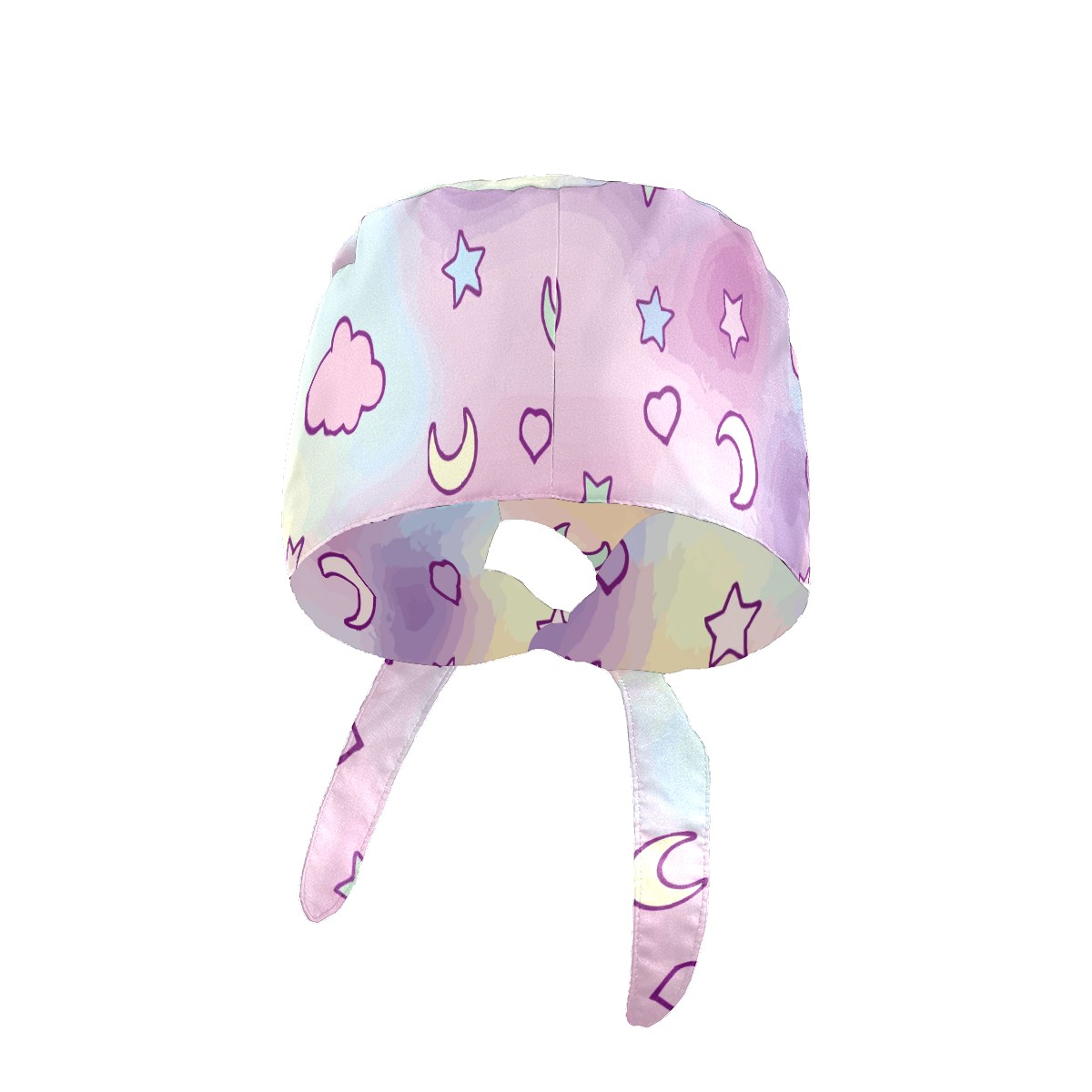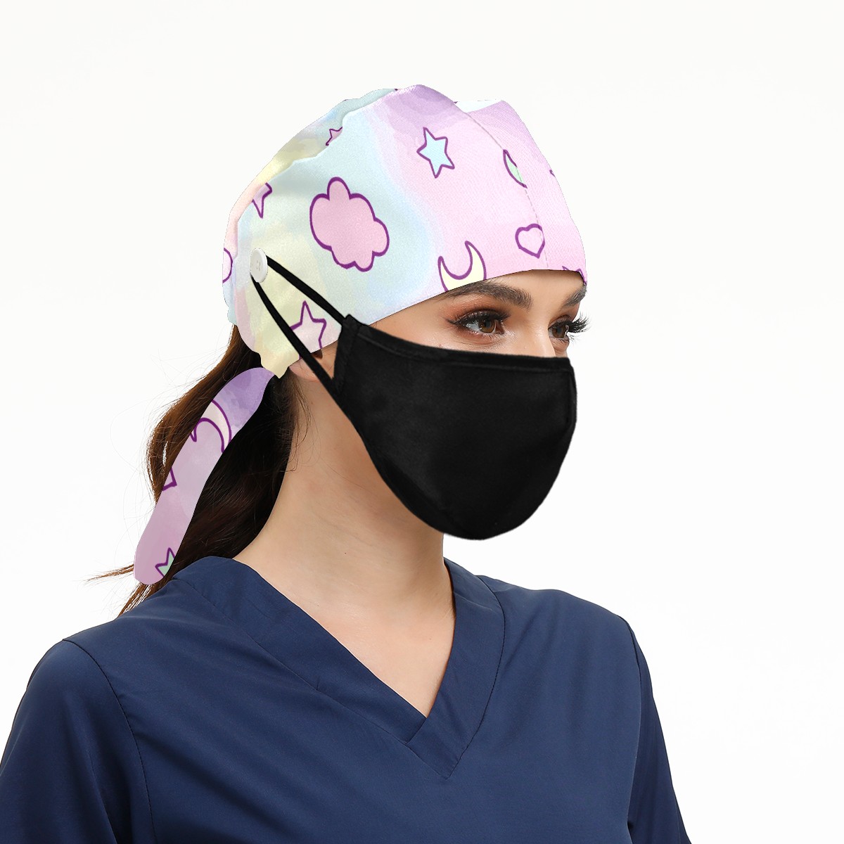 Working Caps with Button & Sweatband Satin Lined Cotton Adjustable Nurse Hats Elastic Band Scrub Cap Surgeon Hat Fantasy Cloud Moon Stars