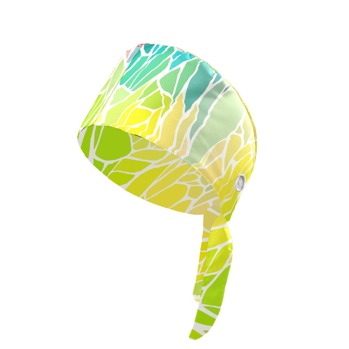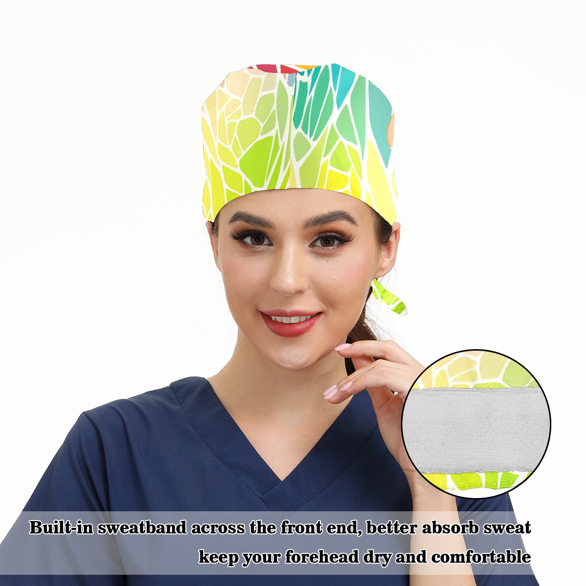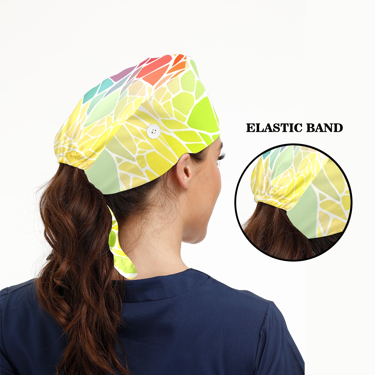 Working Caps with Button & Sweatband Satin Lined Cotton Adjustable Nurse Hats Elastic Band Scrub Cap Surgeon Hat Abstract Geometric Rainbow