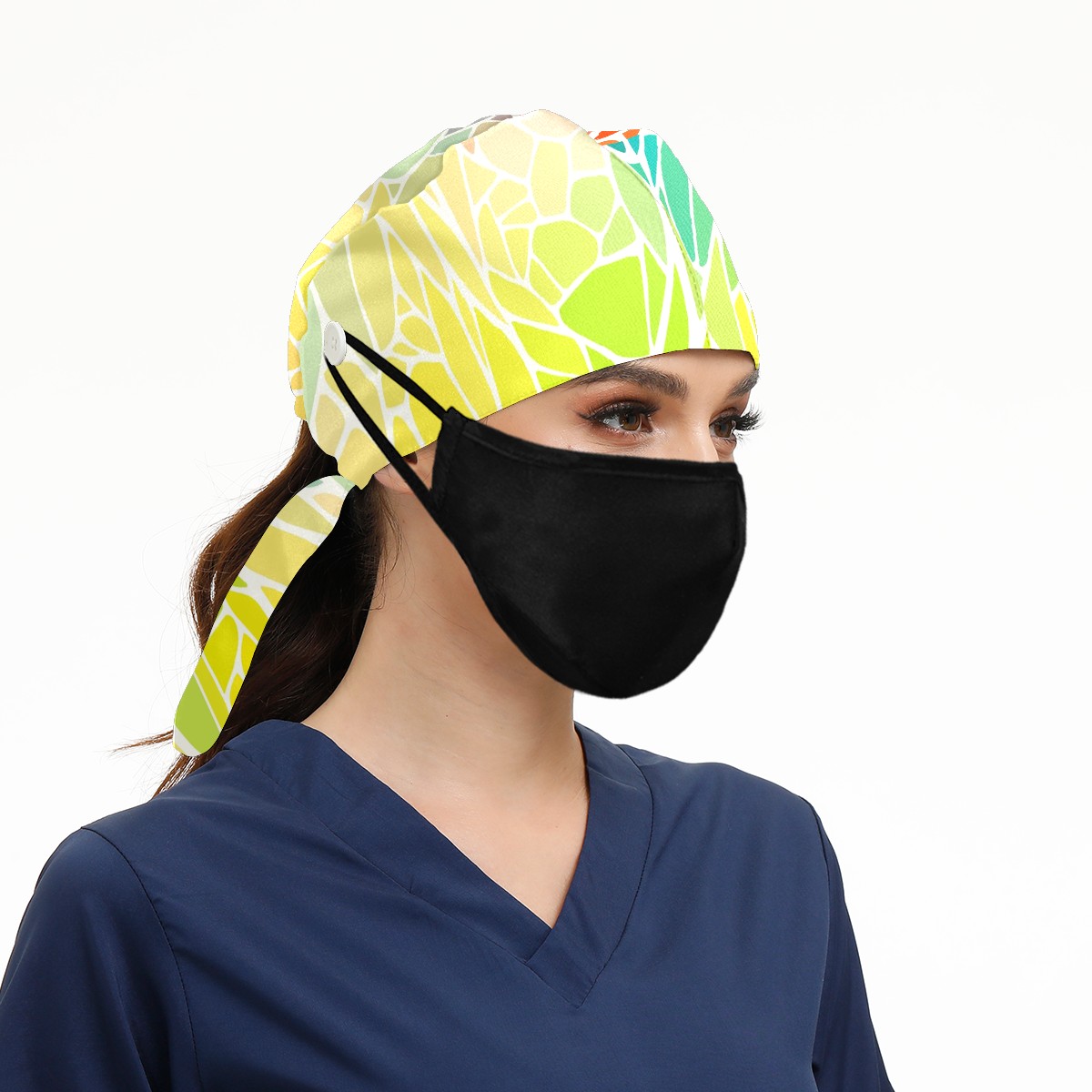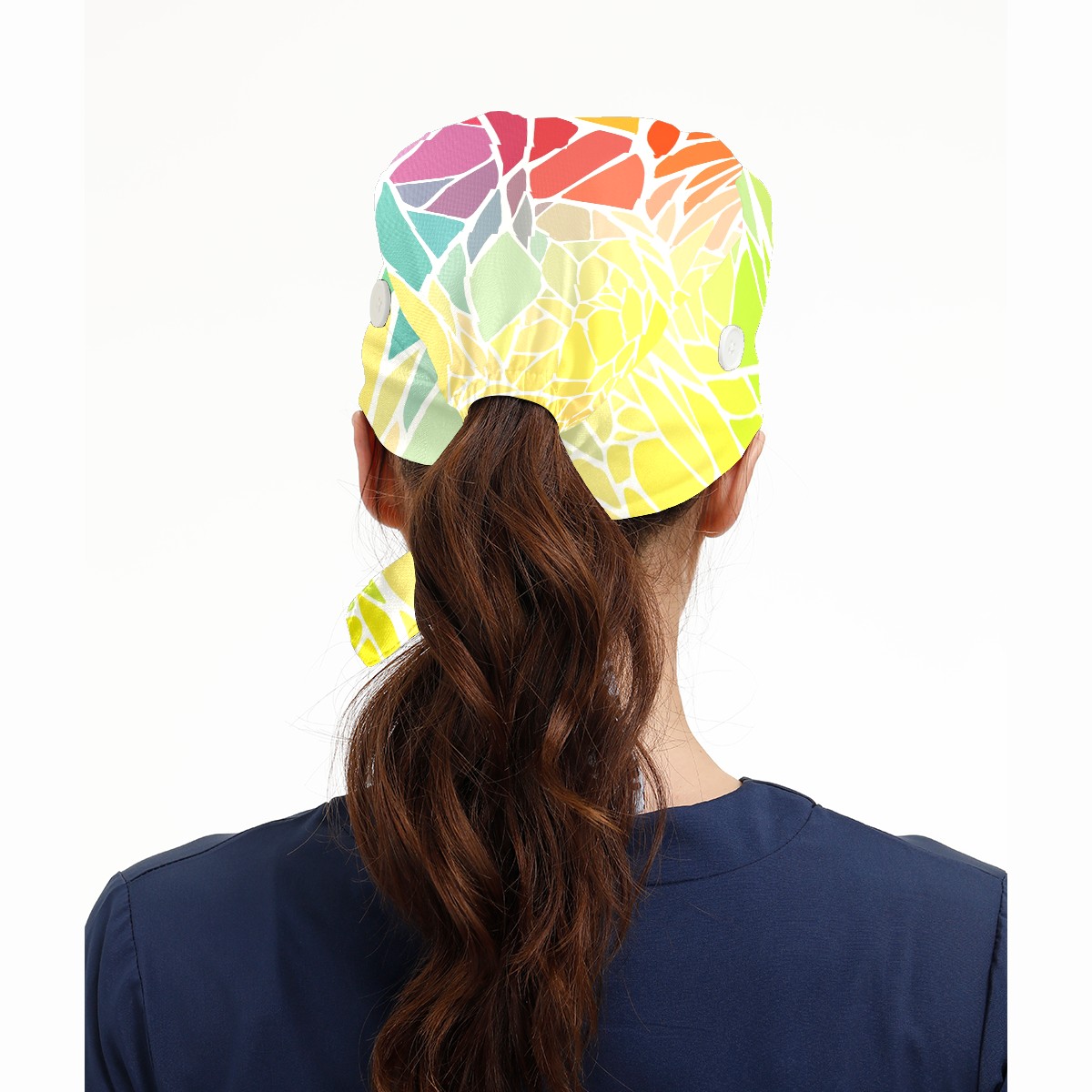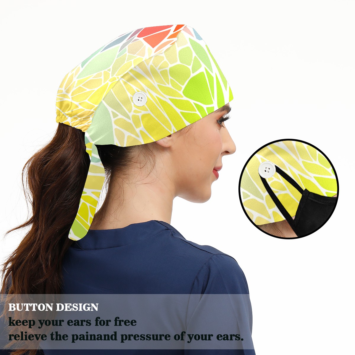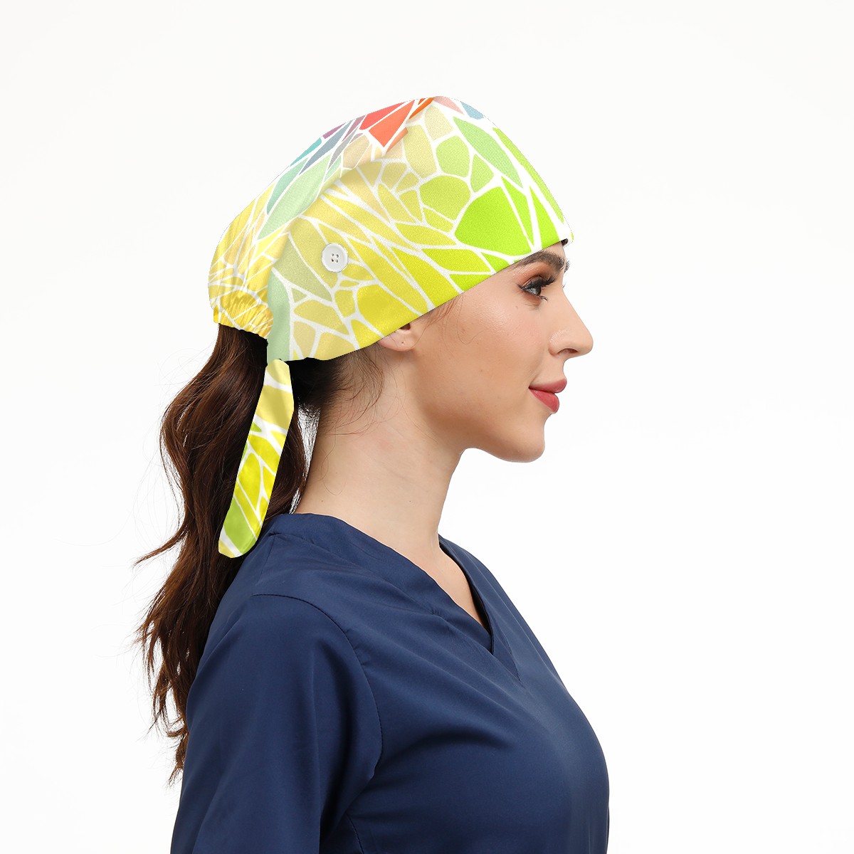 Working Caps with Button & Sweatband Satin Lined Cotton Adjustable Nurse Hats Elastic Band Scrub Cap Surgeon Hat Abstract Geometric Rainbow