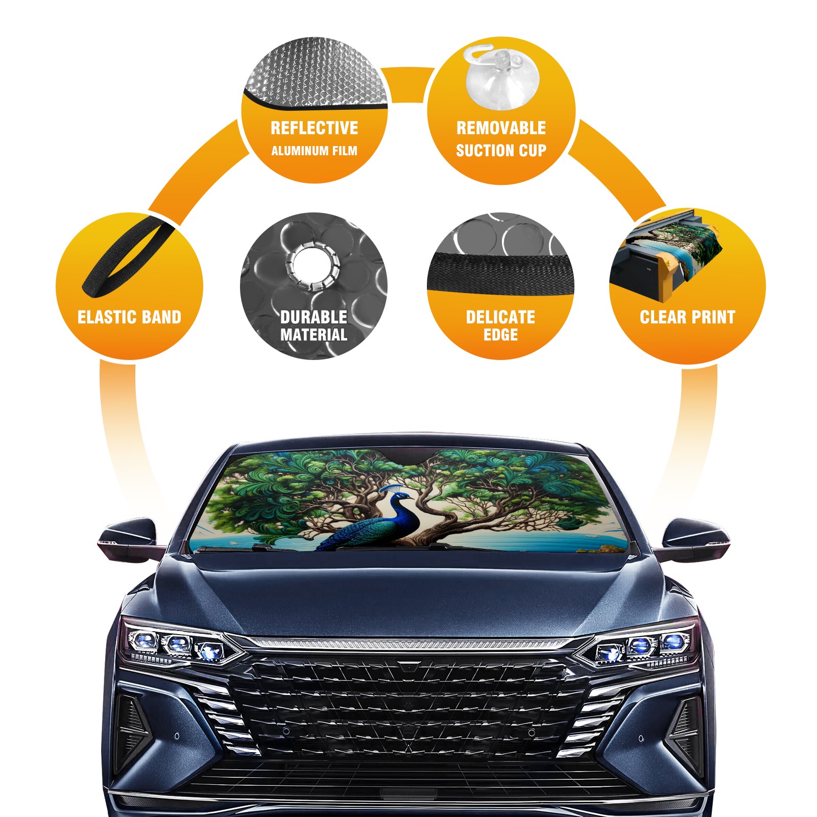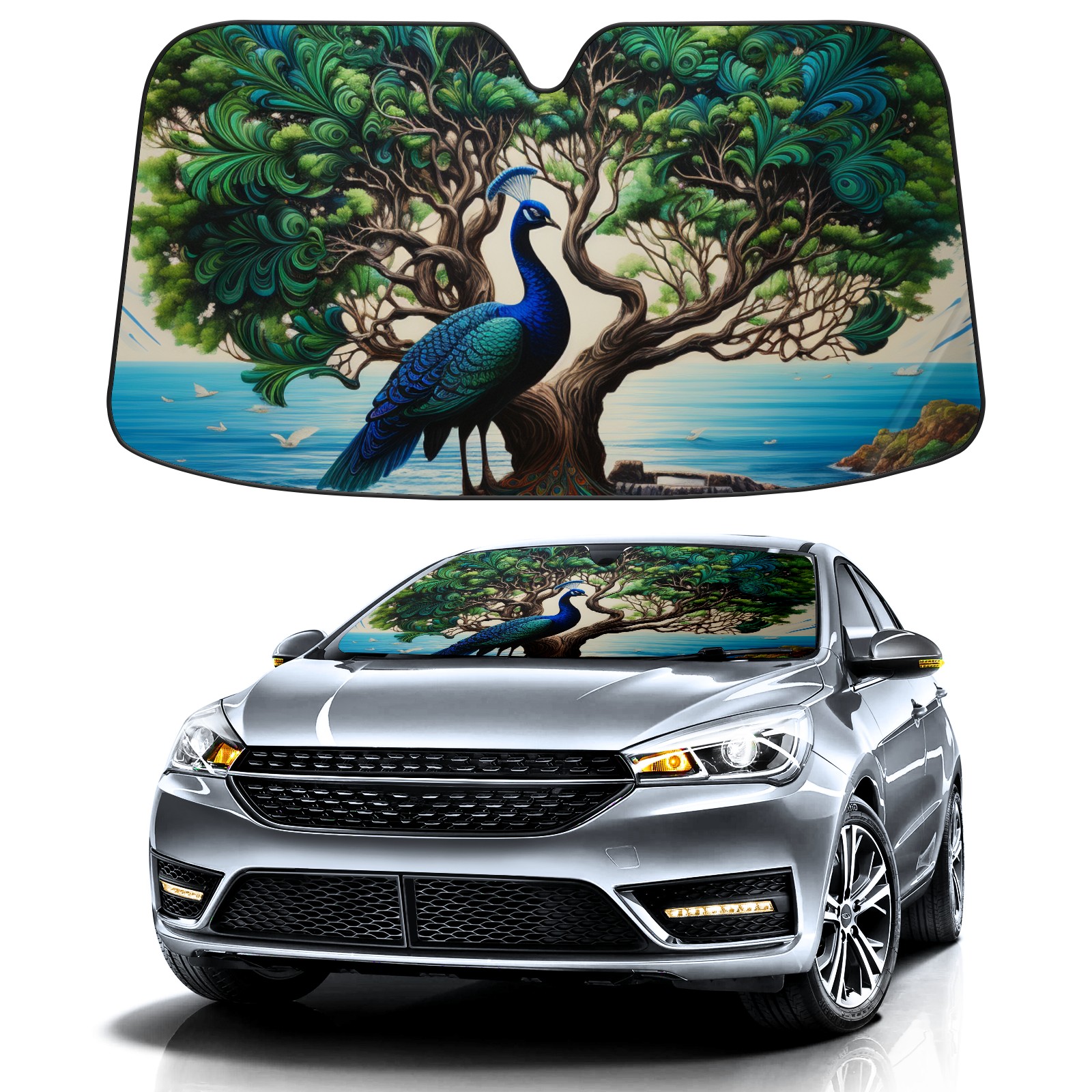 Car Windshield Sun Shade for Front Window Peacock Foldable Vehicle Windshield Car Sun Visor Covers Automotive Window Protector Car Privacy Sun Blocker