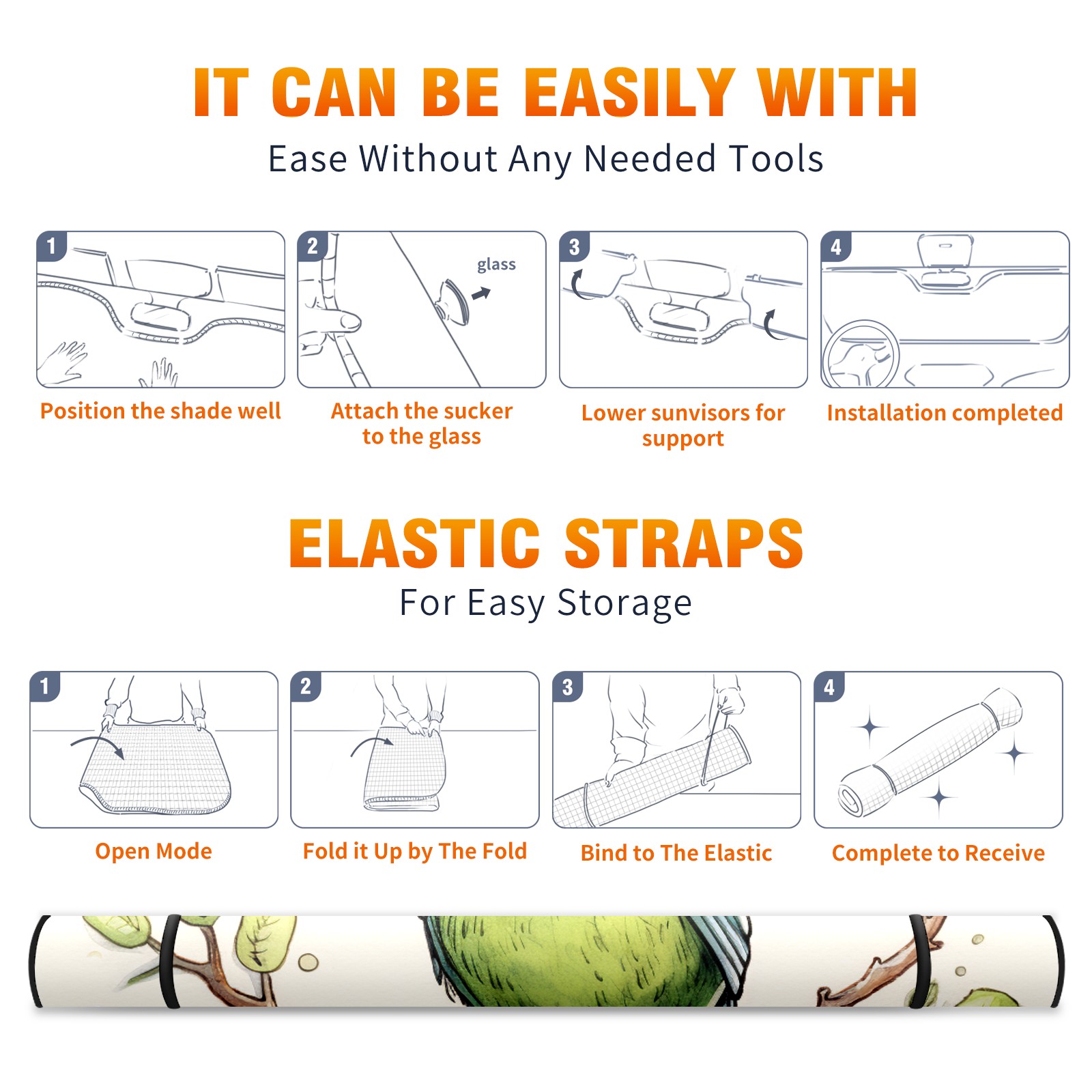 Car Windshield Sun Shade for Front Window Parrot Foldable Vehicle Windshield Car Sun Visor Covers Automotive Window Protector Car Privacy Sun Blocker