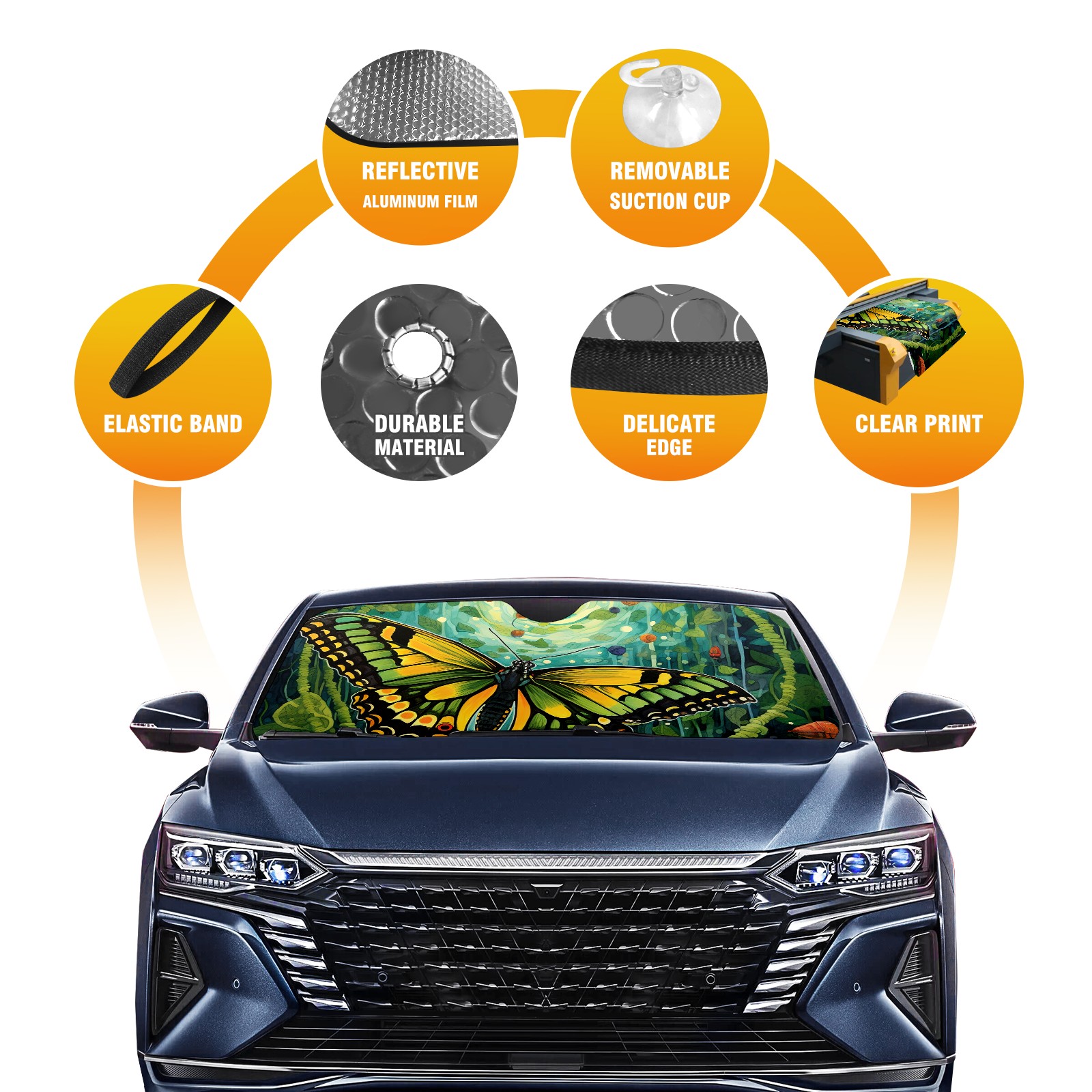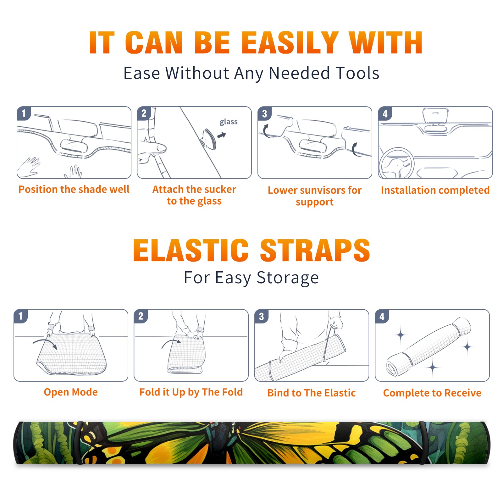 Diameter /Size 63"L x 33.5"W</b><br> Made from excellent materials which makes it sturdy and protects the car from the sun. Easy to use and pack. Makes the interior of the car cooler.You can easily stash the sunshade in the storage bag or store long term.It open and closes easy. Also the leather storage bag is durable and easy to put the umbrella back into.This windshield sunshade provides complete coverage and keeps your car interior cool under direct sun. It is easy to open and position under the windshield and around the rear-view mirror. Makes Your Car Easy To Identify, Perfect For Finding Your Car In Crowded Parking Lots And Garages.Great Choice: It Is A Great Gift For Dad, Boyfriend, Brother, Brother And Uncle, Friends, Classmates, Family And So On.<br> Notice:</b><br> Due To Difference Computer Monitors, The Color Maybe Slightly Different From Picture. As Different Measurement Methods, Measurement Data Will Float Within 2%.I Hope You Understand.<br> If You Have Any Question About The Item Please Do Not Hesitate To Contact Us Immediately And We Will Give You A Satisfactory Reply Within 24 Hours.