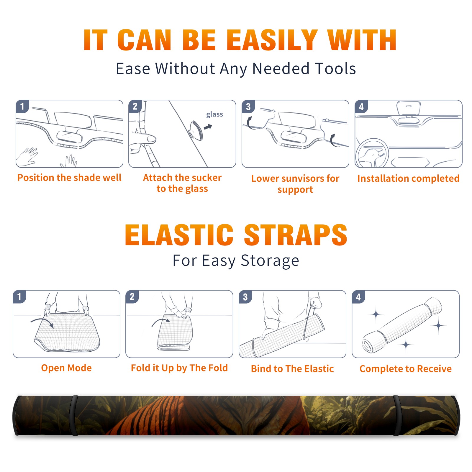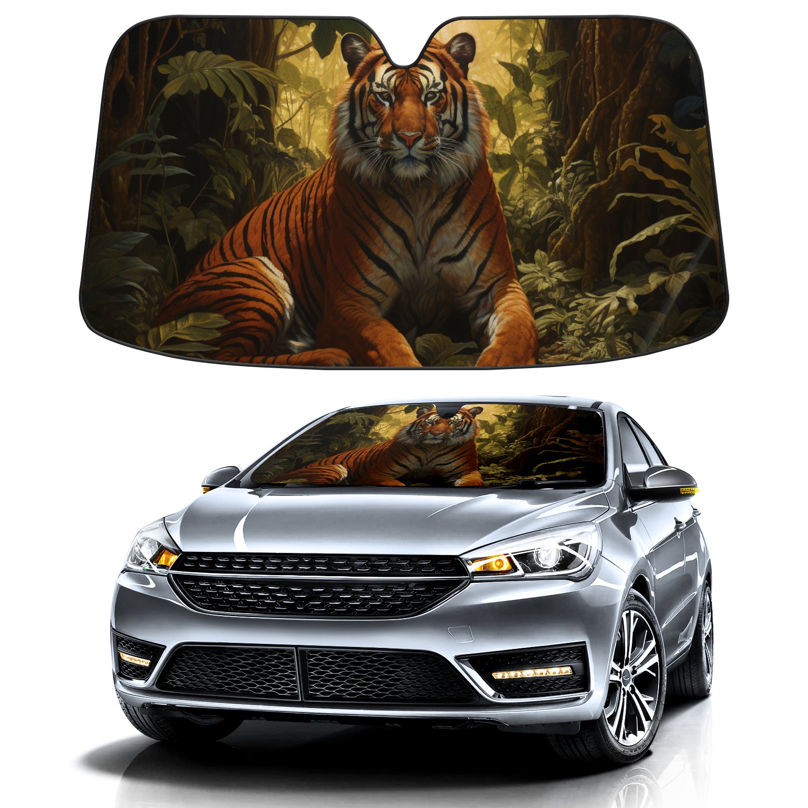 Car Windshield Sun Shade for Front Window Tiger Foldable Vehicle Windshield Car Sun Visor Covers Automotive Window Protector Car Privacy Sun Blocker