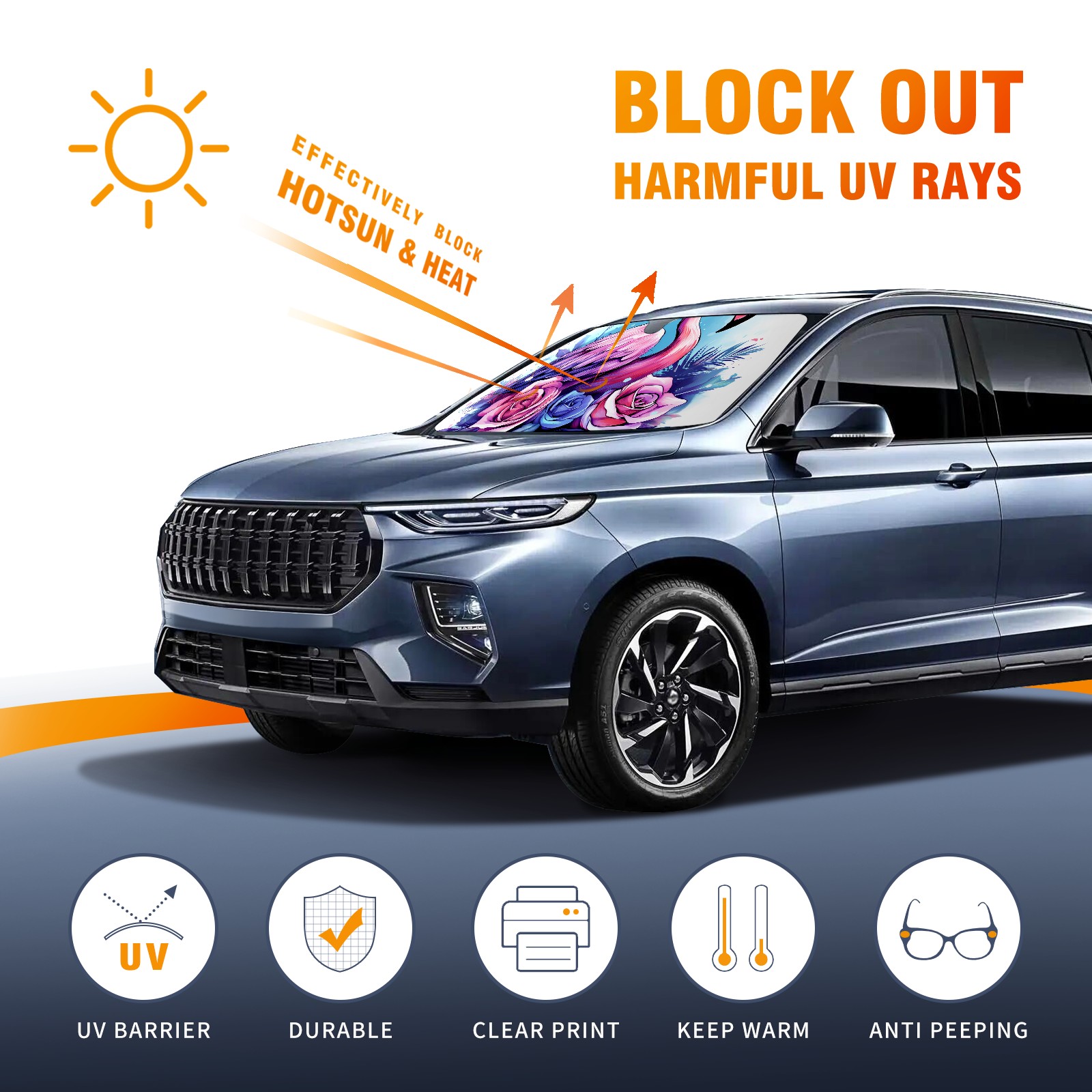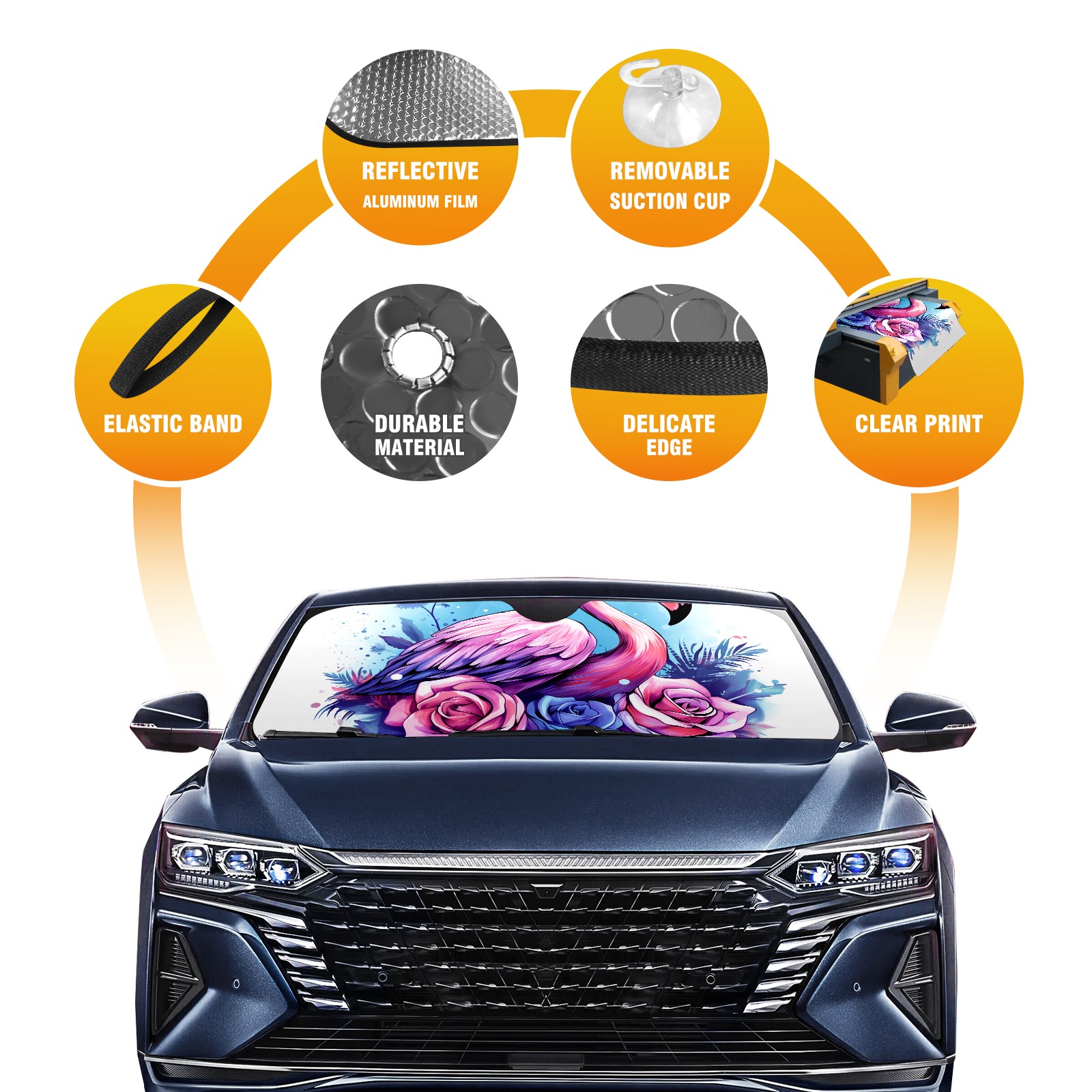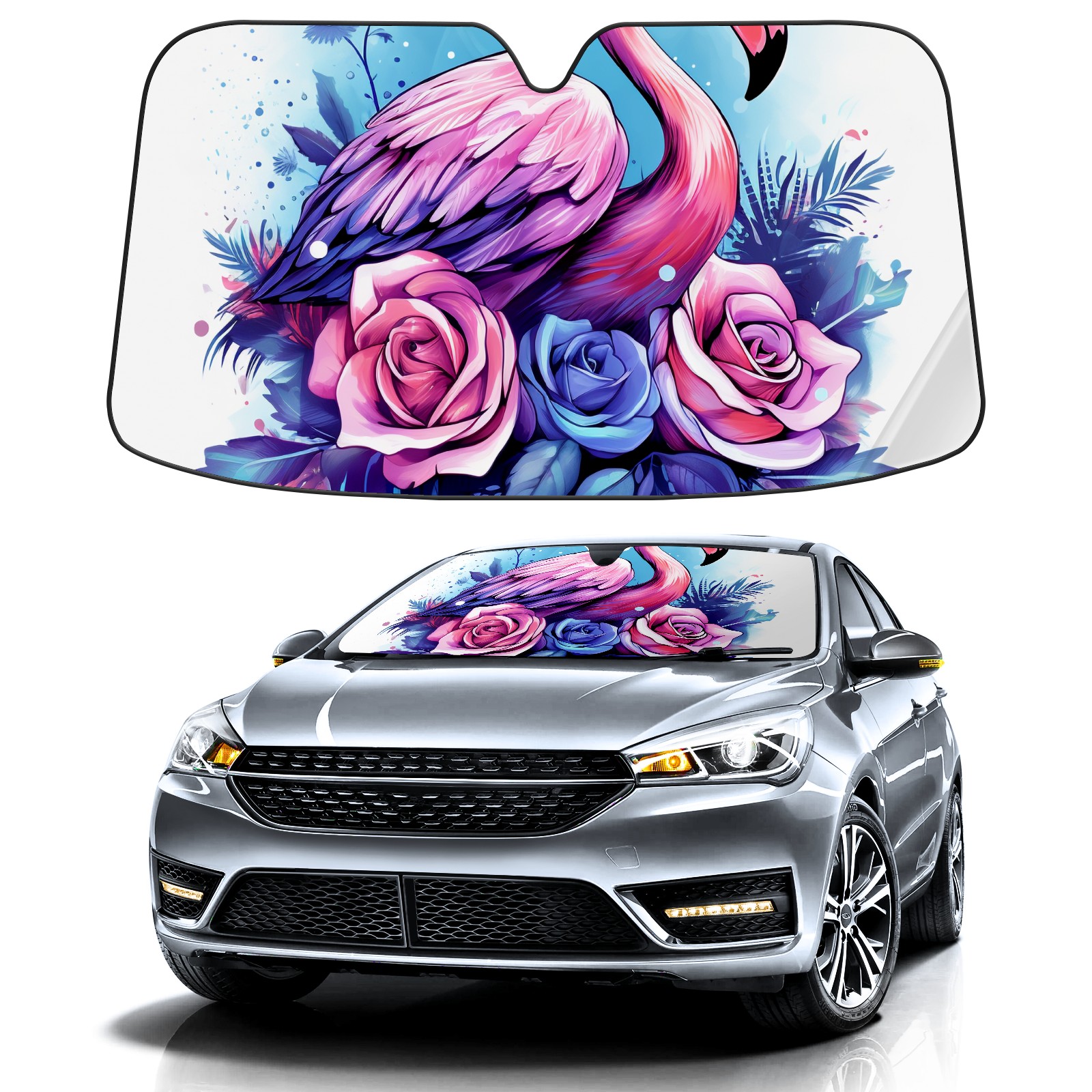 Car Windshield Sun Shade for Front Window Rose Flamingo (1) Foldable Vehicle Windshield Car Sun Visor Covers Automotive Window Protector Car Privacy Sun Blocker