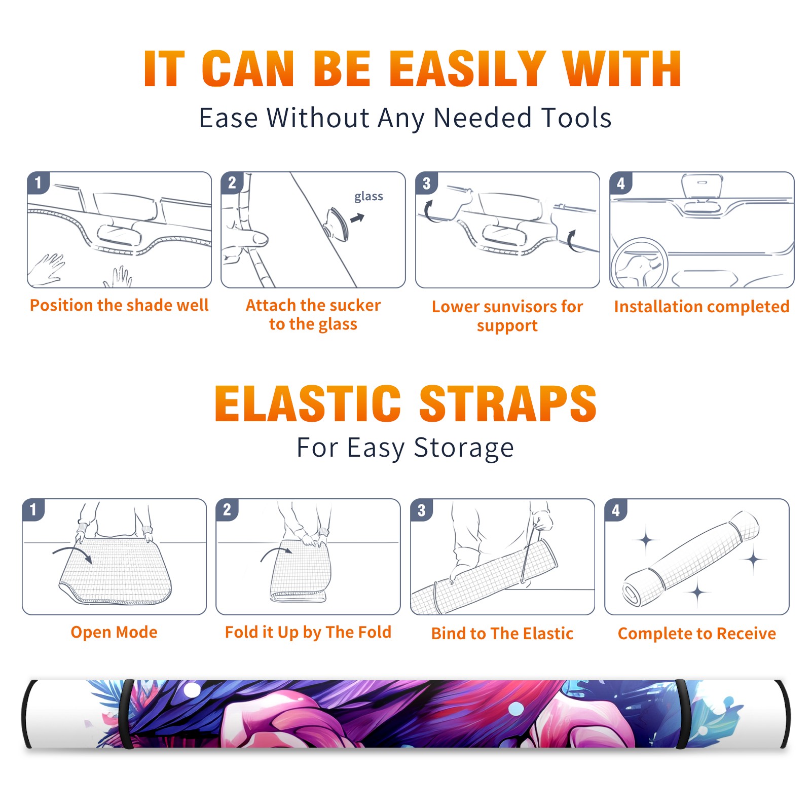 • Diameter /Size 63"L x 33.5"W</b><br> Made from excellent materials which makes it sturdy and protects the car from the sun. Easy to use and pack. Makes the interior of the car cooler.You can easily stash the sunshade in the storage bag or store long term.It open and closes easy. Also the leather storage bag is durable and easy to put the umbrella back into.This windshield sunshade provides complete coverage and keeps your car interior cool under direct sun. It is easy to open and position under the windshield and around the rear-view mirror. Makes Your Car Easy To Identify, Perfect For Finding Your Car In Crowded Parking Lots And Garages.Great Choice: It Is A Great Gift For Dad, Boyfriend, Brother, Brother And Uncle, Friends, Classmates, Family And So On.<br> Notice:</b><br> Due To Difference Computer Monitors, The Color Maybe Slightly Different From Picture. As Different Measurement Methods, Measurement Data Will Float Within 2%.I Hope You Understand.<br> If You Have Any Question About The Item Please Do Not Hesitate To Contact Us Immediately And We Will Give You A Satisfactory Reply Within 24 Hours.