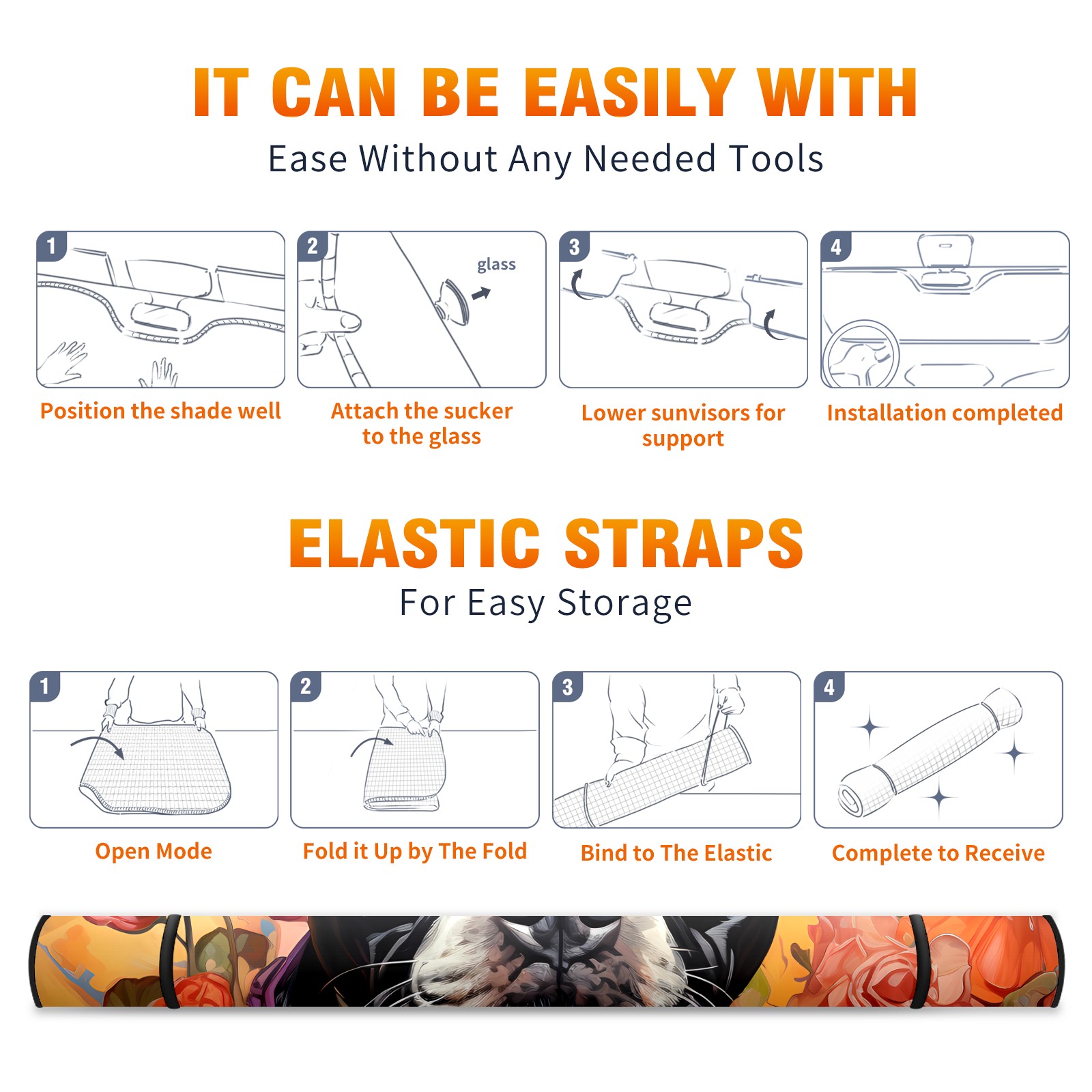 Diameter /Size 63"L x 33.5"W</b><br> Made from excellent materials which makes it sturdy and protects the car from the sun. Easy to use and pack. Makes the interior of the car cooler.You can easily stash the sunshade in the storage bag or store long term.It open and closes easy. Also the leather storage bag is durable and easy to put the umbrella back into.This windshield sunshade provides complete coverage and keeps your car interior cool under direct sun. It is easy to open and position under the windshield and around the rear-view mirror. Makes Your Car Easy To Identify, Perfect For Finding Your Car In Crowded Parking Lots And Garages.Great Choice: It Is A Great Gift For Dad, Boyfriend, Brother, Brother And Uncle, Friends, Classmates, Family And So On.<br> Notice:</b><br> Due To Difference Computer Monitors, The Color Maybe Slightly Different From Picture. As Different Measurement Methods, Measurement Data Will Float Within 2%.I Hope You Understand.<br> If You Have Any Question About The Item Please Do Not Hesitate To Contact Us Immediately And We Will Give You A Satisfactory Reply Within 24 Hours.