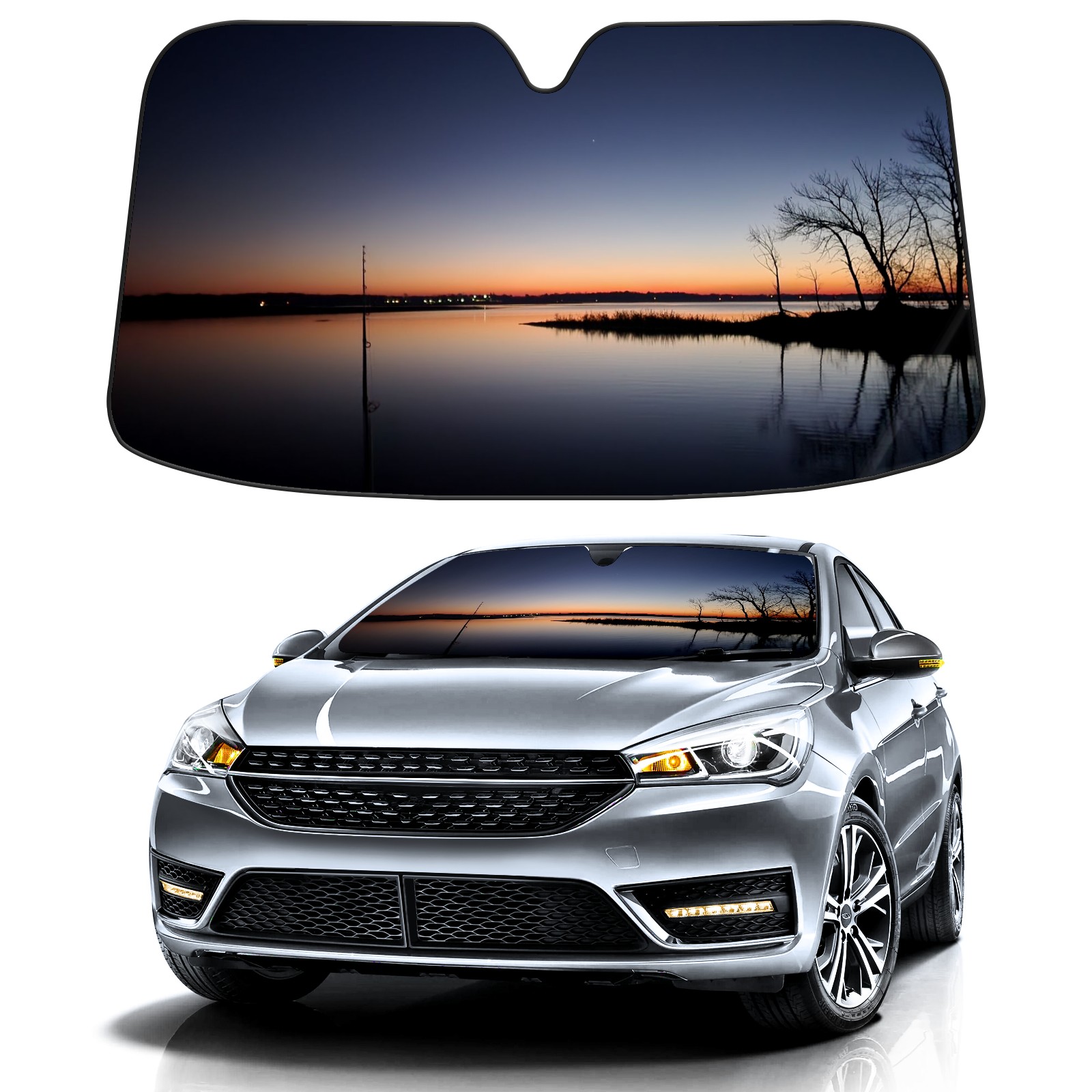 Diameter /Size 63"L x 33.5"W</b><br> Made from excellent materials which makes it sturdy and protects the car from the sun. Easy to use and pack. Makes the interior of the car cooler.You can easily stash the sunshade in the storage bag or store long term.It open and closes easy. Also the leather storage bag is durable and easy to put the umbrella back into.This windshield sunshade provides complete coverage and keeps your car interior cool under direct sun. It is easy to open and position under the windshield and around the rear-view mirror. Makes Your Car Easy To Identify, Perfect For Finding Your Car In Crowded Parking Lots And Garages.Great Choice: It Is A Great Gift For Dad, Boyfriend, Brother, Brother And Uncle, Friends, Classmates, Family And So On.<br> Notice:</b><br> Due To Difference Computer Monitors, The Color Maybe Slightly Different From Picture. As Different Measurement Methods, Measurement Data Will Float Within 2%.I Hope You Understand.<br> If You Have Any Question About The Item Please Do Not Hesitate To Contact Us Immediately And We Will Give You A Satisfactory Reply Within 24 Hours.