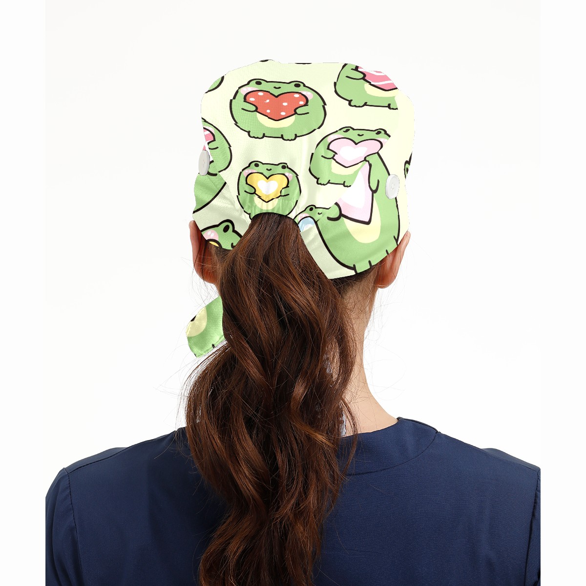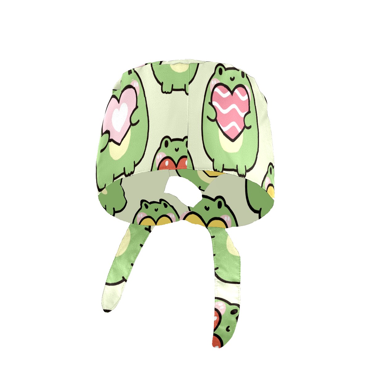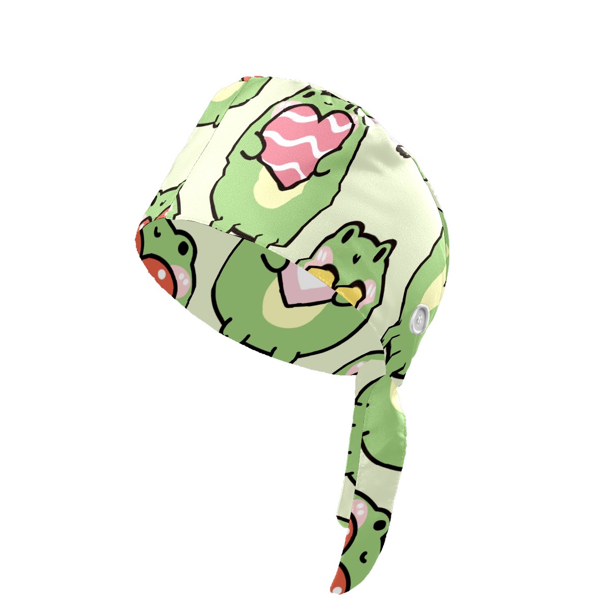 Working Caps with Button & Sweatband Satin Lined Cotton Adjustable Nurse Hats Elastic Band Scrub Cap Surgeon Hat Cute Chubby Frog Hold Heart On Green Background