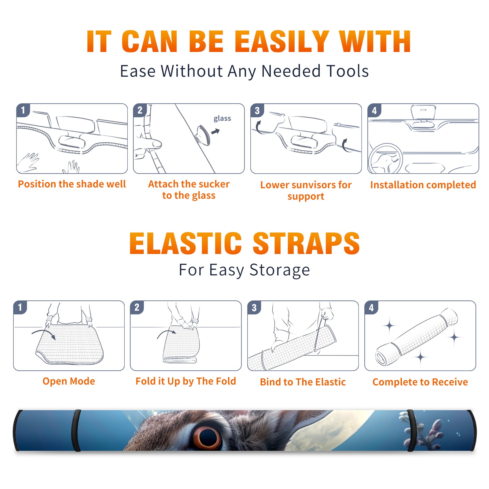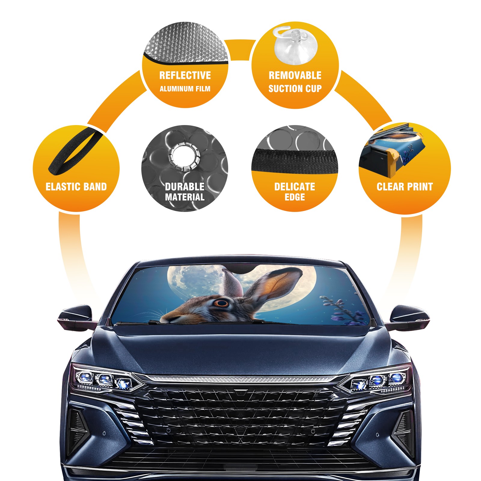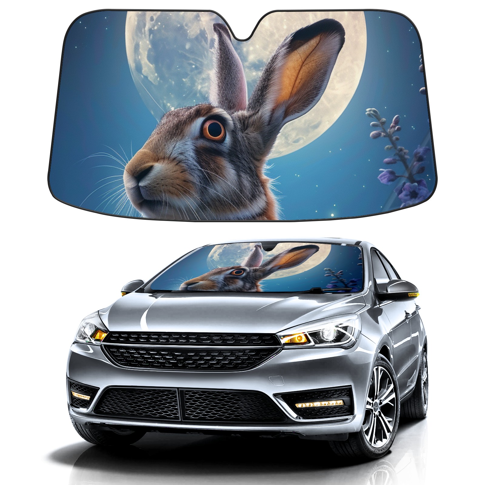 Car Windshield Sun Shade for Front Window Rabbit Foldable Vehicle Windshield Car Sun Visor Covers Automotive Window Protector Car Privacy Sun Blocker