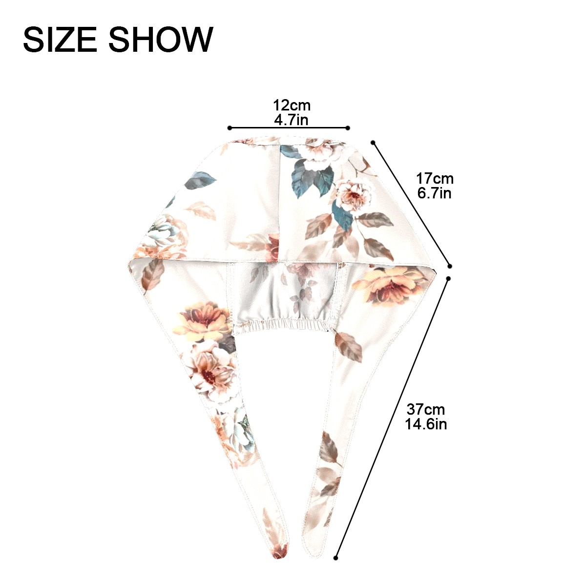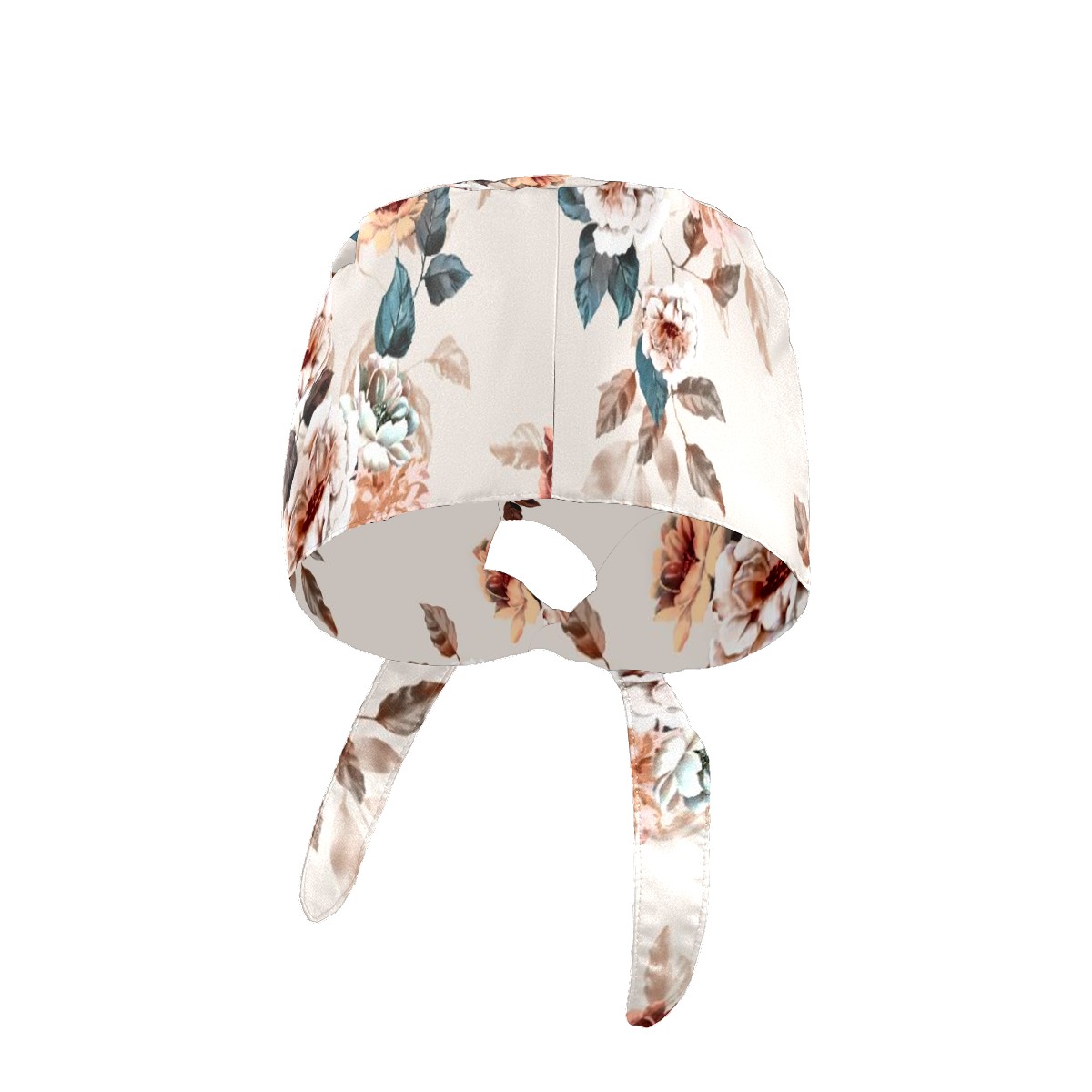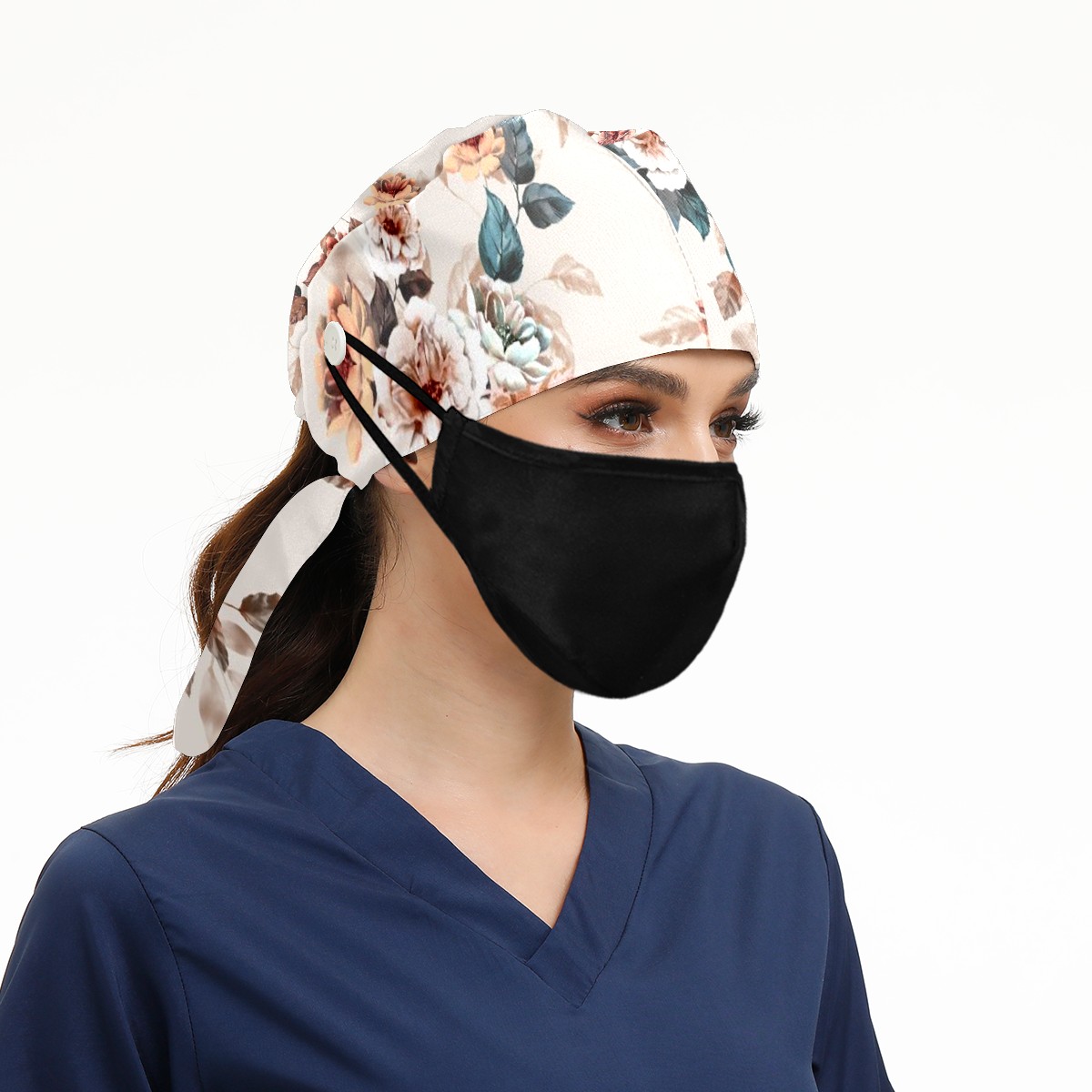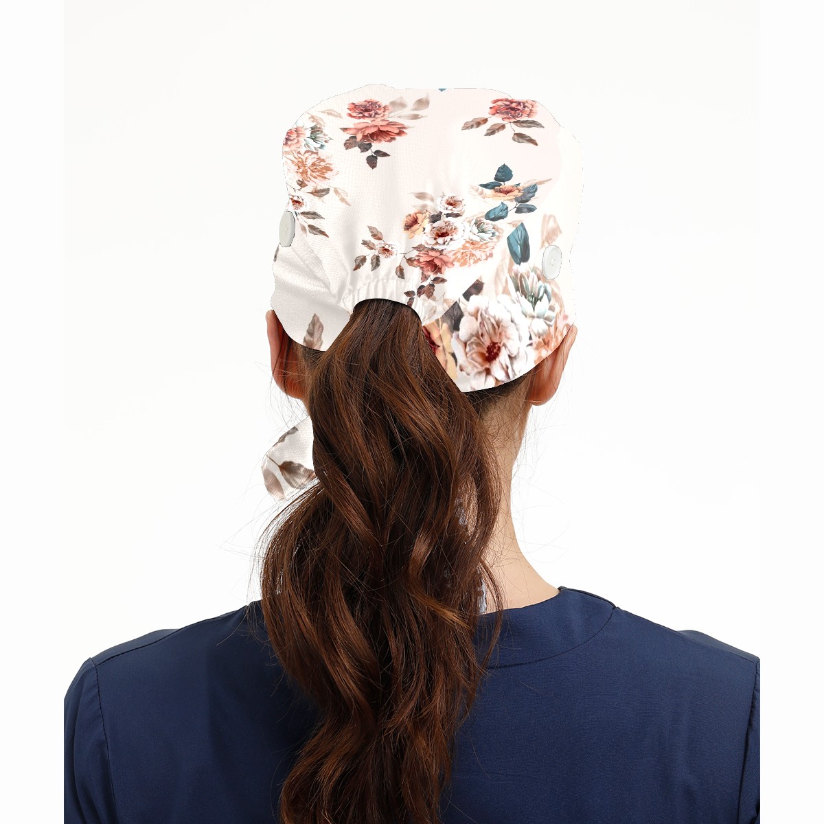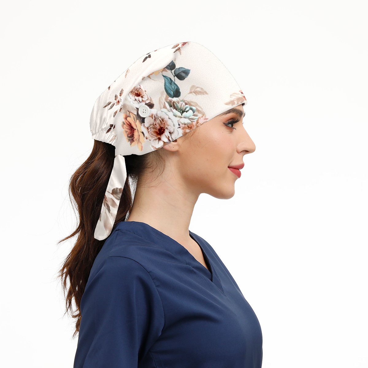 Working Caps with Button & Sweatband Satin Lined Cotton Adjustable Nurse Hats Elastic Band Scrub Cap Surgeon Hat Watercolor Flower Pattern