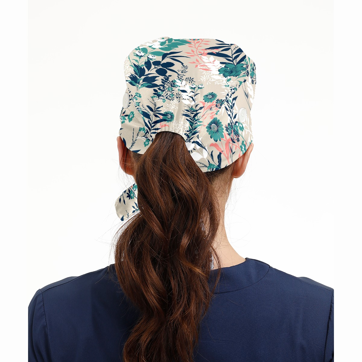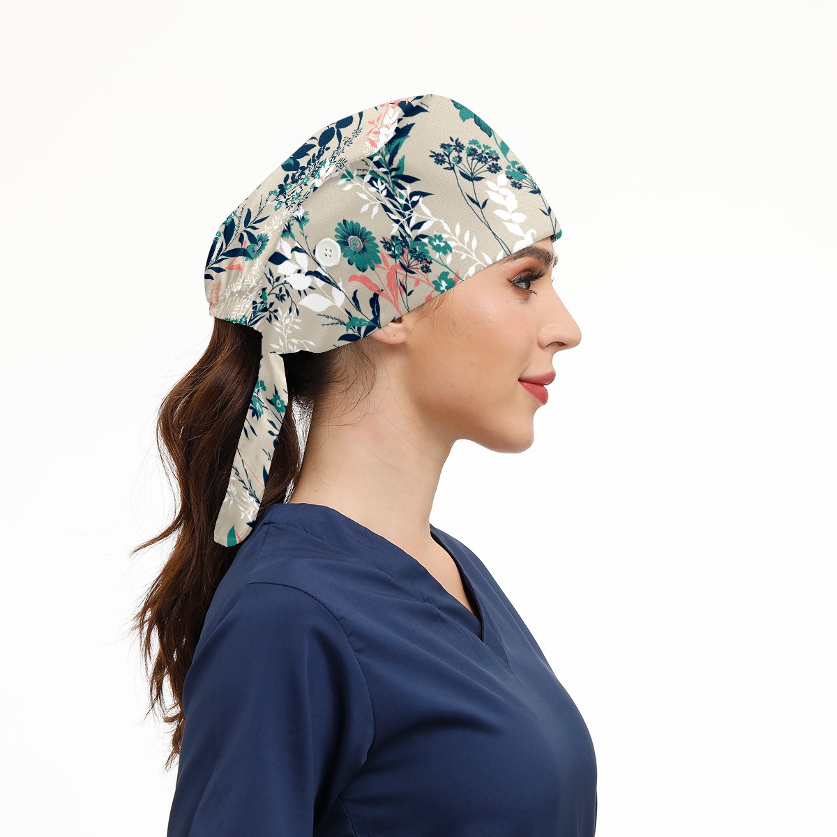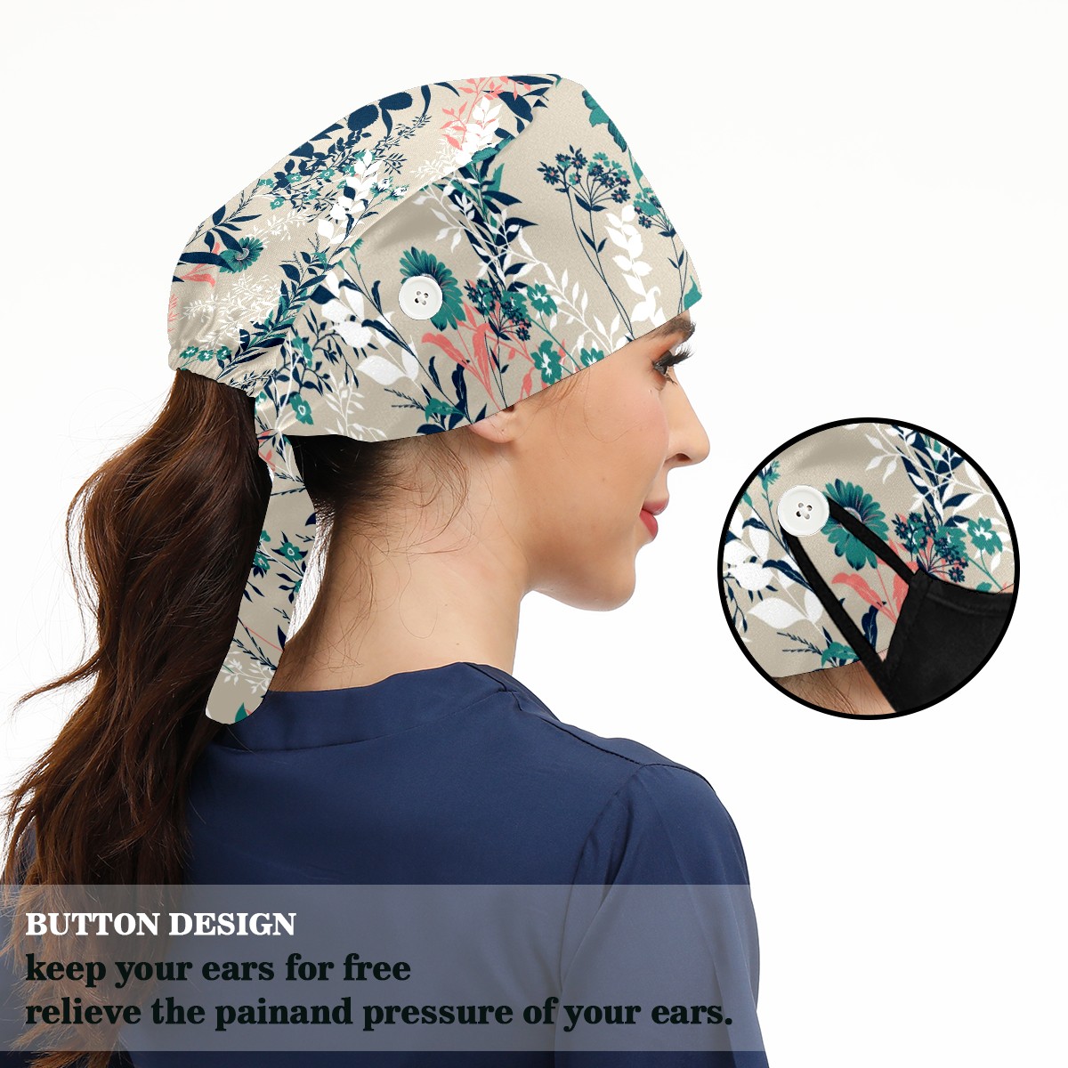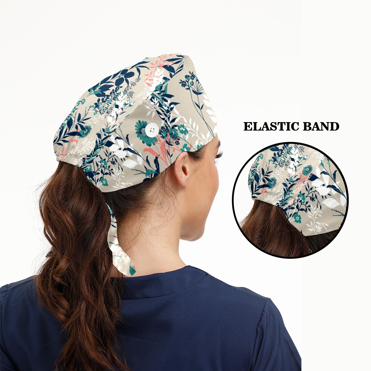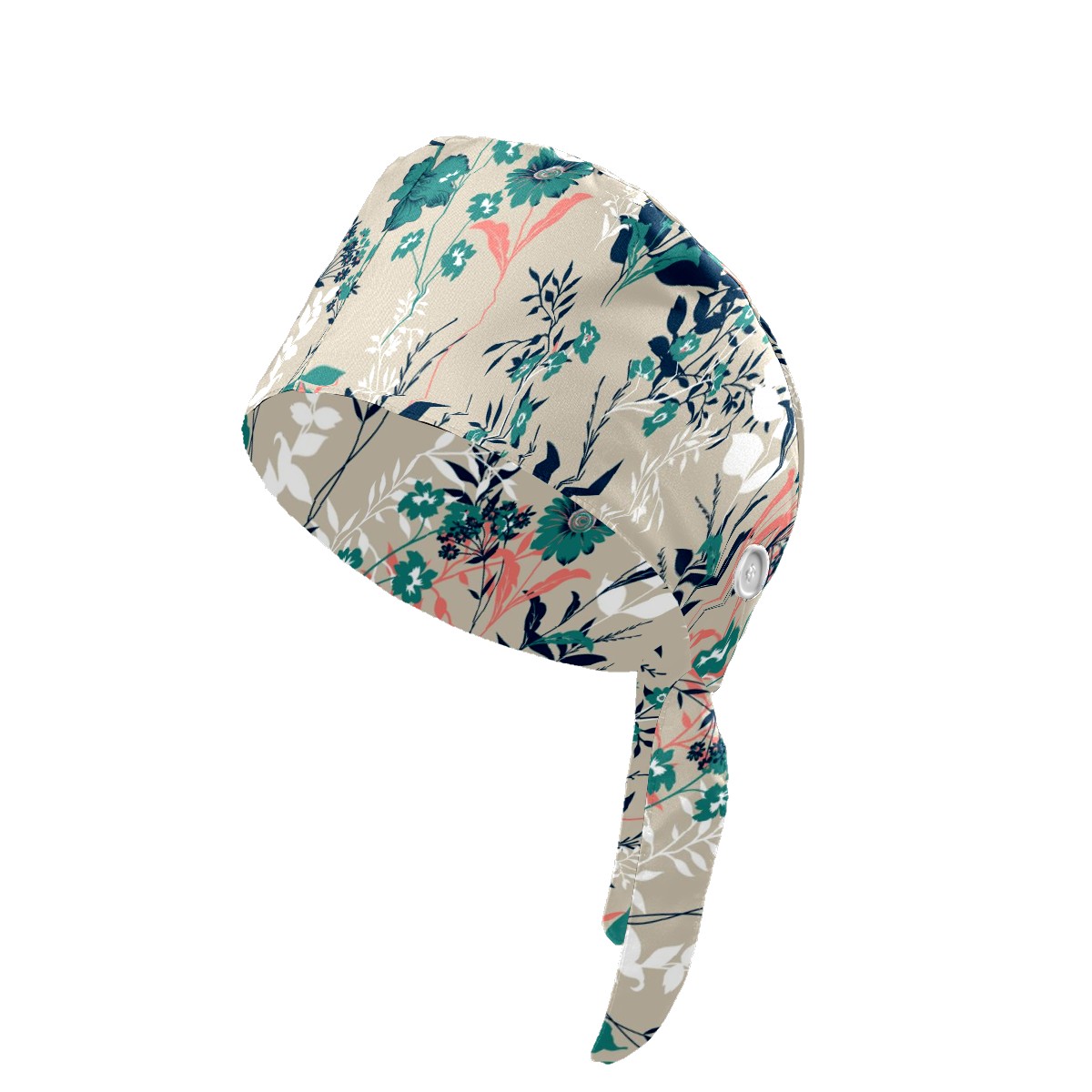 Working Caps with Button & Sweatband Satin Lined Cotton Adjustable Nurse Hats Elastic Band Scrub Cap Surgeon Hat Vintage Red And Green Flowers