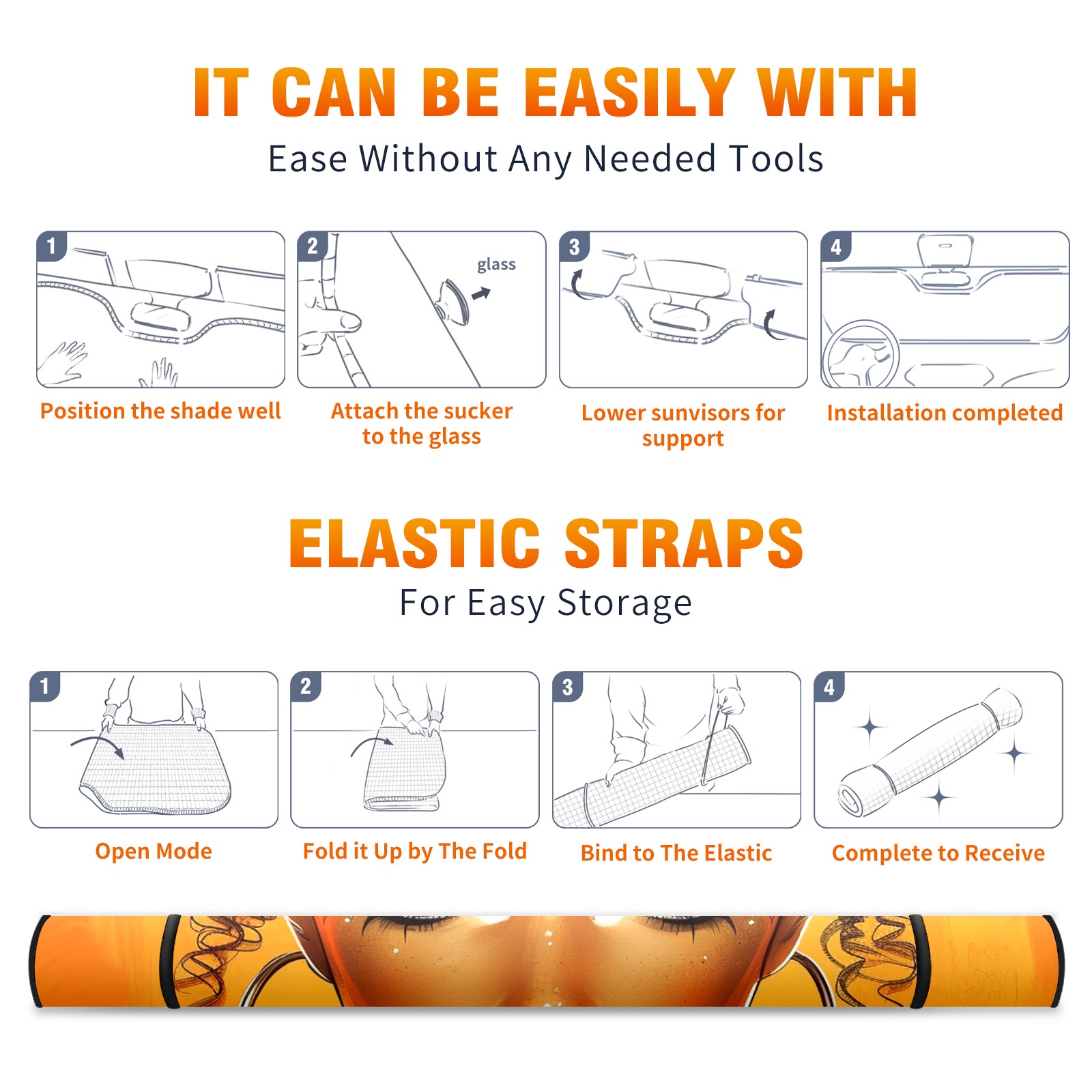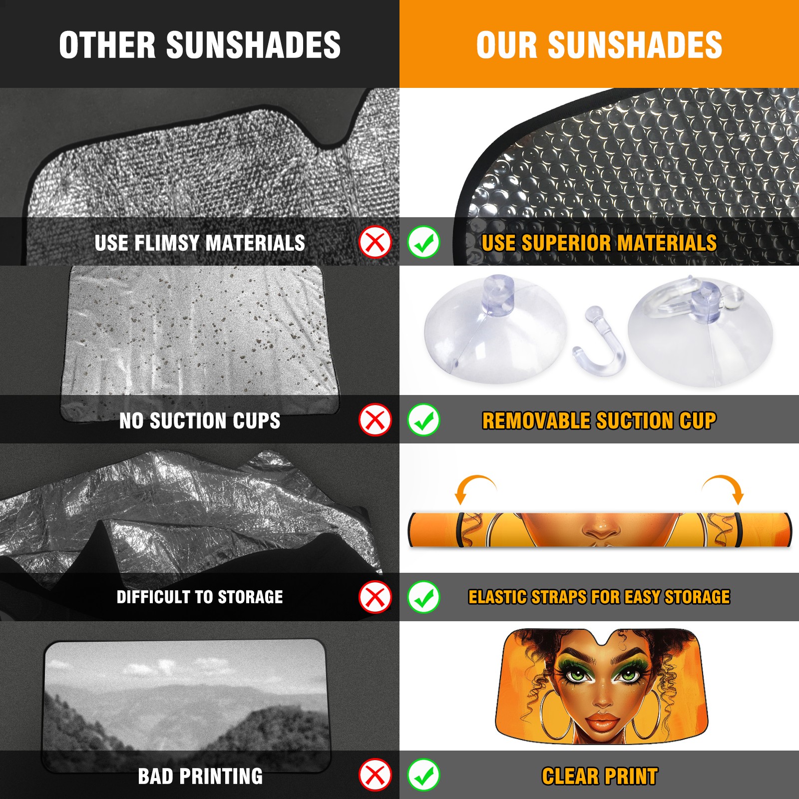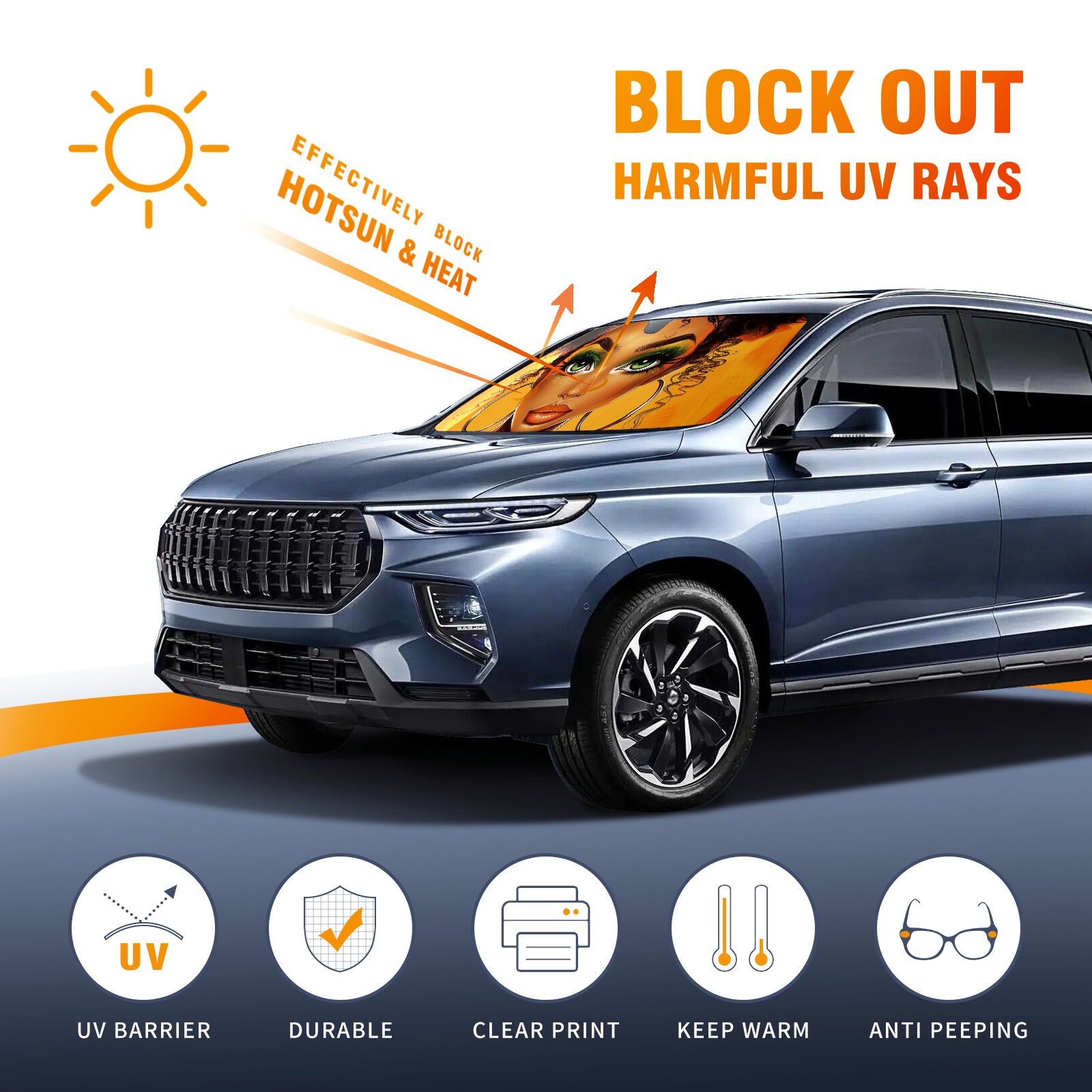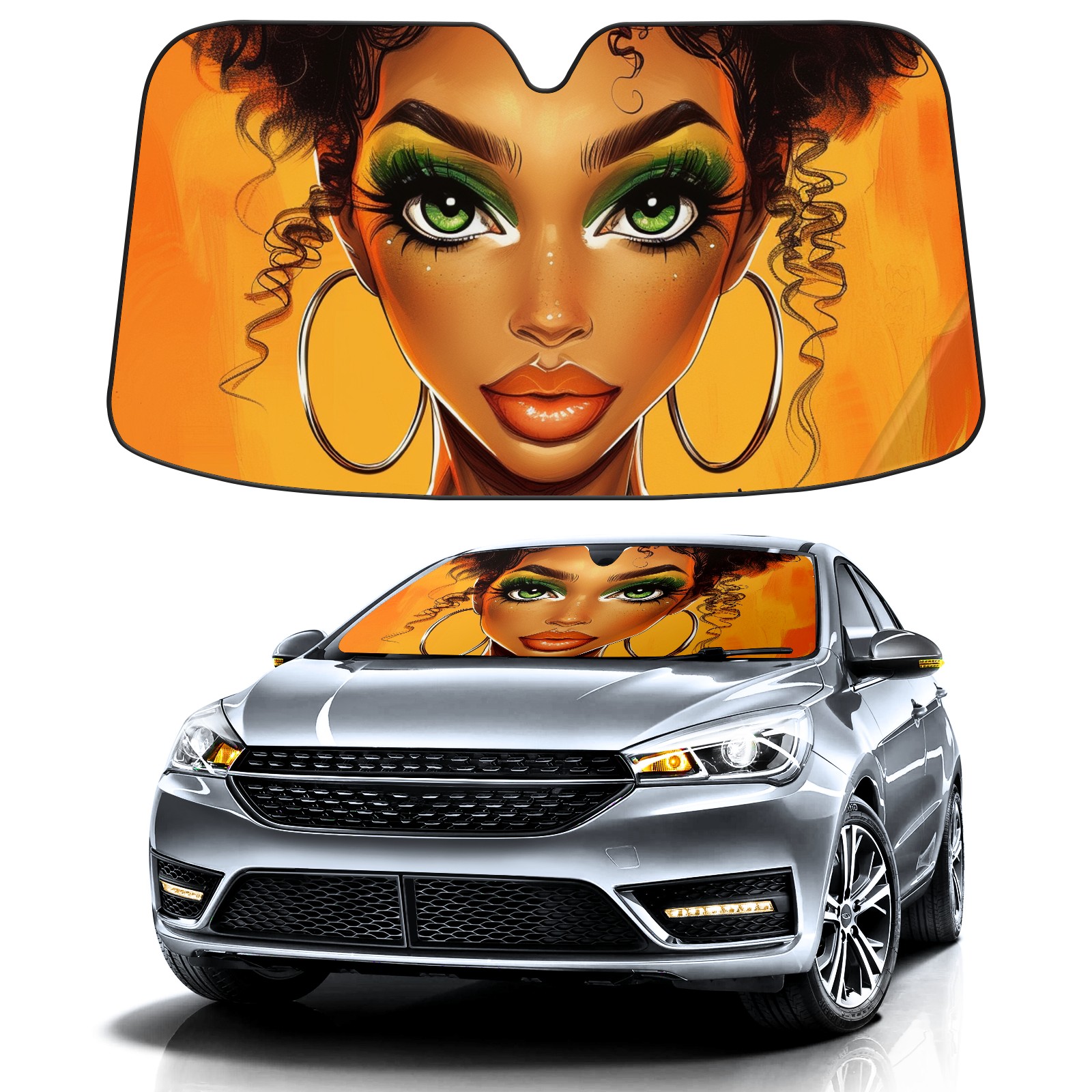 Car Windshield Sun Shade for Front Window African Girls Foldable Vehicle Windshield Car Sun Visor Covers Automotive Window Protector Car Privacy Sun Blocker