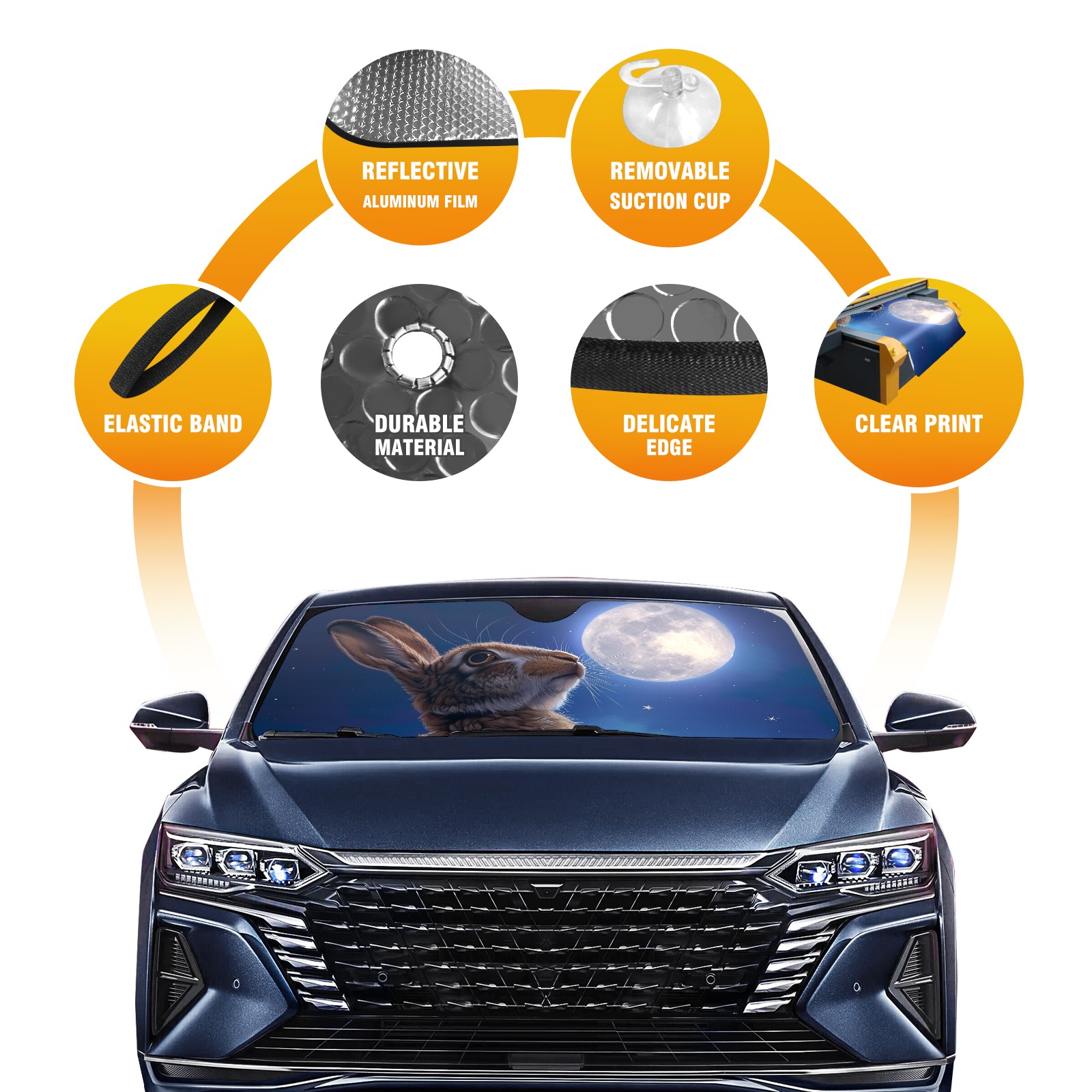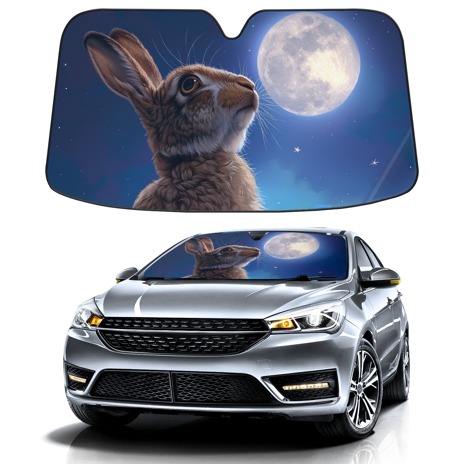 Car Windshield Sun Shade for Front Window Rabbit Foldable Vehicle Windshield Car Sun Visor Covers Automotive Window Protector Car Privacy Sun Blocker