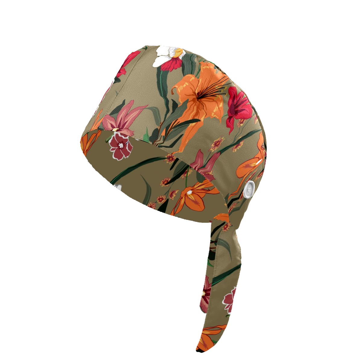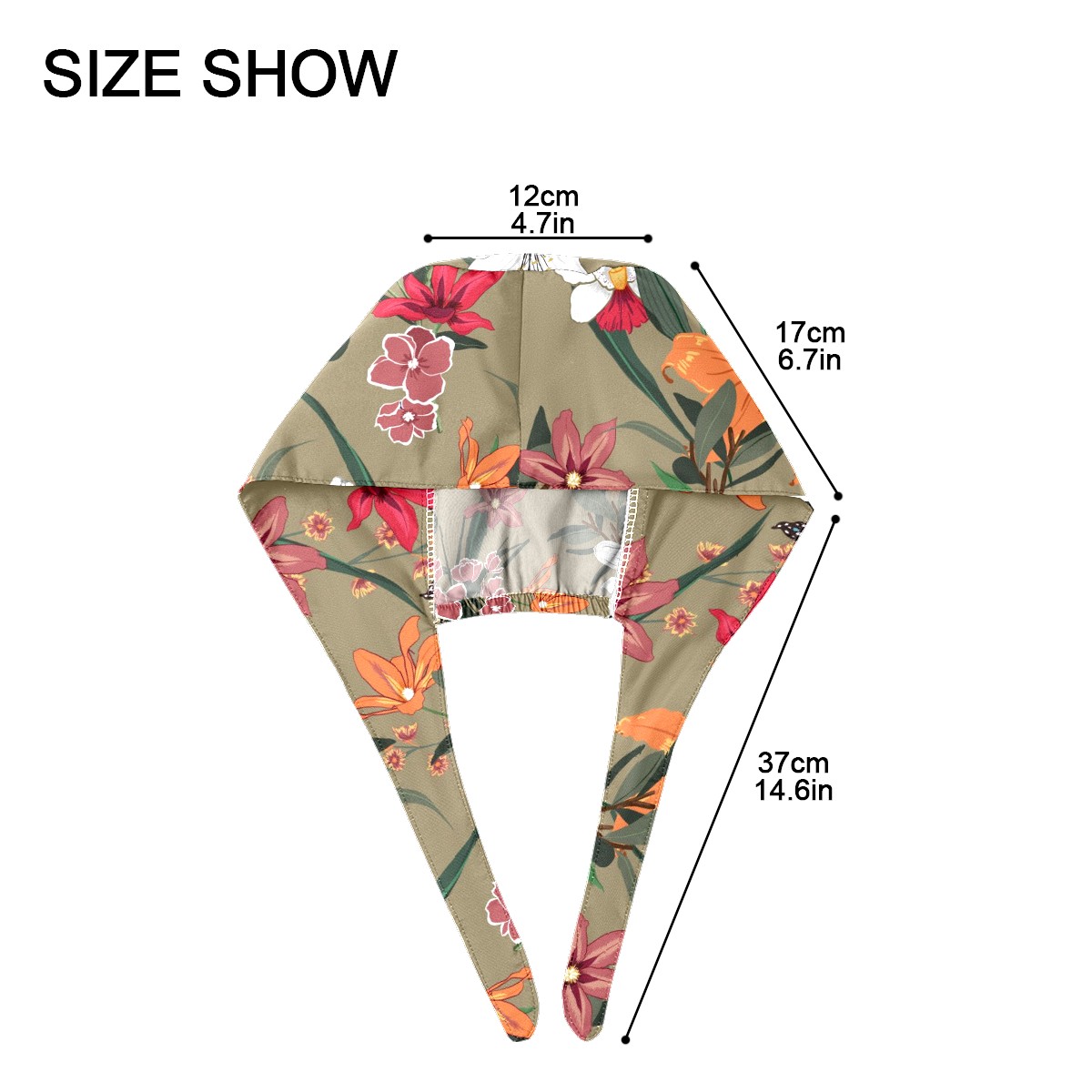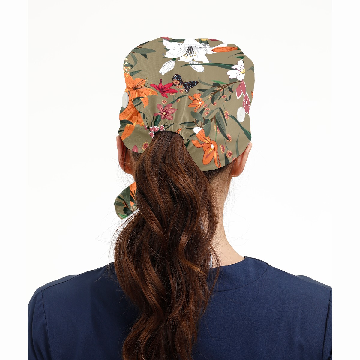 Working Caps with Button & Sweatband Satin Lined Cotton Adjustable Nurse Hats Elastic Band Scrub Cap Surgeon Hat Vintage Floral Butterfly