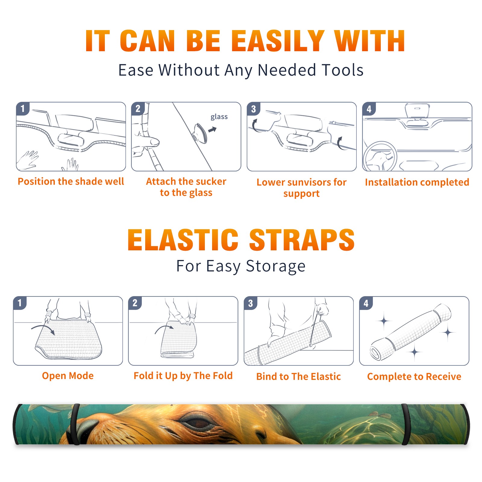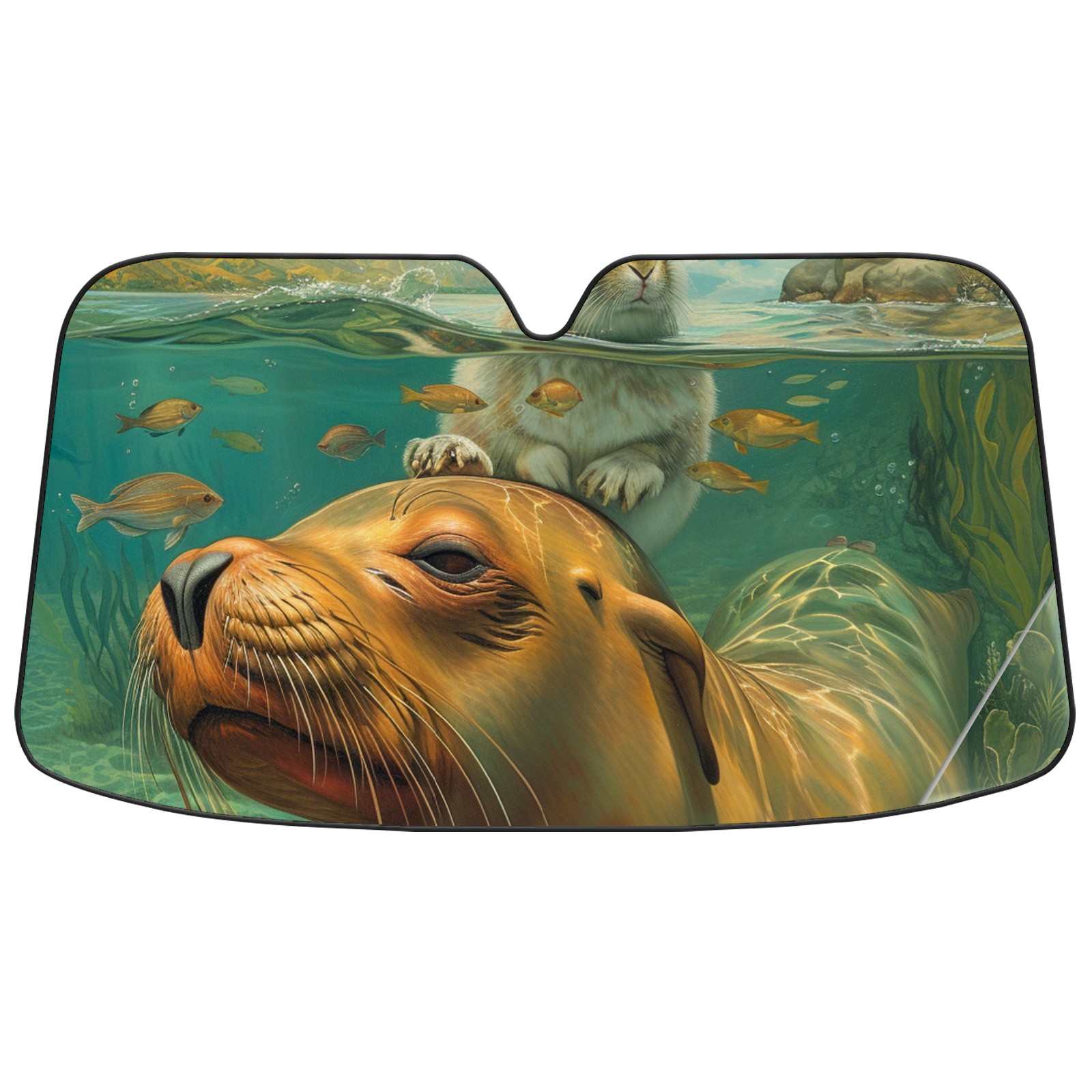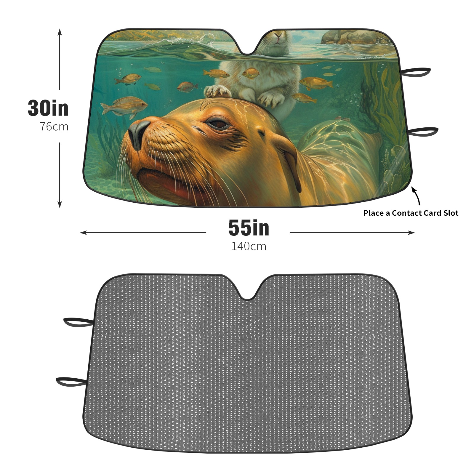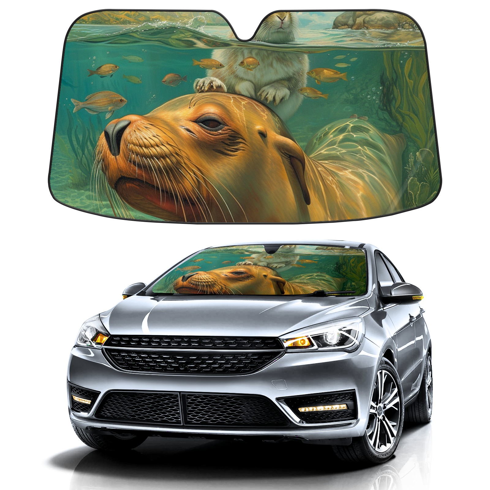 Car Windshield Sun Shade for Front Window Sea Lion Foldable Vehicle Windshield Car Sun Visor Covers Automotive Window Protector Car Privacy Sun Blocker