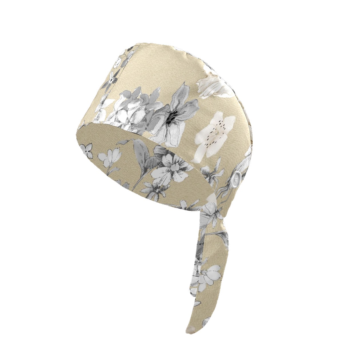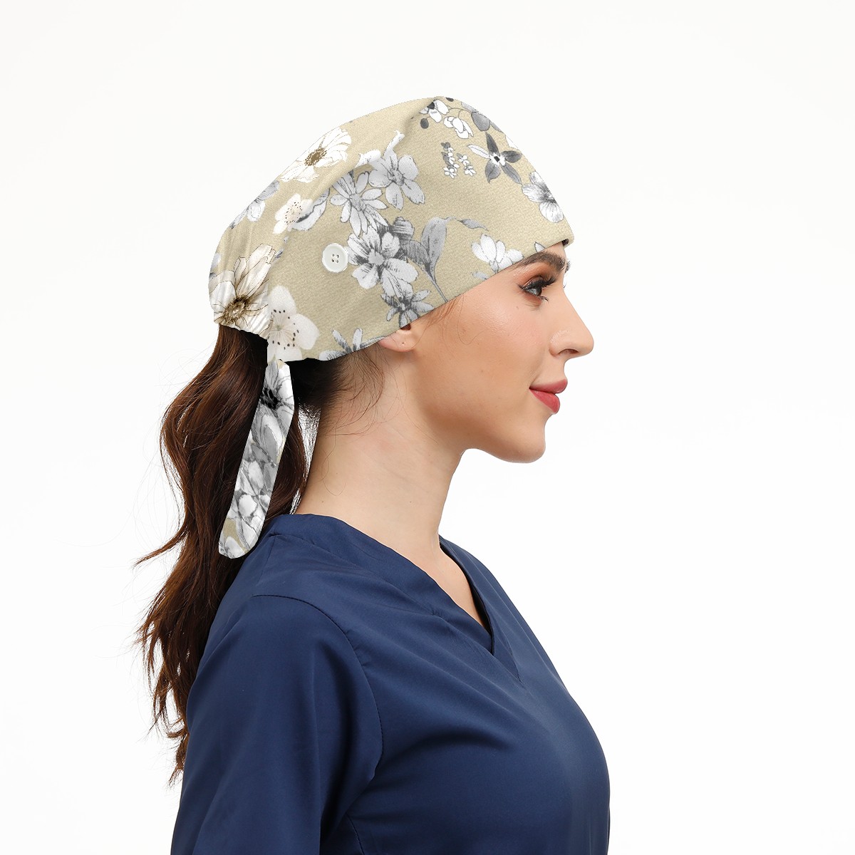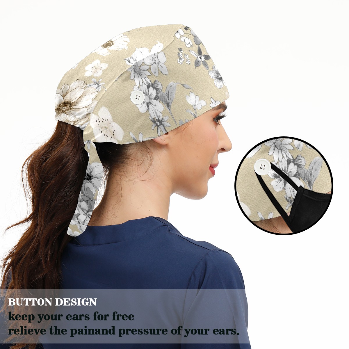 Working Caps with Button & Sweatband Satin Lined Cotton Adjustable Nurse Hats Elastic Band Scrub Cap Surgeon Hat Vintage Floral Butterfly 1