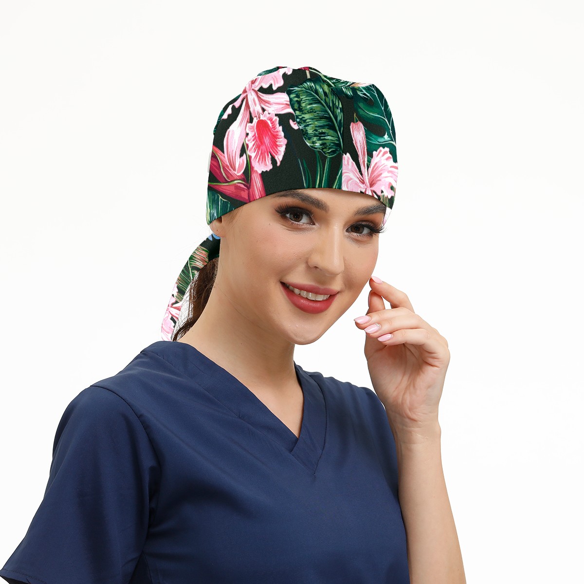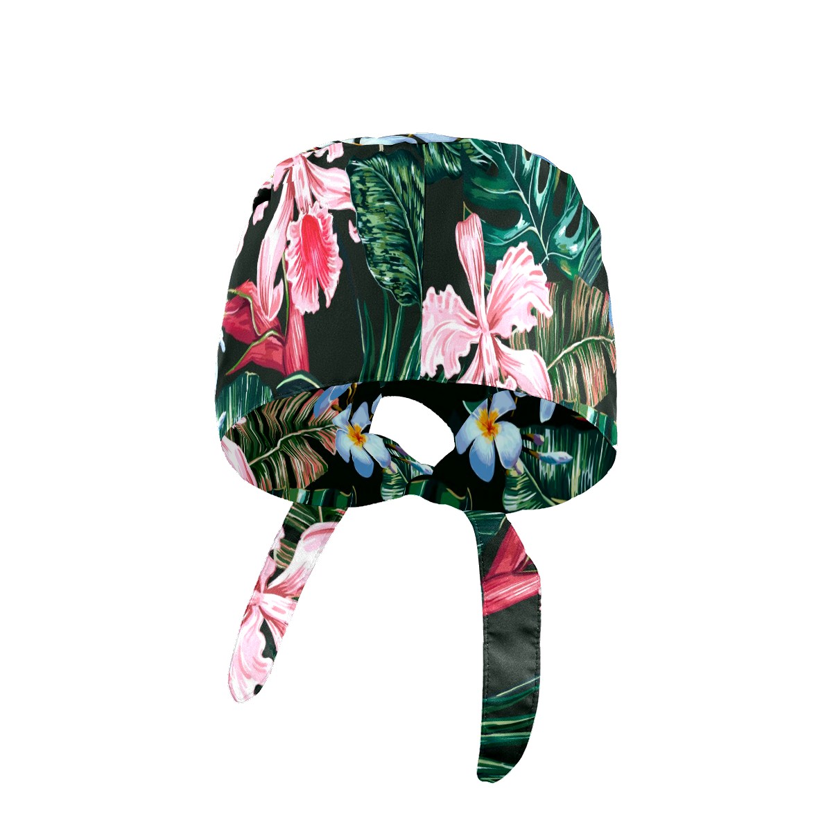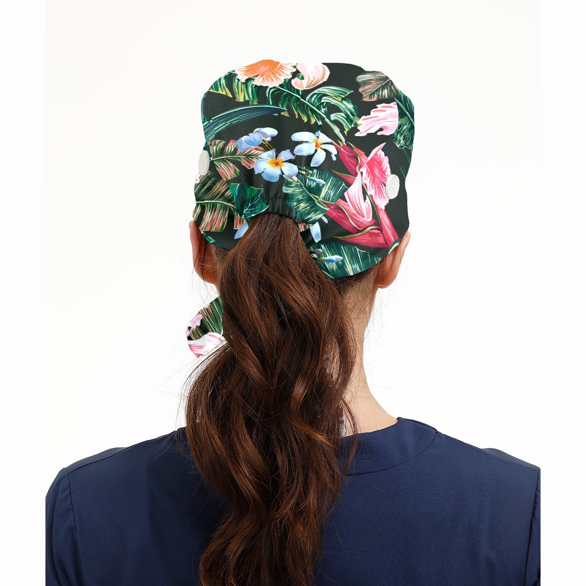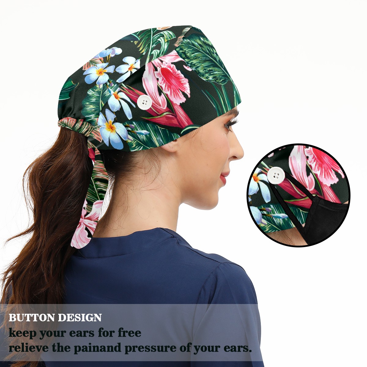 Working Caps with Button & Sweatband Satin Lined Cotton Adjustable Nurse Hats Elastic Band Scrub Cap Surgeon Hat Tropical Exotic Flower Palm Leaf Orchid